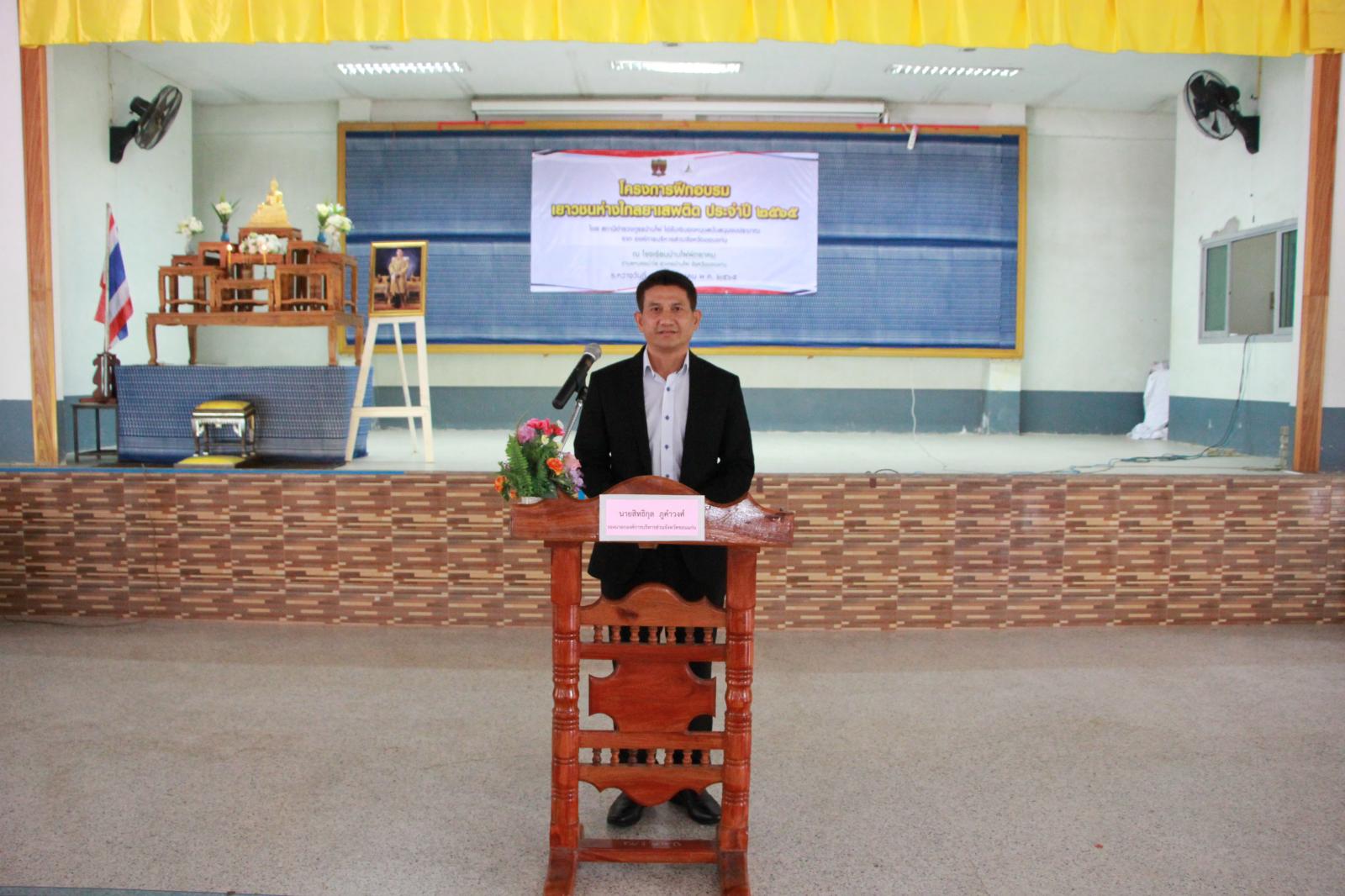 เมื่อวันที่ 7 กรกฎาคม 2565 เวลา 10.00 น. ดร.พงษ์ศักดิ์ ตั้งวานิชกพง์ นายก อบจ.ขอนแก่น มอบหมายให้ นายสิทธิกุล ภูคำวงศ์ รองนายก อบจ.ขอนแก่น เป็นประธานในพิธีเปิดโครงการฝึกอบรมเยาวชนห่างไกลยาเสพติด ประจำปี 2565 โดย พ.ต.ท.อติชาติ กองทองธเนศ สวป.สภ.บ้านไผ่ เป็นผู้กล่าวรายงาน ในโอกาสนี้มี นางสาวเบญจวรรณ ศิริพรรณ ส.อบจ.ขอนแก่น อ.บ้านไผ่ เขต 1, นายประจักษ์ ไชยกิจ นายอำเภอบ้านไผ่, พ.ต.อ.พิชัยภูษิส จารุพงศ์ ผกก.สภ.บ้านไผ่, นายสุเมธ สุวอ ผอ.โรงเรียนบ้านไผ่พิทยาคม, นายสำเร็จ หวานชุม นายก อบต.หนองน้ำใส เข้าร่วมเป็นเกียรติ ณ หอประชุมโรงเรียนบ้านไผ่พิทยาคม ต.หนองน้ำใส อ.บ้านไผ่ จ.ขอนแก่น