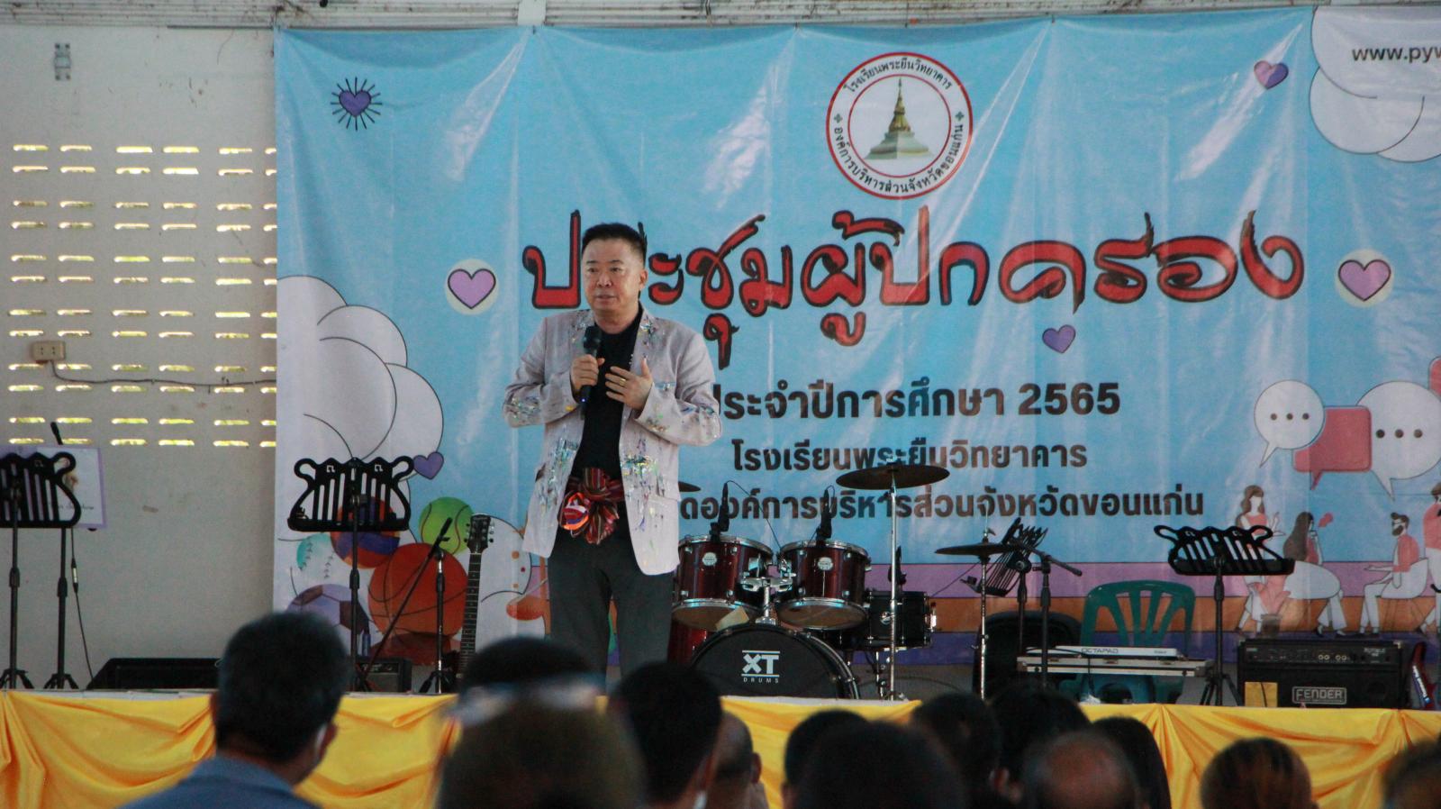 วันที่ 9 กรกฎาคม 2565 เวลา 10.00 น. ดร.พงษ์ศักดิ์ ตั้งวานิชกพงษ์ นายกองค์การบริหารส่วนจังหวัดขอนแก่น เป็นประธานในการประชุมผู้ปกครองนักเรียนโรงเรียนพระยืนวิทยาคาร ประจำภาคเรียนที่ 1 ปีการศึกษา 2565 โดยมี นายภักดี ศิริพรรณ ผู้อำนวยการโรงเรียนพระยืนวิทยาคาร กล่าวรายงาน ในโอกาสนี้ นายสมาส นามพิกุล ส.อบจ.เขตอำเภอพระยืน, นายนำศิลป์ วิเศษ ผอ.สำนักศึกษา ศาสนา และวัฒนธรรม, ดร.พินิจ มีคำทอง รองผู้อำนวยการสถานศึกษาพร้อม และคณะครูฯ เข้าร่วมเป็นเกียรติในพิธี ณ หอประชุมโรงเรียนพระยืนวิทยาคาร อ.พระยืน จ.ขอนแก่น