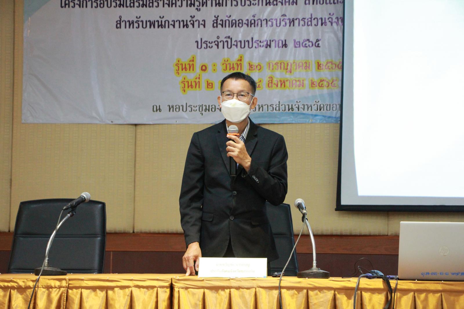เมื่อวันที่ 20 กรกฎาคม 2565 เวลา 09.00 น. ดร.พงษ์ศักดิ์ ตั้งวานิชกพงษ์ นายก อบจ.ขอนแก่น มอบหมายให้ นายธาดา พรหมสาขา ณ สกลนคร รองนายก อบจ.ขอนแก่น เป็นประธานในพิธีเปิดโครงการอบรมเสริมสร้างความรู้ด้านประกันสังคม สิทธิและประโยชน์ของผู้ประกันตน สำหรับพนักงานจ้างสังกัดองค์การบริหารส่วนจังหวัดขอนแก่น ประจำปีงบประมาณ 2565 รุ่นที่ 1 โดยมี นายสุวนัย ภูมาศ ผอ.กองการเจ้าหน้าที่ กล่าวรายงาน ในโอกาสนี้มี นายนำศิลป์ วิเศษ ผอ.สำนักการศึกษา ศาสนาและวัฒนธรรม, นางสาวพัชรินทร์ ยิ้มจู ผอ.กองพัสดุและทรัพย์สิน และนางสาวอังคณา ทักษะวิเรขะพันธ์ หัวหน้าหน่วยตรวจสอบภายใน เข้าร่วมเป็นเกียรติ ณ หอประชุมองค์การบริหารส่วนจังหวัดขอนแก่น อ.เมืองขอนแก่น จ.ขอนแก่น