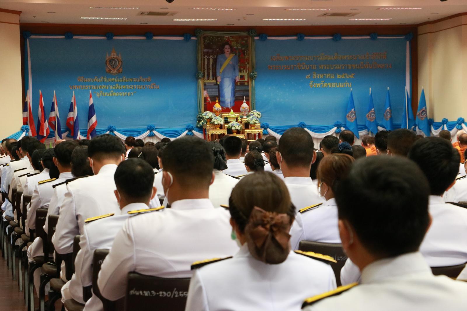 เมื่อวันที่ 9 สิงหาคม 2565 เวลา 14.00 น. ดร.พงษ์ศักดิ์ ตั้งวานิชกพงษ์ นายก อบจ.ขอนแก่น มอบหมายให้ นายสิทธิกุล ภูคำวงศ์ รองนายก อบจ.ขอนแก่น ร่วมพิธีมอบคัมภีร์เฉลิมพระเกียรติ บทพระธรรมเทศนาเฉลิมพระธรรมบารมีใน “อุภินนมัตถจรกถา” เฉลิมพระธรรมบารมีสมเด็จพระนางเจ้าริกิติ์ พระบรมราชินีนาถ พระบรมราชชนนีพันปีหลวง โดยมี ดร.สมศักดิ์ จังตระกุล ผู้ว่าราชการจังหวัดขอนแก่น เป็นประธาน ณ ห้องประชุมแก่นเมือง ศาลากลางจังหวัดขอนแก่น อ.เมืองขอนแก่น จ.ขอนแก่น