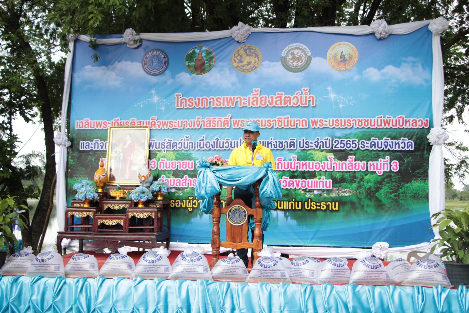 เมื่อวันที่ 13 กันยายน 2565 เวลา 09.30 น. ดร.พงษ์ศักดิ์ ตั้งวานิชกพงษ์ นายก อบจ.ขอนแก่น มอบหมายให้ นายสิทธิกุล ภูคำวงศ์ รองนายก อบจ.ขอนแก่น เข้าร่วมพิธีปล่อยพันธุ์สัตว์น้ำวันประมงแห่งชาติ ประจำปี 2565 ระดับจังหวัด โดยมี นายสุเทพ มณีโชติ รองผู้ว่าราชการจังหวัดขอนแก่น เป็นประธาน นายไชยวัฒน์ รัตนดาดาษ ประมงจังหวัดขอนแก่น กล่าวรายงาน ณ บริเวณอ่างเก็บน้ำหนองน้ำเกลี้ยง ต.สำราญ อ.เมืองขอนแก่น จ.ขอนแก่น