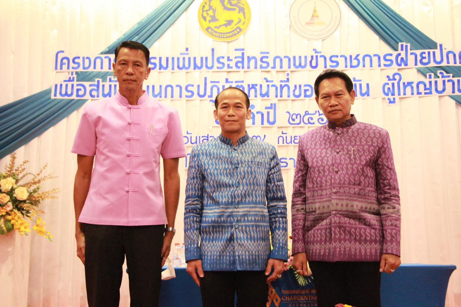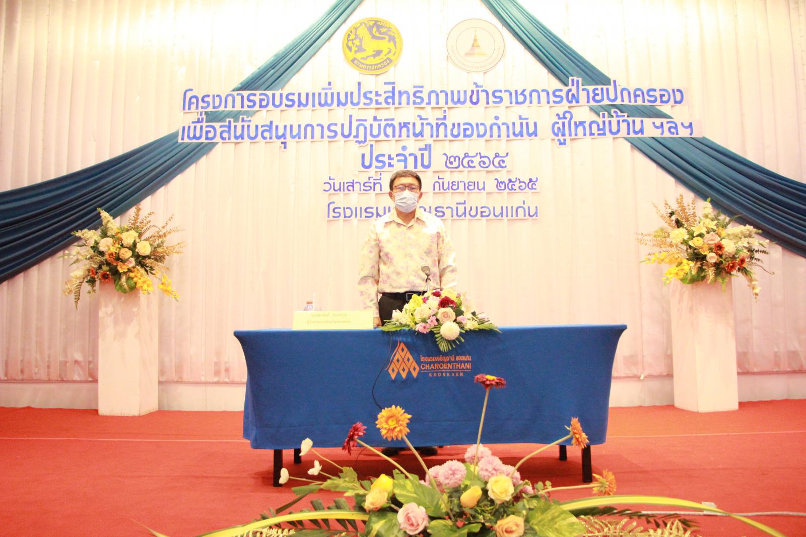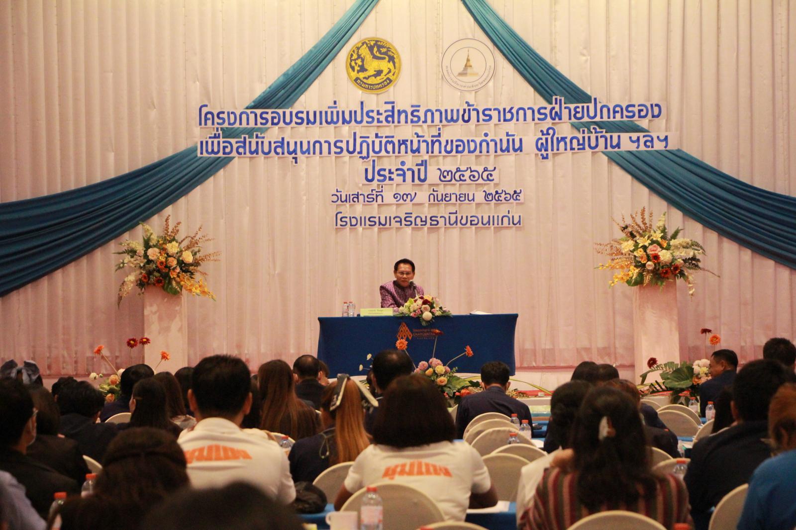 เมื่อวันที่ 17 กันยายน 2565 เวลา 10.30 น. ดร.พงษ์ศักดิ์ ตั้งวานิชกพงษ์ นายก อบจ.ขอนแก่น มอบหมายให้ นายนพกุล ปัญญาแก้ว รองปลัด อบจ.ขอนแก่น ร่วมกล่าวถึงการสนับสนุนโครงการในพิธีเปิดโครงการอบรมเพิ่มประสิทธิภาพข้าราชการฝ่ายปกครองเพื่อสนับสนุนการปฏิบัติหน้าที่ของกำนัน ผู้ใหญ่บ้าน ฯลฯ ประจำปี 2565 ซึ่งองค์การบริหารส่วนจังหวัดขอนแก่นได้สนับสนุนงบประมาณให้แก่ที่ทำการปกครองจังหวัดเพื่อจัดโครงการอบรมในครั้งนี้ โดยมี ดร.สมศักดิ์ จังตระกุล ผู้ว่าราชการจังหวัดขอนแก่น เป็นประธาน ณ โรงแรมเจริญธานี อ.เมืองขอนแก่น จ.ขอนแก่น