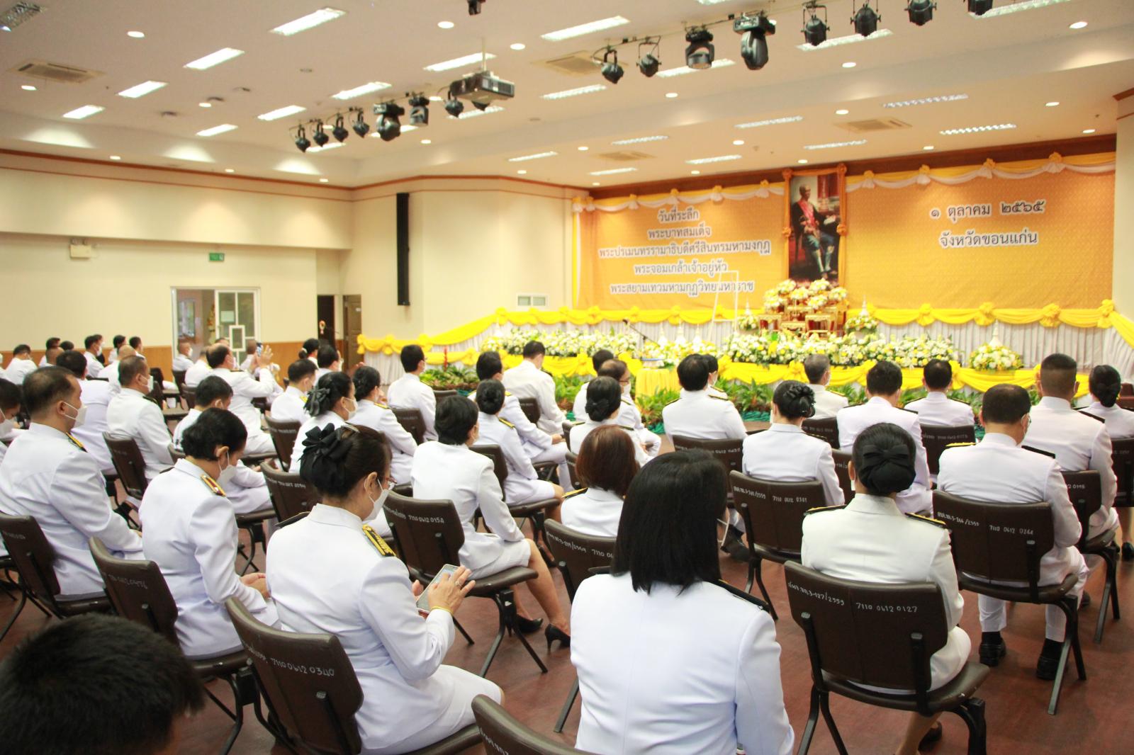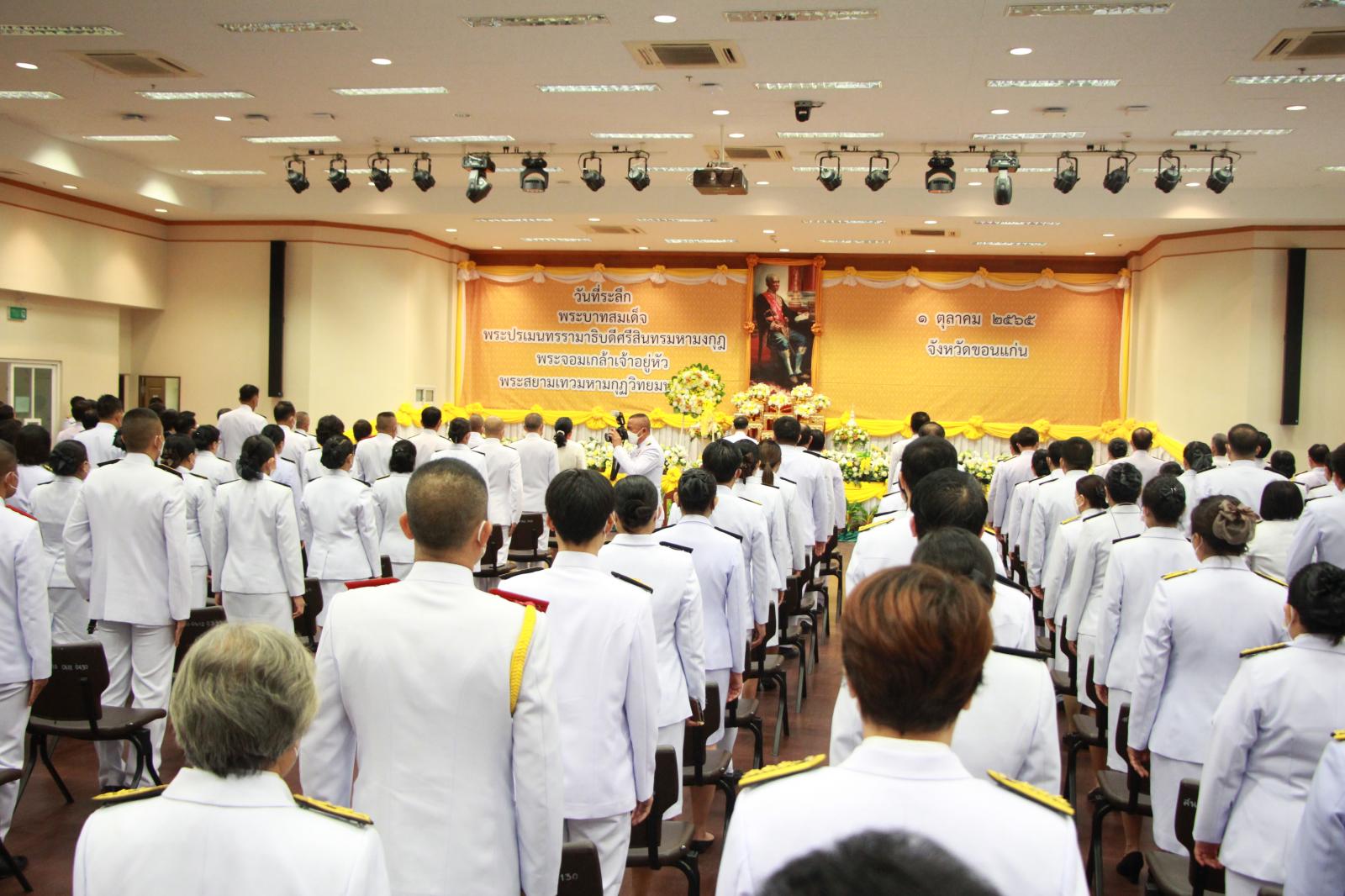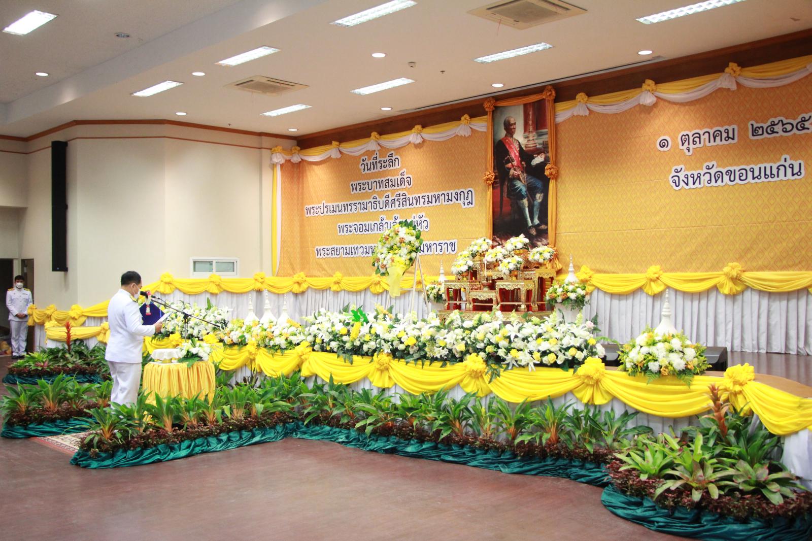 เมื่อวันที่ 1 ตุลาคม 2565 เวลา 09.00 น. ดร.พงษ์ศักดิ์ ตั้งวานิชกพงษ์ นายก อบจ.ขอนแก่น มอบหมายให้ นายสิทธิกุล ภูคำวงศ์ รองนายก อบจ.ขอนแก่น ร่วมงานรัฐพิธี “วันที่ระลึกพระบาทสมเด็จพระปรเมนทนรามาธิบดีศรีสินทรมหามงกุฎ พระจอมเกล้าเจ้าอยู่หัว พระสยามเทวมหามกุฏวิทยมหาราช” โดยมี นายไกรสร กองฉลาด ผู้ว่าราชการจังหวัดขอนแก่น เป็นประธาน ณ ห้องประชุมแก่นเมือง ศาลากลางจังหวัดขอนแก่น อ.เมืองขอนแก่น จ.ขอนแก่น