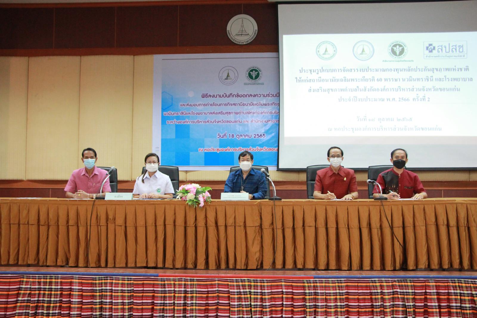 การประชุมรูปแบบการจัดสรรงบประมาณกองทุนหลักประกันสุขภาพแห่งชาติให้แก่สถานีอนามัยเฉลิมพระเกียรติ 60 พรรษา นวมินทราชินีและโรงพยาบาลส่งเสริมสุขภาพตำบลในสังกัดองค์การบริหารส่วนจังหวัดขอนแก่น ประจำปีงบประมาณ 2566 ครั้งที่ 2