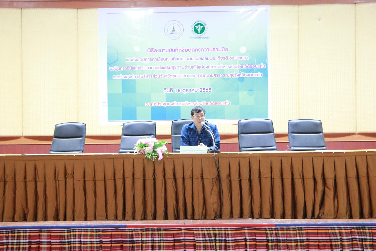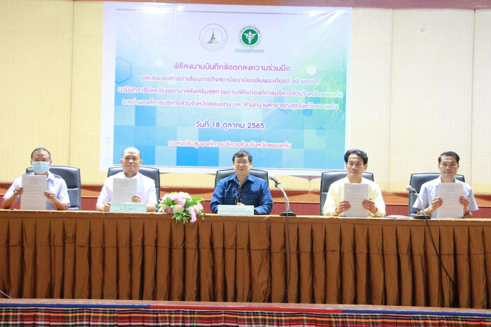 เมื่อวันที่ 18 ตุลาคม 2565 เวลา 10.30 น. ดร.พงษ์ศักดิ์ ตั้งวานิชกพงษ์ นายก อบจ.ขอนแก่น มอบหมายให้ นายประสิทธิ์ ทองแท่งไทย รองนายก อบจ.ขอนแก่น เป็นประธานในการประชุมรูปแบบการจัดสรรงบประมาณกองทุนหลักประกันสุขภาพแห่งชาติให้แก่สถานีอนามัยเฉลิมพระเกียรติ 60 พรรษา นวมินทราชินีและโรงพยาบาลส่งเสริมสุขภาพตำบลในสังกัดองค์การบริหารส่วนจังหวัดขอนแก่น ประจำปีงบประมาณ 2566 ครั้งที่ 2 โดยมี ผอ.รพ.สต. พร้อมด้วย ผู้บริหาร ข้าราชการ สังกัด รพ.สต ในเขตพื้นที่จังหวัดขอนแก่น ทั้ง 26 อำเภอ เข้าร่วมประชุม ณ หอประชุมองค์การบริหารส่วนจังหวัดขอนแก่น อ.เมืองขอนแก่น จ.ขอนแก่น