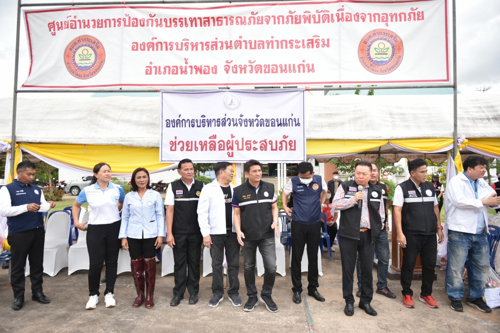 วันที่ 26 ตุลาคม 2565 เวลา 13.00 น. ดร.พงษ์ศักดิ์ ตั้งวานิชกพงษ์ นายกองค์การบริหารส่วนจังหวัดขอนแก่น นายสิทธิกุล ภูคำวงศ์ รองนายกองค์การบริหารส่วนจังหวัดขอนแก่น นายตระกูล เจริญเชื้อ รองประธานสภา อบจ.ขอนแก่น พร้อมคณะผู้บริหาร และคณะสมาชิกสภา อบจ.ขอนแก่น นายมนต์ชัย ศรีวิไลลักษณ์ นายนพพร ปิติสุวรรณรัตน์ และ นายจรูญ อ่วยนอก ร่วมลงพื้นที่ตรวจเยี่ยมและให้กำลังใจนำถุงยังชีพ จำนวน 1,273 ชุด ไปมอบให้แก่ผู้ประสบอุทกภัยในเขตพื้นที่ ตำบลท่ากระเสริม อำเภอน้ำพอง จังหวัดขอนแก่น โดยมี นายชินกร แก่นคง นายอำเภอน้ำพอง นายประสิทธิ์ คลังกลาง นายก อบต.ท่ากระเสริม ผู้นำท้องถิ่น ผู้นำท้องที่ ตำบลท่ากระเสริม ให้การต้อนรับอย่างอบอุ่น