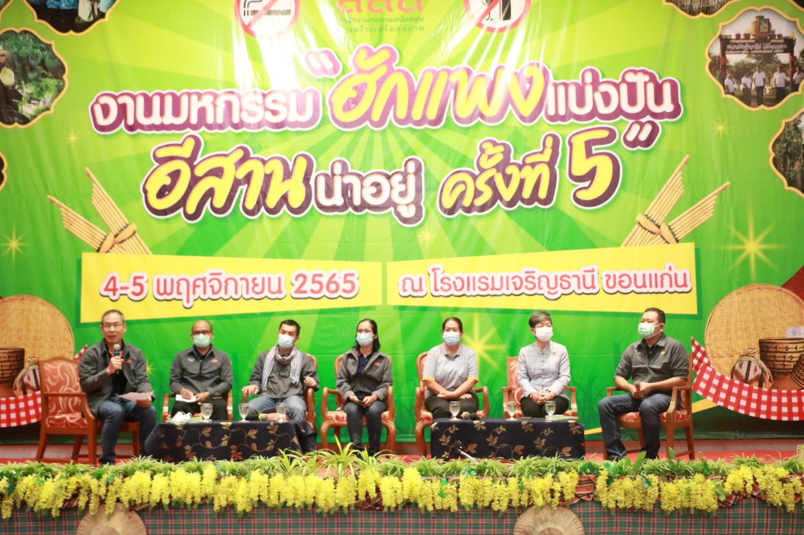 เมื่อวันที่ 4 พฤศจิกายน 2565 เวลา 09.00 น. ดร.พงษ์ศักดิ์ ตั้งวานิชกพงษ์ นายกองค์การบริหารส่วนจังหวัดขอนแก่น มอบหมายให้ นายประสิทธิ์ ทองแท่งไทย รองนายกองค์การบริหารส่วนจังหวัดขอนแก่น เข้าร่วมเวทีเสวนา หัวข้อ “ความร่วมมือเพื่อพัฒนาระบบสุขภาพในพื้นที่ของระบบบริการปฐมภูมิและสภาผู้นำชุมชน” โดยมี ดร.สุปรีดา อดุลยานนท์ ผู้จัดการสำนักงานกองทุนสนับสนุนการสร้างเสริมสุขภาพ กล่าวเปิดรายงานและบรรยายพิเศษ “สสส.กับการขับเคลื่อนชุมชนน่าอยู่ ” พร้อม ผู้ร่วมเสวนา กำนันรวิภา หันตุลา กำนันตำบลเทพคีรี จ.หนองบัวลำภู คุณทองหลาง สันโส ประธาน อสม.บ้านหนองยาง จ.ร้อยเอ็ด คุณจามจุรี คำผายจันทร์ ผอ.รพ.สต.บ้านวังม่วง จ.หนองบัวลำภู คุณวิจิตร จันทวงษ์ นักบริหารงานสาธารณสุข เทศบาลชนบท จ.ขอนแก่น คุณธานี นามม่วง รองนายแพทย์ สสจ.จังหวัดสุรินทร์ และผู้เข้าร่วมวงเสวนา ณ โรงแรมเจริญธานี ตำบลในเมือง อำเภอเมือง จังหวัดขอนแก่น