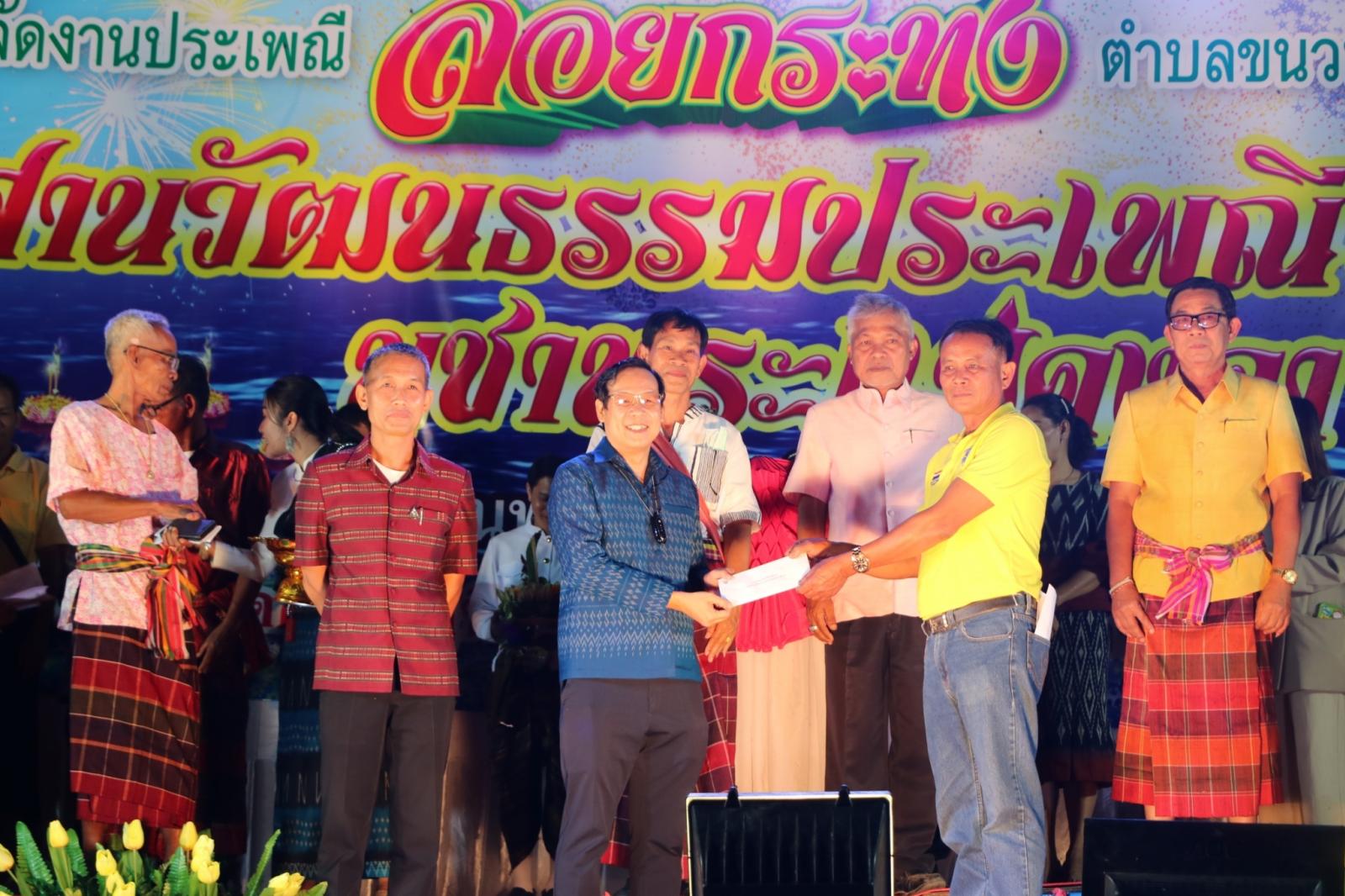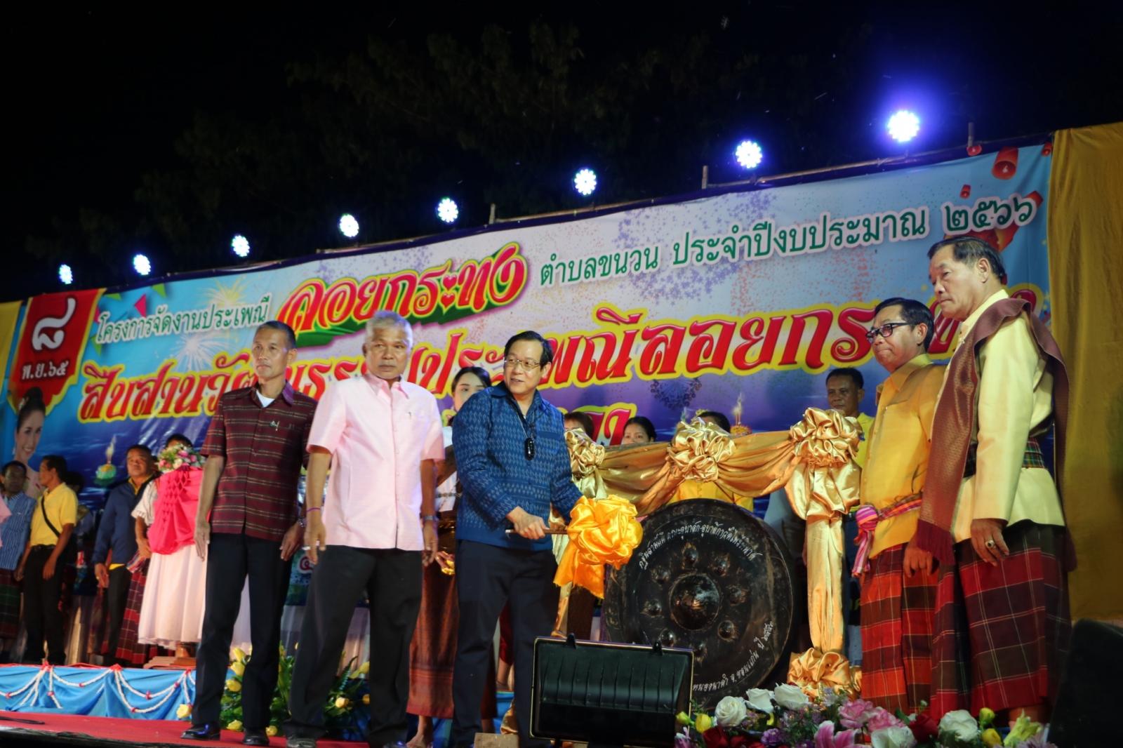 เมื่อวันที่ 8 พฤศจิกายน 2565. องค์การบริหารส่วนจังหวัดขอนแก่น นำโดย นายก อบจ.ขอนแก่น ดร.พงษ์ศักดิ์ ตั้งวานิชกพงษ์ มอบหมายให้ รองนายก อบจ.ขอนแก่น นายประสิทธิ์ ทองแท่งไทย เป็นประธานในพิธีเปิดโครงการจัดงานประเพณีลอยกระทง ตำบลขนวน ประจำปีงบประมาณ 2566 พร้อมด้วย ด.ต.พิชิต ศรีวิไล เลขานุการสภา อบจ.ขอนแก่น นายอำเภอหนองนาคำ คณะผู้บริหาร สมาชิกเทศบาล กำนันผู้ใหญ่บ้าน หัวหน้าส่วนราชการ และประชาชนตำบลขนวน ณ บ้านกุดกั้ง ม.4 ต.ขนวน อ.หนองนาคำ จ.ขอนแก่น