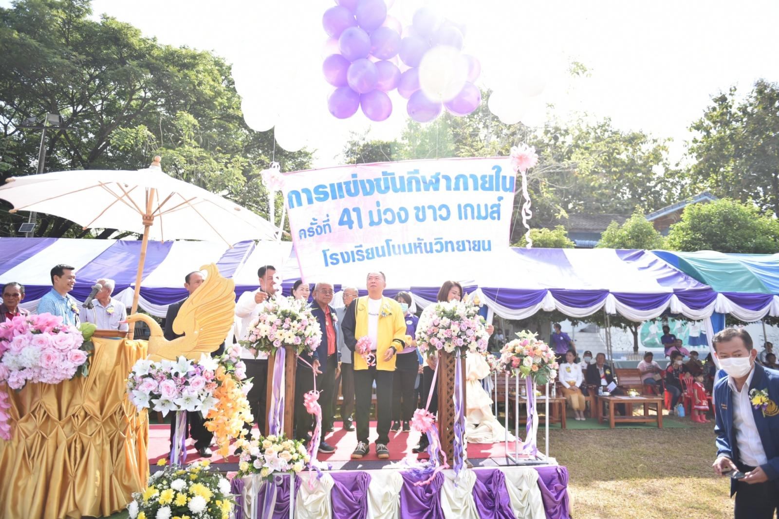 วันที่ 18 พฤศจิกายน 2565 ดร.พงษ์ศักดิ์ ตั้งวานิชกพงษ์ นายกองค์การบริหารส่วนจังหวัดขอนแก่น เป็นประธานในพิธีเปิดการแข่งขันกีฬาสีภายในโรงเรียนโนนหันวิทยายน ครั้งที่ 41 “ ม่วง ขาว เกมส์ ” โดยมี นางสาวอรุณศรี ยิ่งยืน ผอ.รร.โนนหันวิทยายน กล่าวรายงาน ในโอกาสนี้มี นายสิงหภณ ดีนาง ส.ส.ขอนแก่น พรรคเพื่อไทย พร้อมด้วย นายนิรุตติ์ ปานนาค, นายวิศรุต ปู่เพ็ง ,นางกฤษณา วันทอง ส.อบจ.ขอนแก่น เขต อ.ชุมแพ และ นายจารุพรรณ ภูวสันติ ส.อบจ.ขอนแก่น เขต อ.สีชมพู เข้าร่วมเป็นเกียรติในพิธี ณ สนามกีฬาโรงเรียนโนนหันวิทยายน อ.ชุมแพ จ.ขอนแก่น