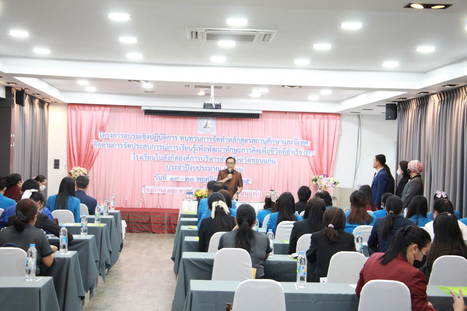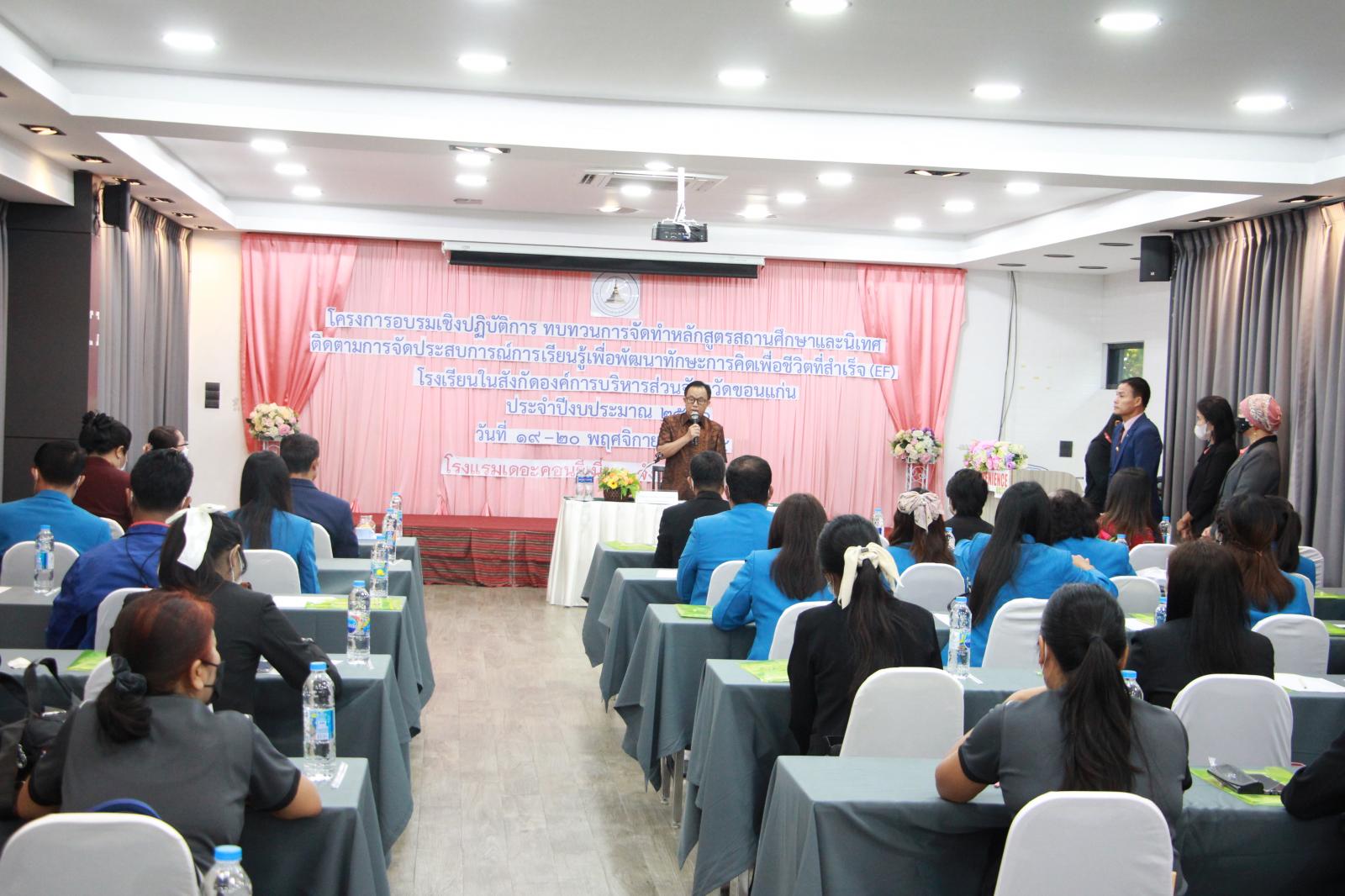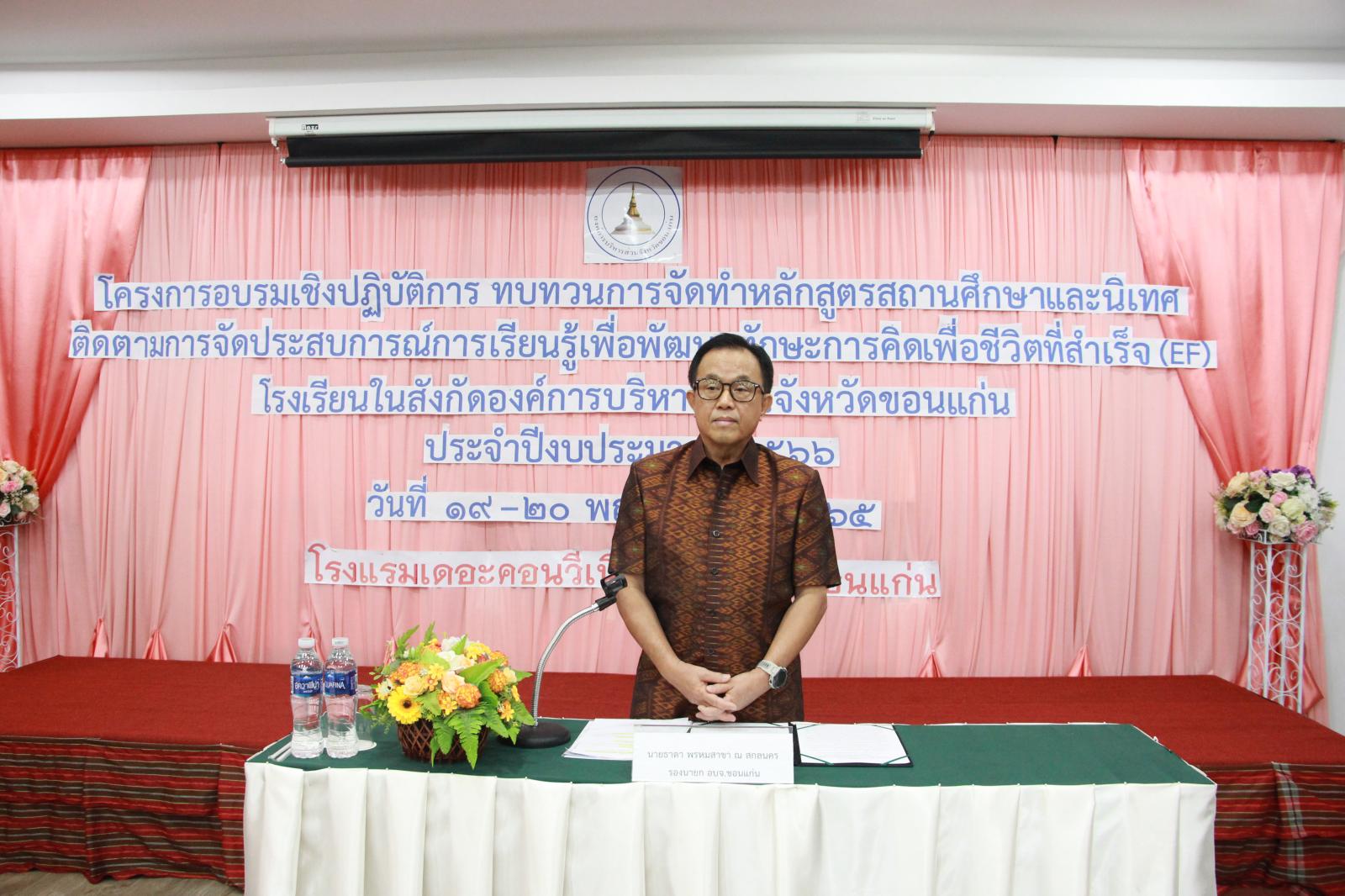 เมื่อวันที่ 19 พฤศจิกายน 2565 เวลา 09.00 น. องค์การบริหารส่วนจังหวัดขอนแก่น นำโดย ดร.พงษ์ศักดิ์ ตั้งวานิชกพงษ์ นายก อบจ.ขอนแก่น มอบหมายให้ นายธาดา พรหมสาขา ณ สกลนคร รองนายก อบจ.ขอนแก่น เป็นประธานในพิธีเปิดโครงการประชุมเชิงปฏิบัติการทบทวนการจัดทำหลักสูตรสถานศึกษาและนิเทศ ติดตาม การจัดประสบการณ์การเรียนรู้เพื่อพัฒนาทักษะการคิดเพื่อชีวิตที่สำเร็จ (EF) โรงเรียนในสังกัดองค์การบริหารส่วนจังหวัดขอนแก่น ประจำปีงบประมาณ 2566 โดยมี นายนำศิลป์ วิเศษ ผอ.สำนักการศึกษา ศาสนาและวัฒนธรรม กล่าวรายงาน ณ ห้องประชุมวินเนอร์ 9 โรงแรมเดอะคอนวีเนี่ยน อ.เมืองขอนแก่น จ.ขอนแก่น