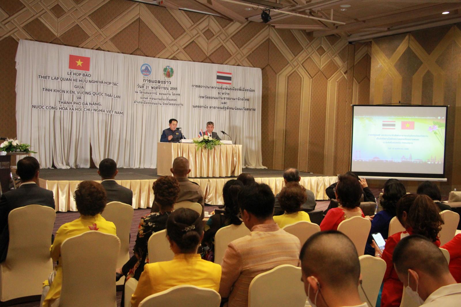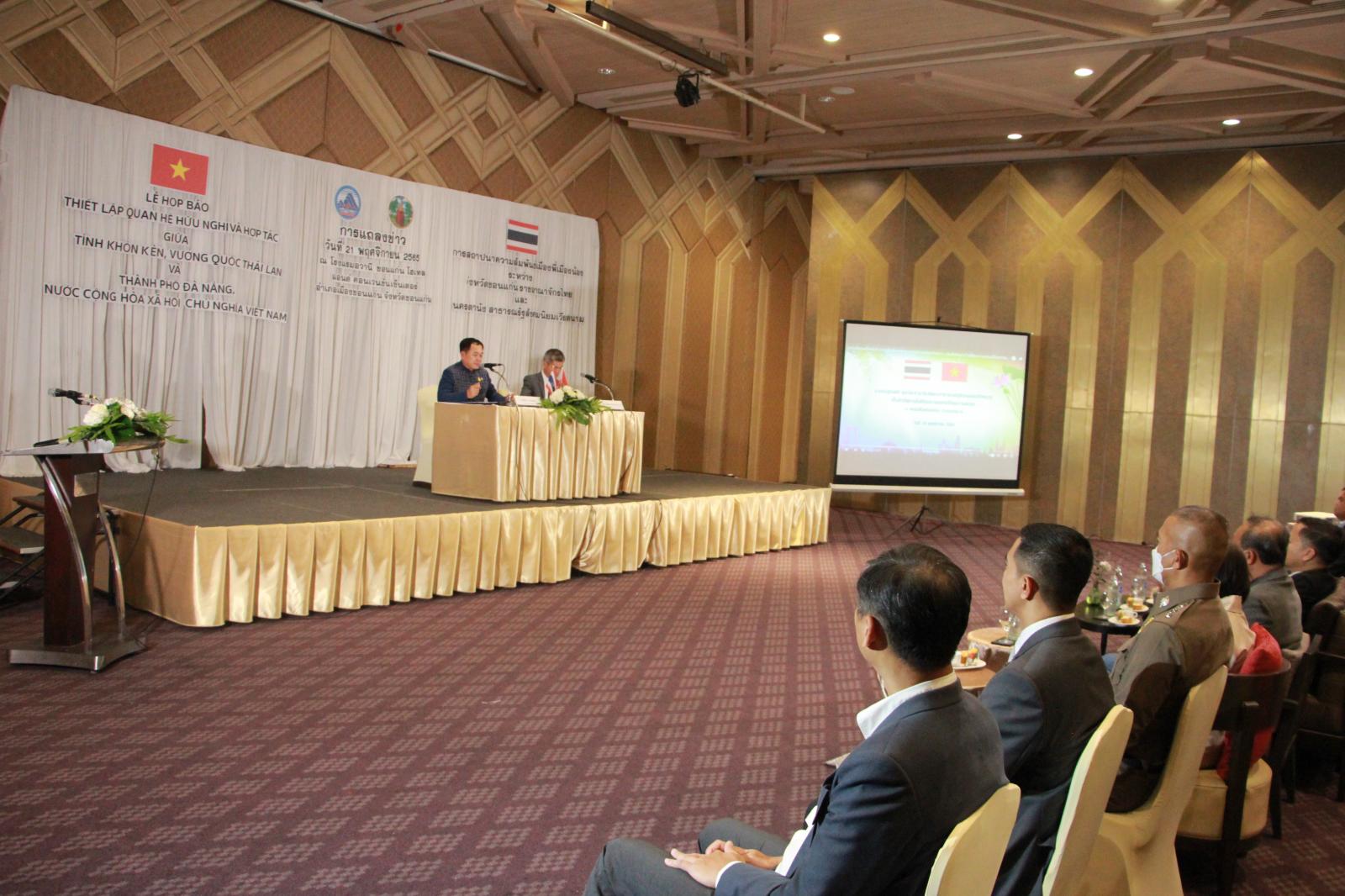 ร่วมงานแถลงข่าวการสถาปนาความสัมพันธ์เมืองพี่เมืองน้องระหว่างจังหวัดขอนแก่น ราชอาณาจักรไทย และนครดานัง สาธารณรัฐสังคมนิยมเวียดนาม