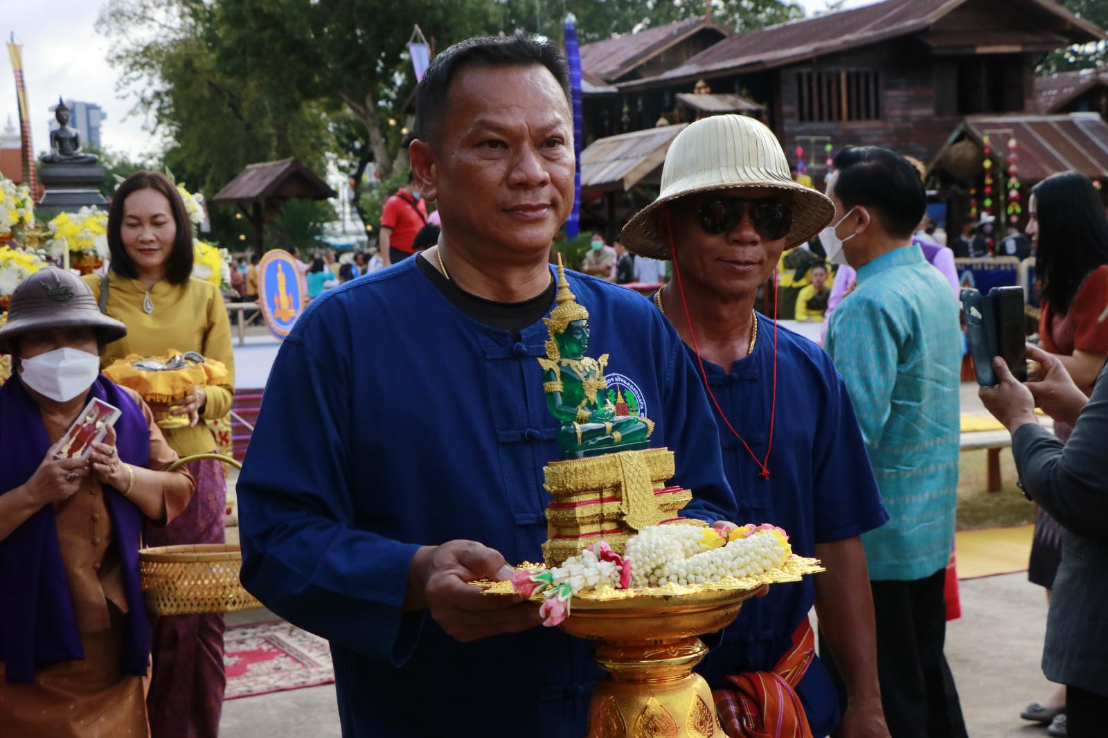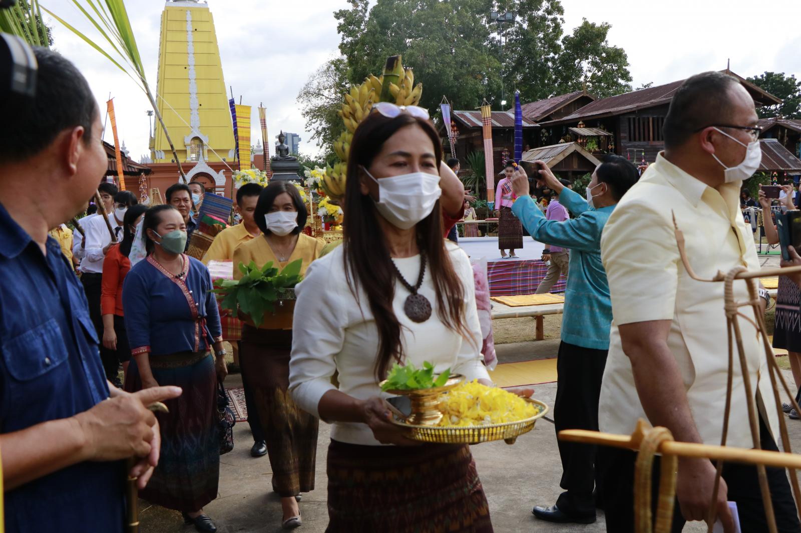 เมื่อวันที่ 24 พฤศจิกายน 2565 เวลา 15.40 น. ดร.พงษ์ศักดิ์ ตั้งวานิชกพงษ์ นายกองค์การบริหารส่วนจังหวัดขอนแก่น มอบหมายให้ นาธาดา พรมสาขา ณ สกลนคร รองนายกองค์การบริหารส่วนจังหวัดขอนแก่น ร่วมงาน “การแถลงข่าวงานเทศกาลไหมนานาชาติ ประเพณีผูกเสียว งานกาชาดจังหวัดขอนแก่น และงานขอนแก่นซอฟต์พาวเวอร์ ประจำปี 2565 และพิธีขึ้นบ้านใหม่ เฮือนโบราณ วิถีไทบ้าน ” โดยมี นายไกรสร กองฉลาด ผู้ว่าราชการจังหวัดขอนแก่น เป็นประธานในการแถลงข่าว พร้อมด้วย นายสุเทพ มณีโชต นายพันธ์เทพ เสาโกศล นายชาญชัย ศรศรีวิชัย รองผู้ว่าราชการจังหวัด พ.ต.อ.นพเก้า โสมนัส ผบก.ภ.จว.ขอนแก่น นายชาญยุทธ วันดี พาณิชย์จังหวัดขอนแก่น หัวหน้าส่วนราชการ จังหวัดขอนแก่น เจ้าหน้าที่ผู้ที่เกี่ยวข้อง และแขกผู้มีเกียรติ ณ “เฮือนไม้โบราณ วิถีไทบ้านขอนแก่น” บริเวณสนามหน้าศาลากลางจังหวัดขอนแก่น อำเภอเมือง จังหวัดขอนแก่น