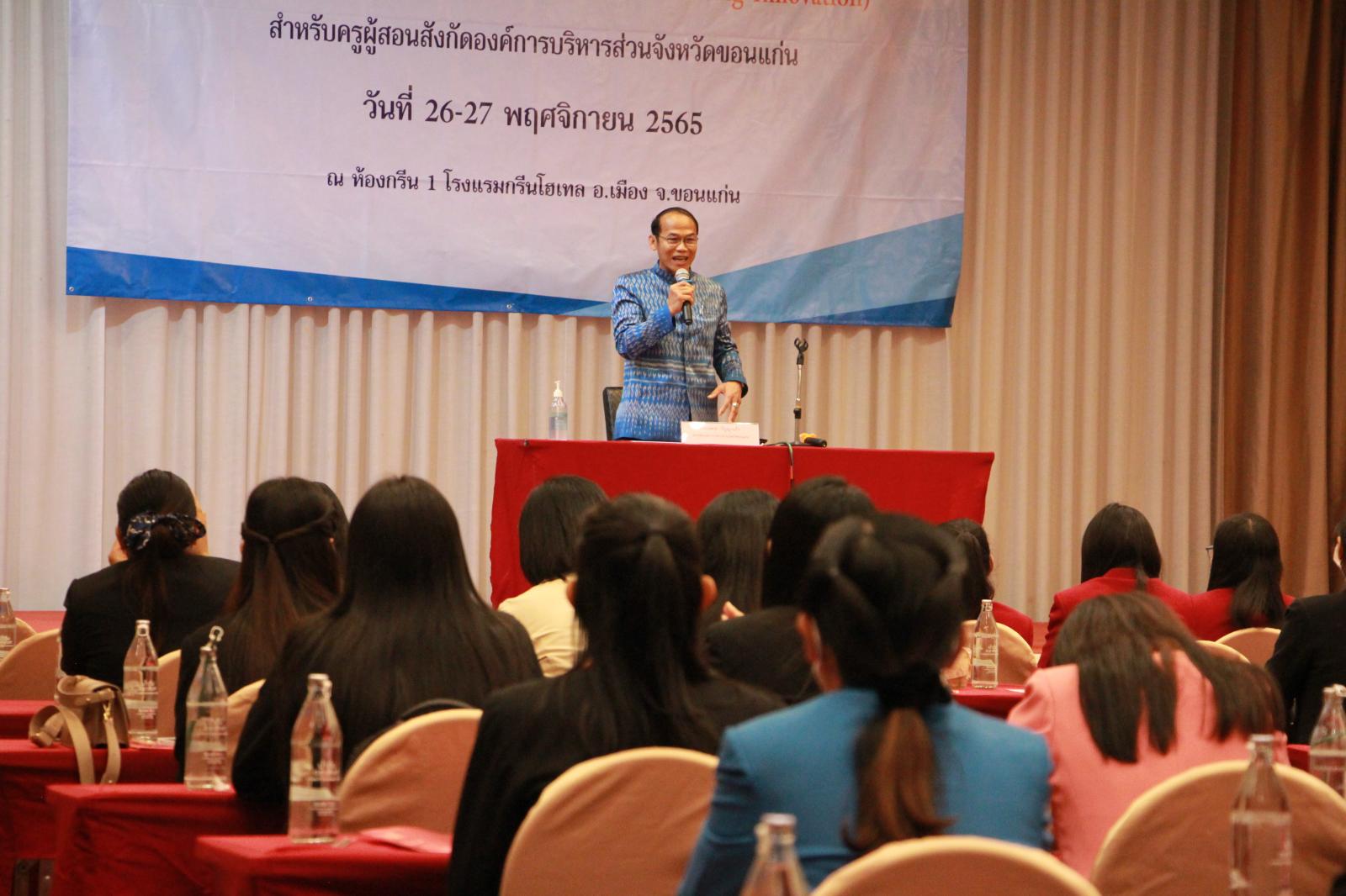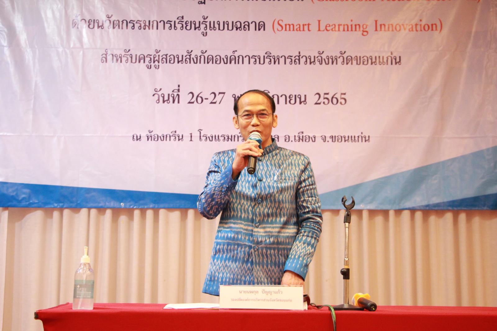 เมื่อวันที่ 26 พฤศจิกายน 2565 เวลา 09.00 น. องค์การบริหารส่วนจังหวัดขอนแก่น นำโดย ดร.พงษ์ศักดิ์ ตั้งวานิชกพงษ์ นายก อบจ.ขอนแก่น มอบหมายให้ นายนพกุล ปัญญาแก้ว รองปลัด อบจ.ขอนแก่น เป็นประธานในพิธีเปิดโครงการอบรมพัฒนาการวิจัยปฏิบัติการในชั้นเรียน (Class Action Research) ด้วยนวัตกรรมการเรียนรู้แบบฉลาด (Smart Learning Innovation) สำหรับครูผู้สอนสังกัดองค์การบริหารส่วนจังหวัดขอนแก่น โดยมี นายนำศิลป์ วิเศษ ผอ.สำนักการศึกษา ศาสนาและวัฒนธรรม อบจ.ขอนแก่น กล่าวรายงาน ณ โรงแรมกรีน โฮเทล อ.เมืองขอนแก่น จ.ขอนแก่น
