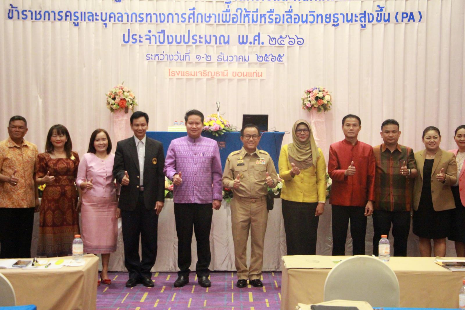 เมื่อวันที่ 1 ธันวาคม 2565 เวลา 09.00 น. ดร.พงษ์ศักดิ์ ตั้งวานิชกพงษ์ นายกองค์การบริหารส่วนจังหวัดขอนแก่น มอบหมายให้ นายกองตรีธาดา พรมสาขา ณ สกลนคร รองนายกองค์การบริหารส่วนจังหวัดขอนแก่น เป็นประธานในพิธีเปิด “โครงการอบรมสัมมนาเชิงปฏิบัติการว่าด้วยมาตรฐานทั่วไปและหลักเกณฑ์การประเมินผลงานข้าราชการครูและบุคลากรทางการศึกษาเพื่อให้มีหรือเลือนวิทยาฐานะสูงขึ้น(PA) ประจำปีงบประมาณ พ.ศ.2565 ” โดยมีนายสุวนัย ภูมาศ ผู้อำนวยการกองการเจ้าหน้าที่ เป็นผู้อ่านกล่าวรายงาน พร้อมด้วย นางอาซีซะห์ ว่องไว รองปลัดองค์การบริหารส่วนจังหวัดขอนแก่น นายนำศิลป์ วิเศษ ผู้อำนวยการสำนักการศึกษา ศาสนา วัฒนธรรม นายกิตติชัย อุทธา ผู้อำนวยการส่วนศึกษา หัวหน้าส่วนราชการองค์การบริหารส่วนจังหวัด จังหวัดขอนแก่น ผู้อำนวยการโรงเรียนในสังกัด อบจ.ขอนแก่น คณะคุณครู และเจ้าหน้าที่ผู้ที่เกี่ยวข้อง ณ ห้องศรีจันทร์บอลรูม โรงแรมเจริญธานีขอนแก่น อำเภอเมือง จังหวัดขอนแก่น