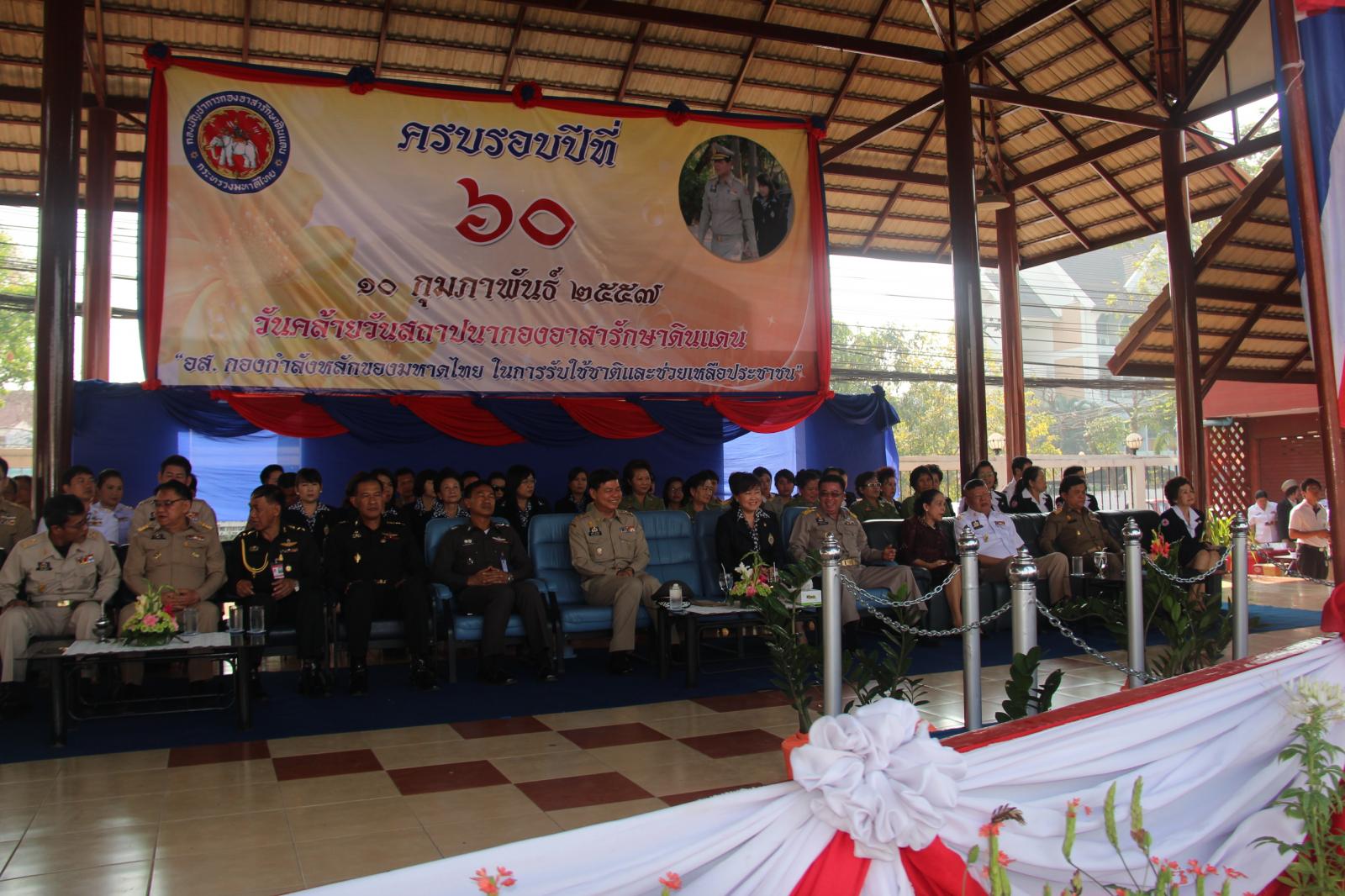 เมื่อวันจันทร์ที่ 10 กุมภาพันธ์ พ.ศ. 2557 ที่ผ่านมา นายสมศักดิ์ สุวรรณสุจริต ผู้ว่าราชการจังหวัดขอนแก่น เป็นประธานในงาน “วันคล้ายวันสถาปนากองร้อยอาสารักษาดินแดน ประจำปี 2557 ครบรอบปีที่ 60” เพื่อเป็นการรำลึกถึงวีรกรรม ความเสียสละ ของเหล่าเพื่อนสมาชิก อส. กองบังคับการกองร้อยอาสารักษาดินแดนจังหวัดขอนแก่น จึงได้จัดพิธีวันคล้ายวันสถาปนากองร้อยอาสารักษาดินแดน ณ ศาลาผูกเสี่ยว ศาลากลางจังหวัดขอนแก่น มีกิจกรรมที่สำคัญ คือ การประกอบพิธีทางศาสนาเพื่ออุทิศส่วนกุศลให้กับสมาชิก อส.ที่เสียชีวิตจากการปฏิบัติหน้าที่ การมอบเข็มอาสารักษาดินแดนสดุดีให้กับผู้บังคับบัญชา เจ้าหน้าที่ และสมาชิก อส. ที่ปฏิบัติหน้าที่จนเป็นผลดีแก่กองอาสารักษาดินแดน การมอบสิ่งของบำรุงขวัญกำลังใจสมาชิก อส. เพื่อใช้ในการปฏิบัติหน้าที่ การมอบทุนการศึกษาให้บุตรสมาชิก อส. และบุตรข้าราชการสังกัดกระทรวงมหาดไทย การชุมนุมของผู้บังคับบัญชา เจ้าหน้าที่ และสมาชิก อส. เพื่อรับฟังสารของผู้บัญชาการกองอาสารักษาดินแดน และโอวาทของผู้บังคับการกองอาสารักษาดินแดนจังหวัดขอนแก่น ในโอกาสนี้ ดร.พงษ์ศักดิ์ ตั้งวานิชกพงษ์ นายกองค์การบริหารส่วนจังหวัดขอนแก่น ได้ร่วมในพิธี รวมทั้งได้ร่วมสนับสนุนและร่วมมอบทุนการศึกษาฯ และสิ่งของบำรุงขวัญกำลังใจแก่สมาชิก อส. ด้วย