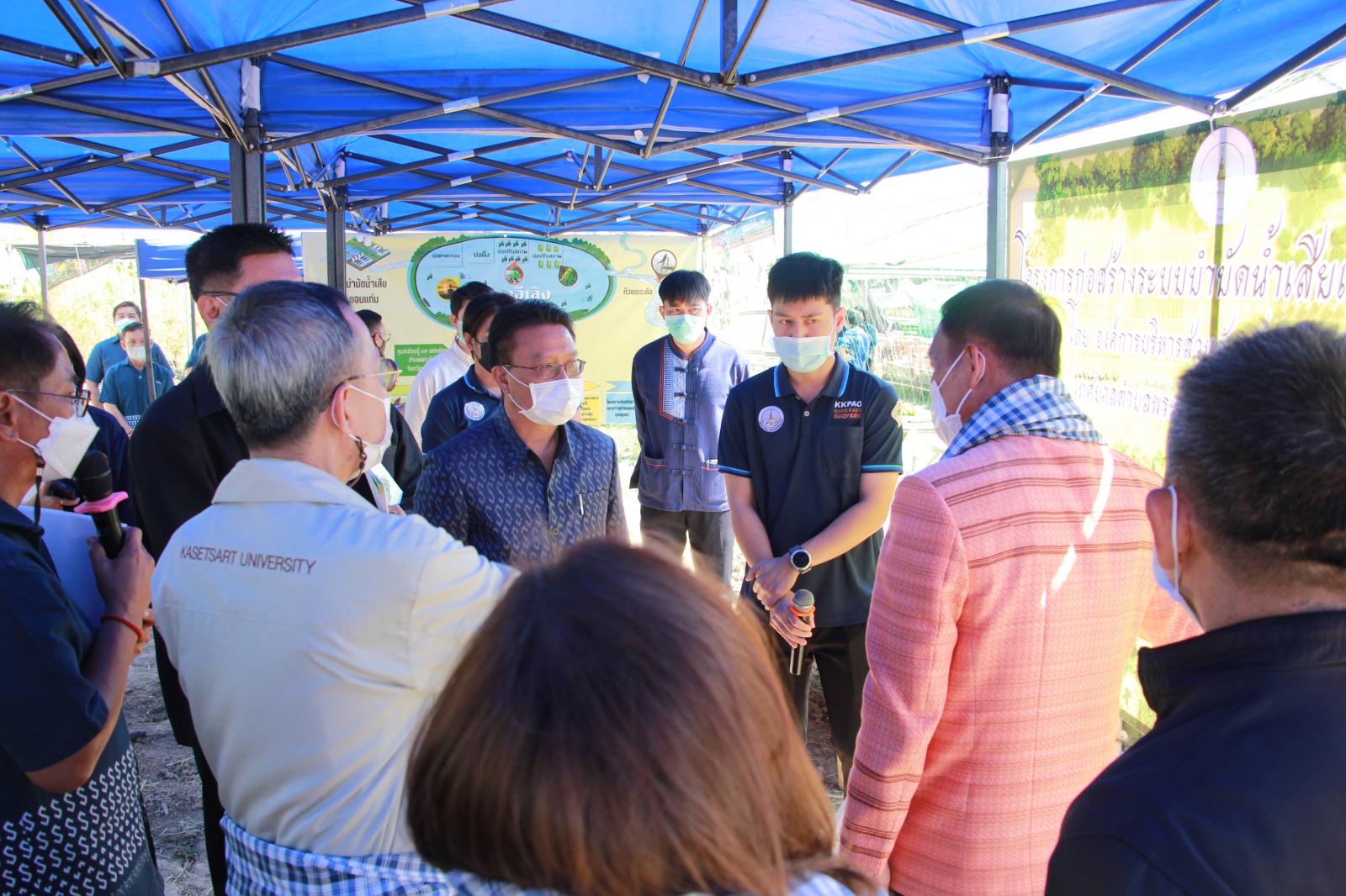 เมื่อวันที่ 15 ธันวาคม 2565 เวลา 09.30 น. ดร.พงษ์ศักดิ์ ตั้งวานิชกพงษ์ นายก อบจ.ขอนแก่น มอบหมายให้ ว่าที่ร้อยเอกพงเจตน์ พรกุณา ปลัด อบจ.ขอนแก่น ร่วมให้การต้อนรับ นายบุญลือ ธรรมธรานุรักษ์ ผอ.สำนักบริหารการปกครองท้องที่ กรมการปกครอง และคณะทำงานฯ ในโอกาสลงพื้นที่ตรวจเยี่ยมและประเมินผลเชิงประจักษ์อำเภอนำร่องฯ ของคณะทำงานคัดเลือกอำเภอนำร่องระดับจังหวัดที่สมควรได้รับการยกย่องเชิดชูเกียรติให้เป็นอำเภอ “บำบัดทุกข์ บำรุงสุข” ยอดเยี่ยม “โครงการลำห้วยพระคือ สายน้ำแห่งชีวิต ฟื้นเศรษฐกิจชุมชน” โดยมี นายชาญชัย ศรศรีวิชัย รองผู้ว่าราชการจังหวัดขอนแก่น กล่าวต้อนรับ นายประจวบ รักแพทย์ นายอำเภอเมืองขอนแก่น กล่าวรายงาน ในการนี้ องค์การบริหารส่วนจังหวัดขอนแก่นในฐานะหน่วยงานภาคีเครือข่ายในการดำเนินโครงการลำห้วยพระคือ สายน้ำแห่งชีวิต ฟื้นเศรษฐกิจชุมชน ในกิจกรรมบ่อบำบัดน้ำเสียแหลมผักเบี้ยที่หนองเลิงเปือย ซึ่งจัดทำโครงการก่อสร้างระบบบำบัดน้ำเสียแบบบึงประดิษฐ์ ได้จัดบูธแสดงที่มาของการดำเนินโครงการฯ และให้ข้อมูลต่อคณะทำงานตรวจประเมินฯ ณ ศูนย์เรียนรู้ฯ 19 พอเพียง บ้านโนนสวรรค์ หมู่ที่ 6 ต.พระลับ อ.เมืองขอนแก่น จ.ขอนแก่น