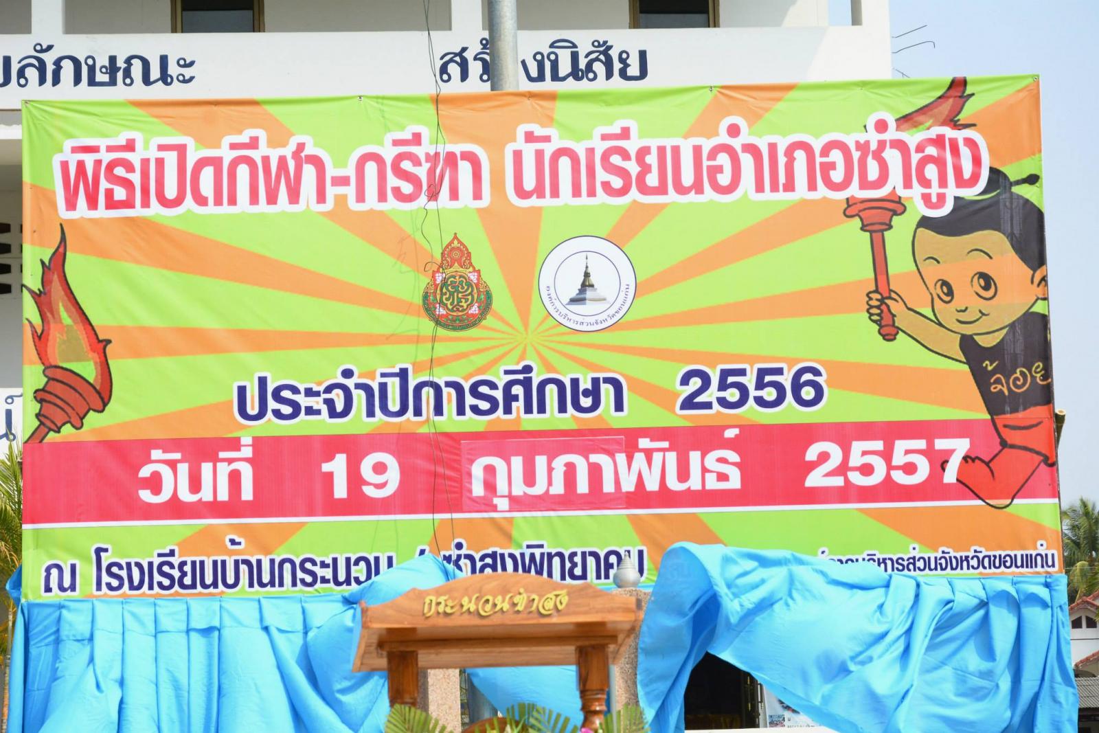 วันที่ 19 กุมภาพันธ์ 2557 ณ สนามกีฬาโรงเรียนบ้านกระนวนซำสูง ตำบลกระนวน อำเภอซำสูง จังหวัดขอนแก่น ดร.พงษ์ศักดิ์ ตั้งวานิชกพงษ์ นายกองค์การบริหารส่วนจังหวัดขอนแก่น เป็นประธานในพิธีเปิดการแข่งขันกีฬา-กรีฑานักเรียนอำเภอซำสูง ประจำปีการศึกษา 2556 ในระหว่างวันที่ 10-19 กุมภาพันธ์ 2557 เพื่อส่งเสริมให้นักเรียนได้เล่นกีฬา และห่างไกลยาเสพติด โดยมี นายธาดา พรหมสาขา ณ สกลนคร รองปลัด อบจ.ขอนแก่น พร้อมด้วย นายอุทัย วิสิลา ส.อบจ.ขอนแก่น เขต อ.ซำสูง ร่วมเป็นเกียรติในพิธี