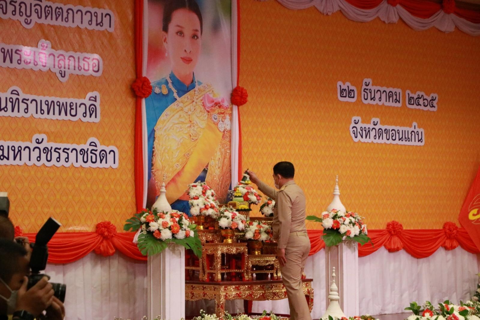 เมื่อวันที่ 22 ธ.ค. 2565 เวลา 08.30 น. องค์การบริหารส่วนจังหวัดขอนแก่น นำโดย ดร.พงษ์ศักดิ์ ตั้งวานิชกพงษ์ นายกองค์การบริหารส่วนจังหวัดขอนแก่น มอบหมายให้ นายประสิทธิ์ ทองแท่งไทย รองนายกองค์การบริหารส่วนจังหวัดขอนแก่น เข้าร่วมพิธีเจริญพระพุทธมนต์และเจริญจิตตภาวนา เพื่อถวายพระพรแด่สมเด็จพระเจ้าลูกเธอ เจ้าฟ้าพัชรกิติยาภา นเรนทิราเทพวดี กรมหลวงราชสริณีสิริพัช มหาวัชรราชธิดา พร้อมด้วย นายนำศิลป์ วิเศษ ผู้อำนวยสำนักศึกษา ศาสนาและวัฒนธรรม นายวิรัติ นาคนชม ผู้อำนวยการสำนักช่าง โดยมีนายไกรสร กองฉลาด ผู้ว่าราชการจังหวัดขอนแก่น เป็นประธานในพิธี และหน่วยงานภาครัฐ ภาคเอกชน ณ ห้องประชุมแก่นเมือง ศาลากลางจังหวัดขอนแก่น หลังใหม่ (ชั้น 1)