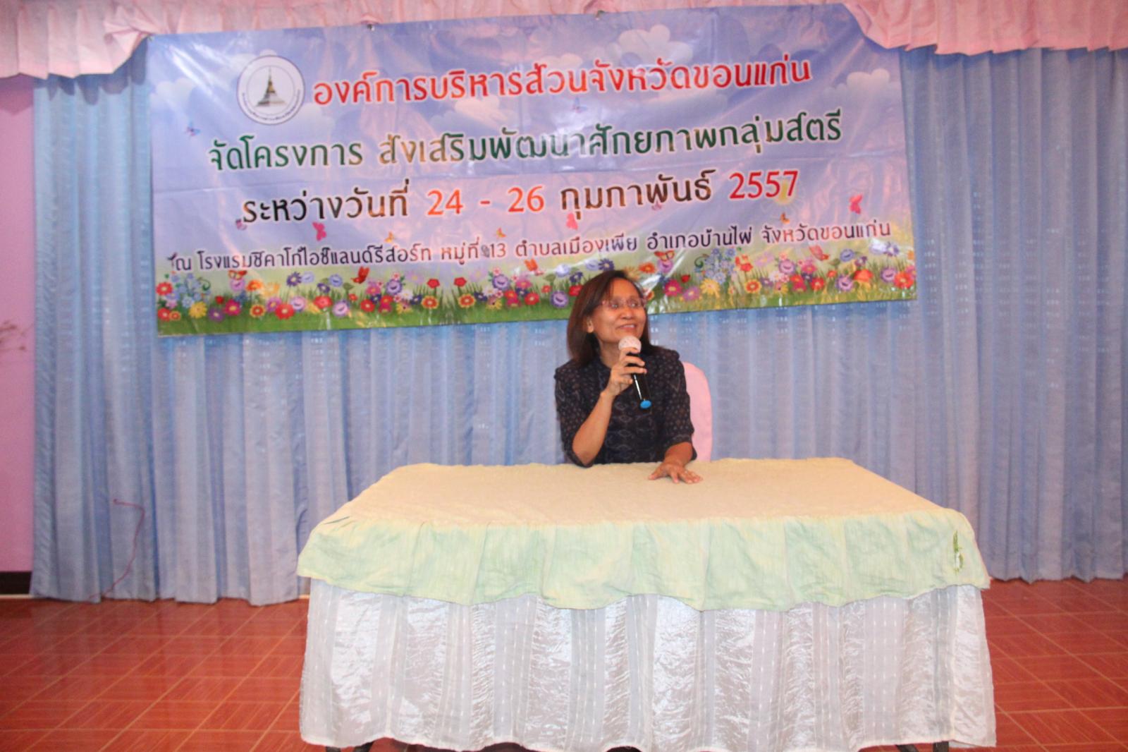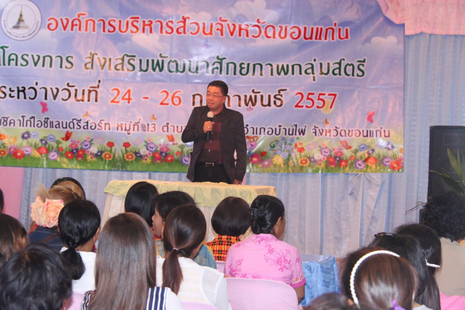 เมื่อวันที่ ๒๕ กุมภาพันธ์ ๒๕๕๗ ณ ชิคาโก้ไอซ์แลนด์รีสอร์ท ต.เมืองเพีย อ.บ้านไผ่ จ.ขอนแก่น ดร.พงษ์ศักดิ์ ตั้งวานิชกพงษ์ นายกองค์การบริหารส่วนจังหวัดขอนแก่น เป็นประธานเปิดโครงการ “ส่งเสริมพัฒนาศักยภาพกลุ่มสตรี องค์การบริหารส่วนจังหวัดขอนแก่น โดยมีนายเดชคำรณ สิงคลีบุตร สมาชิกสภาองค์การบริหารส่วนจังหวัดขอนแก่น อำเภอบ้านไผ่ เขต 1 นายธาดา พรหมสาขา ณ สกลนคร รองปลัดองค์การบริหารส่วนจังหวัดขอนแก่น นายวรเวทย์ ดิเรกศรี หัวหน้าสำนักปลัดองค์การบริหารส่วนจังหวัด นายสุรชัย วัฒนาอุดมชัย นายอำเภอเมืองบ้านไผ่ นางอุไร ทิพย์กิตติวงศ์ พัฒนาการอำเภอบ้านไผ่พร้อมด้วยข้าราชการ และพนักงานองค์การบริหารส่วนจังหวัดขอนแก่น ร่วมในพิธีเปิดโครงการ