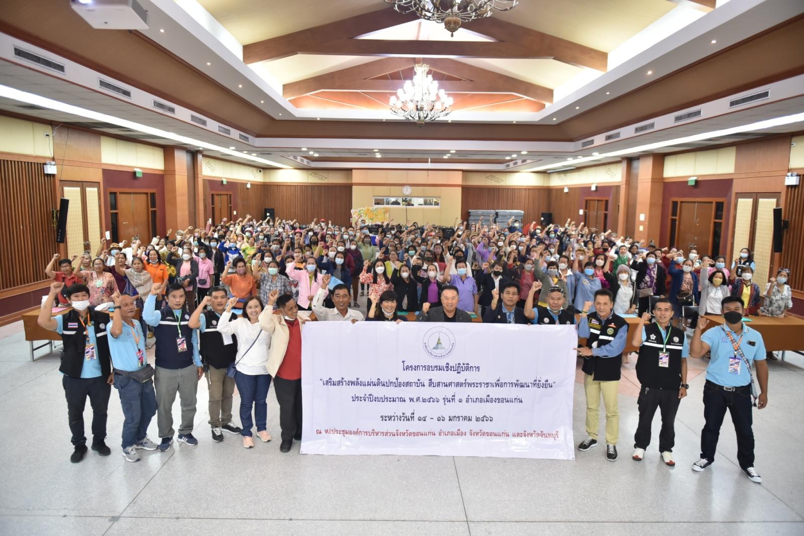 วันที่ 14 มกราคม 2566 เวลา 18.30 น. ดร.พงษ์ศักดิ์ ตั้งวานิชกพงษ์ นายกองค์การบริหารส่วนจังหวัดขอนแก่น เป็นประธานเปิดโครงการอบรมเชิงปฎิบัติการ "เสริมสร้างพลังแผ่นดินปกป้องสถาบัน สืบสานศาสตร์พระราชาเพื่อการพัฒนาที่ยั่งยืน " ประจำปีงบประมาณ 2566 รุ่นที่ 1 อำเภอเมืองขอนแก่น เพื่อสร้างเครือข่ายพลังแผ่นดินให้เกิดขึ้นในพื้นที่ และเพื่อให้ผู้เข้าอบรมรับรู้ถึงความสำคัญของสถาบันหลักของชาติไทย โดยมีผู้เข้าอบรมจำนวน 210 คน ในโอกาสนี้มี นางอัญชลี เฟื่องทอง ส.อบจ.ขอนแก่น อ.เมือง เขต 4 , นายจรูญ อ่วยนอก ส.อบจ.ขอนแก่น เขต อ.ซำสูง ร่วมในพิธี ณ หอประชุมองค์การบริหารส่วนจังหวัดขอนแก่น ถนนหน้าเมือง อำเภอเมือง จังหวัดขอนแก่น