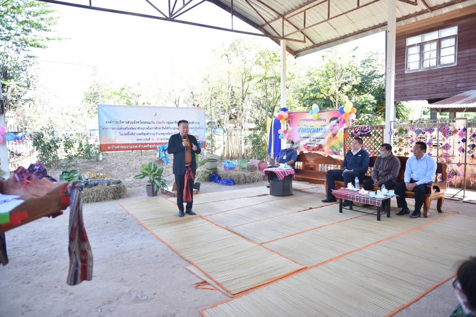 วันที่ 18 มกราคม 2566 องค์การบริหารส่วนจังหวัดขอนแก่น นำโดย ดร.พงษ์ศักดิ์ ตั้งวานิชกพงษ์ นายกองค์การบริหารส่วนจังหวัดขอนแก่น เป็นประธานเปิดโครงการอบรมส่งเสริมพัฒนาศักยภาพในการฝึกอาชีพให้กับกลุ่มแม่บ้านและประชาชนทั่วไป ในเขตพื้นที่ ต.ศรีสุขสำราญ อ.อุบลรัตน์ ในโอกาสนี้มี นายรุ่งโรจน์ เย็นสบาย ส.อบจ.ขอนแก่น เขต อ.อุบลรัตน์ พร้อมด้วย นายวิรัตน์ เย็นสบาย นายกเทศมนตรีตำบลกุดน้ำใส และ นายประจักษ์ นาหนองตูม นายกองค์การบริหารส่วนตำบลศรีสุขสำราญ ร่วมเป็นเกียรติในพิธี ณ บ้านท่าพระยาณรงค์ ต.ศรีสุขสำราญ อ.อุบลรัตน์ จ.ขอนแก่น จากนั้นเวลา 11.00 น. ได้เดินทางไปที่องค์การบริหารส่วนตำบลศรีสุขสำราญ อ.อุบลรัตน์ จ.ขอนแก่น ร่วมพบปะและให้กำลังใจผู้ที่เข้าร่วมโปรแกรมบำบัดฟื้นฟูผู้ใช้ยาเสพติดโดยชุมชนเป็นฐาน ต.ศรีสุขสำราญ อ.อุบลรัตน์ จ.ขอนแก่น ปี 2566