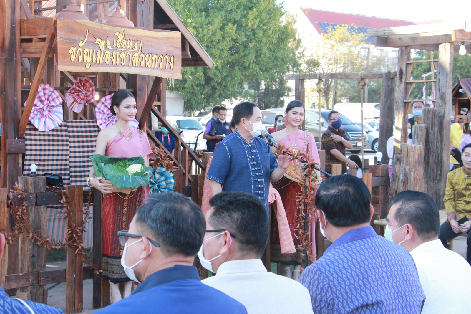 พิธีเปิดงานตลาดนัดผักปลอดภัย ผ้าไหม ไก่ย่าง จังหวัดขอนแก่น