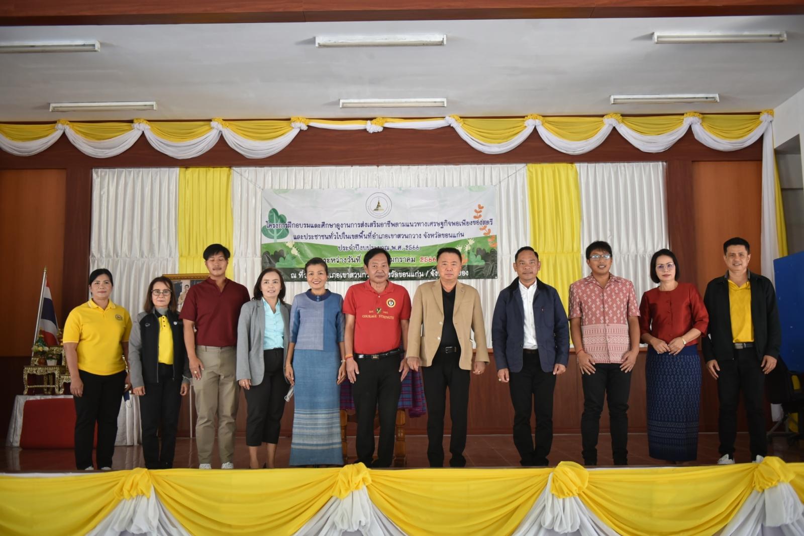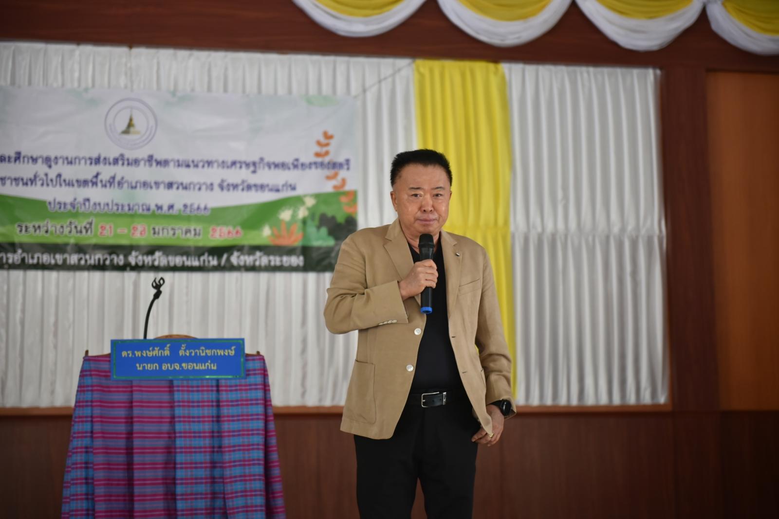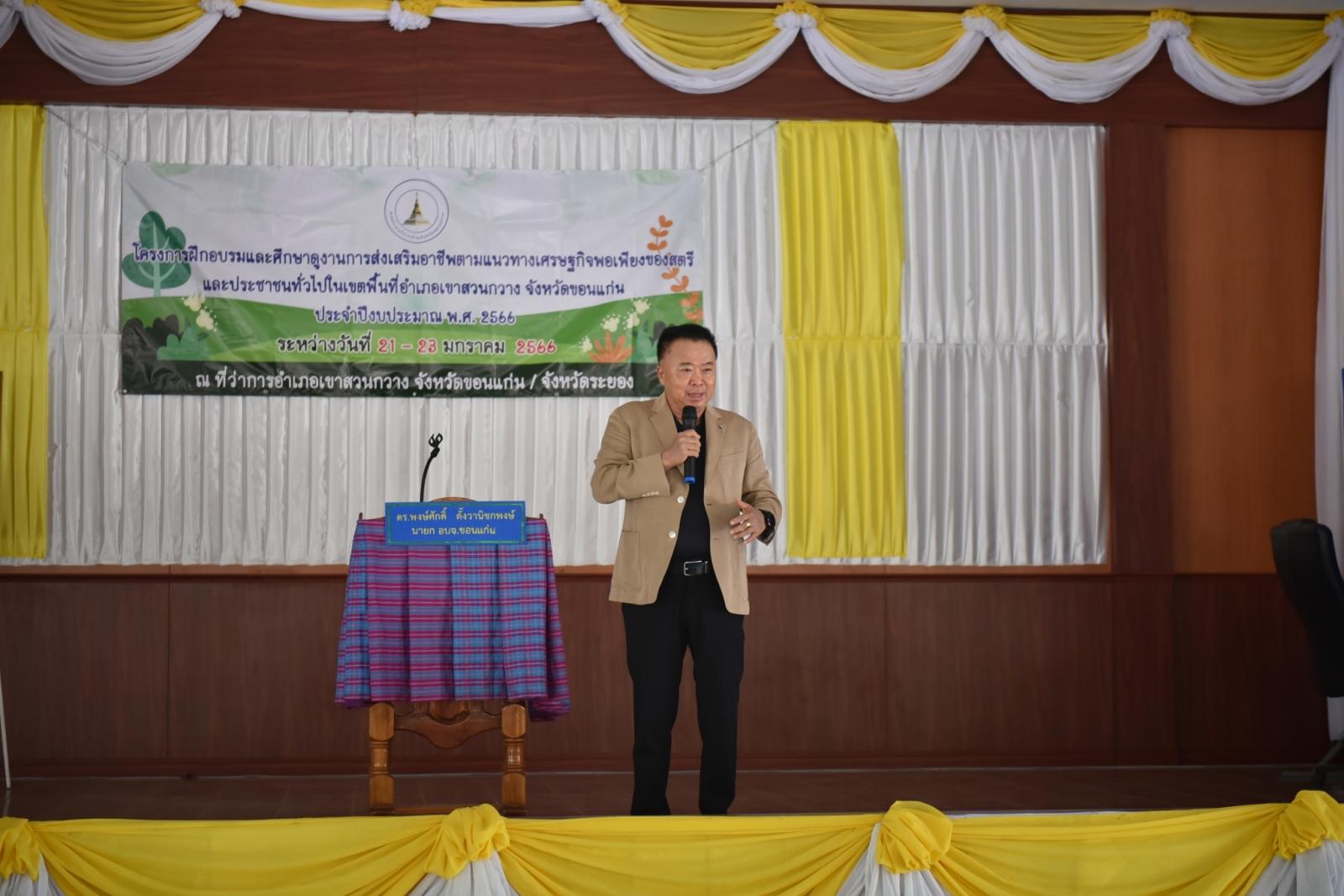 ในวันที่ 21 มกราคม 2566 เวลา 11.30 น. ดร.พงษ์ศักดิ์ ตั้งวานิชกพงษ์ นายก อบจ.ขอนแก่น เป็นประธานเปิดโครงการฝึกอบรมและศึกษาดูงานการส่งเสริมอาชีพตามแนวทางเศรษฐกิจพอเพียง ของสตรีและประชาชนทั่วไปในเขตพื้นที่อำเภอเขาสวนกวางจังหวัดขอนแก่น ประจำปีงบประมาณ พ.ศ 2566ในโอกาสนี้มีนายกรชวาลวิชญ์ ชัยพีรวัส นายอำเภอเขาสวนกวางและนายธนะวัฒน์ เต็มธนกิจไพศาล ส.อบจ.ขอนแก่นเขตอ.เขาสวนกวาง นางสาวศิริวรรณ สุรินทะ หัวหน้าสัำนักปลัด อบจ. ร่วมเป็นเกียรติ ณ หอประชุมที่ว่าการอำเภอเขาสวนกวาง จังหวัดขอนแก่น และ จังหวัดระยอง
