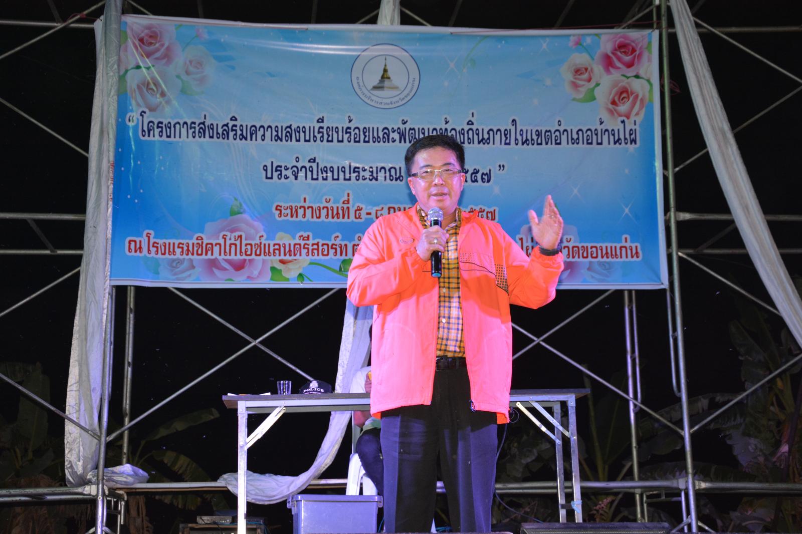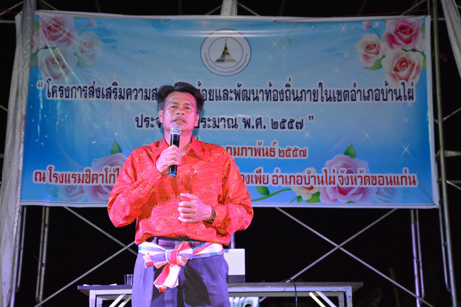 ช่วงค่ำวันที่ 5 กุมภาพันธ์ 2557 ดร.พงษ์ศักดิ์ ตั้งวานิชกพงษ์ นายกองค์การบริหารส่วนจังหวัดขอนแก่น พร้อมด้วย นางสุมาลี ฐานวิเศษ ปลัด อบจ.ขอนแก่น นายธาดา พรหมสาขา ณ สกลนคร นางสาวนงลักษณ์ รัตนจันทร์ รองปลัด อบจ.ขอนแก่น และ นายวรเวทย์ ดิเรกศรี หัวหน้าสำนักปลัด อบจ.ขอนแก่น ได้ลงพื้นที่พบประชาชนชาวที่อำเภอบ้านไผ่ จังหวัดขอนแก่น ณ โรงแรมชิคาโก้ไอซ์แลนด์รีสอร์ท อ.บ้านไผ่ ทั้งนี้เพื่อรับทราบปัญหาความต้องการ และเป็นกำลังใจการประกอบอาชีพของประชาชน โดยมี นายเดชคำรณ สิงคลีบุตร นายองอาจ ฉัตรชัยพลรัตน์ ส.อบจ.ขอนแก่น เขต อ.บ้านไผ่ นำคณะให้การต้อนรับ
