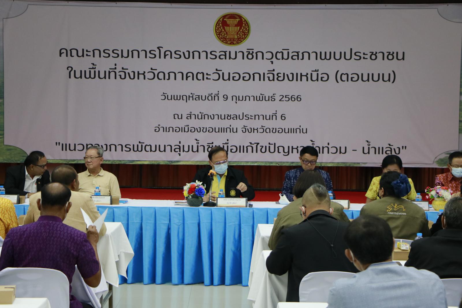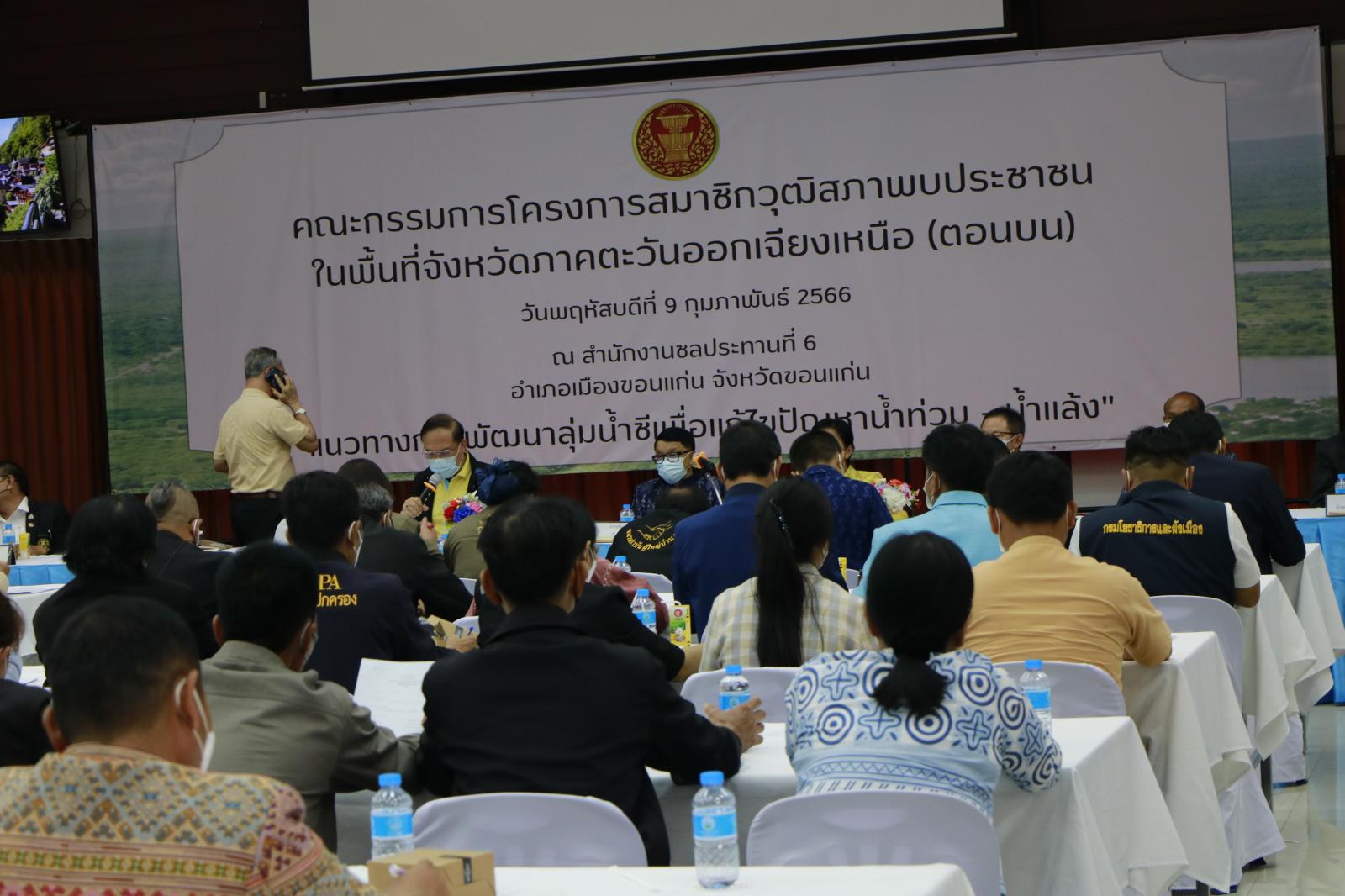 เมื่อวันที่ 9 กุมภาพันธ์ 2566 เวลา 08.30 น. ดร.พงษ์ศักดิ์ ตั้งวานิชกพงษ์ นายกองค์การบริหารส่วนจังหวัดขอนแก่น มอบหมายให้ นายประสิทธิ์ ทองแท่งไทย รองนายกองค์การบริหารส่วนจังหวัดขอนแก่น เข้าร่วมโครงการสมาชิกวุฒิสภาพบประชาชนในพื้นที่จังหวัดภาคตะวันออกเฉียงเหนือ (ตอนบน) “แนวทางการพัฒนาลุ่มน้ำชีเพื่อแก้ไขปัญหาน้ำท่วม – น้ำแล้ง ” โดยมี พลโท จเรศักณิ์ อานุภาพ สมาชิกวุฒิสภา เป็นประธาน, หัวหน้าส่วนราชการจังหวัดขอนแก่น, จังหวัดมหาสารคาม ,จังหวัดร้อยเอ็ด ,จังหวัดชัยภูมิ,จังหวัดกาฬสินธุ์ หน่วยงานที่เกี่ยวข้อง กลุ่มเกษตรกร ผู้ใหญ่บ้าน กำนัน และชาวบ้าน ที่เกี่ยวข้องเข้าร่วมรับฟังข้อคิดเห็นและข้อเสนอแนะ ณ สำนักงานชลประทานที่ 6 ห้องลำน้ำพอง อำเภอเมืองขอนแก่น จังหวัดขอนแก่น