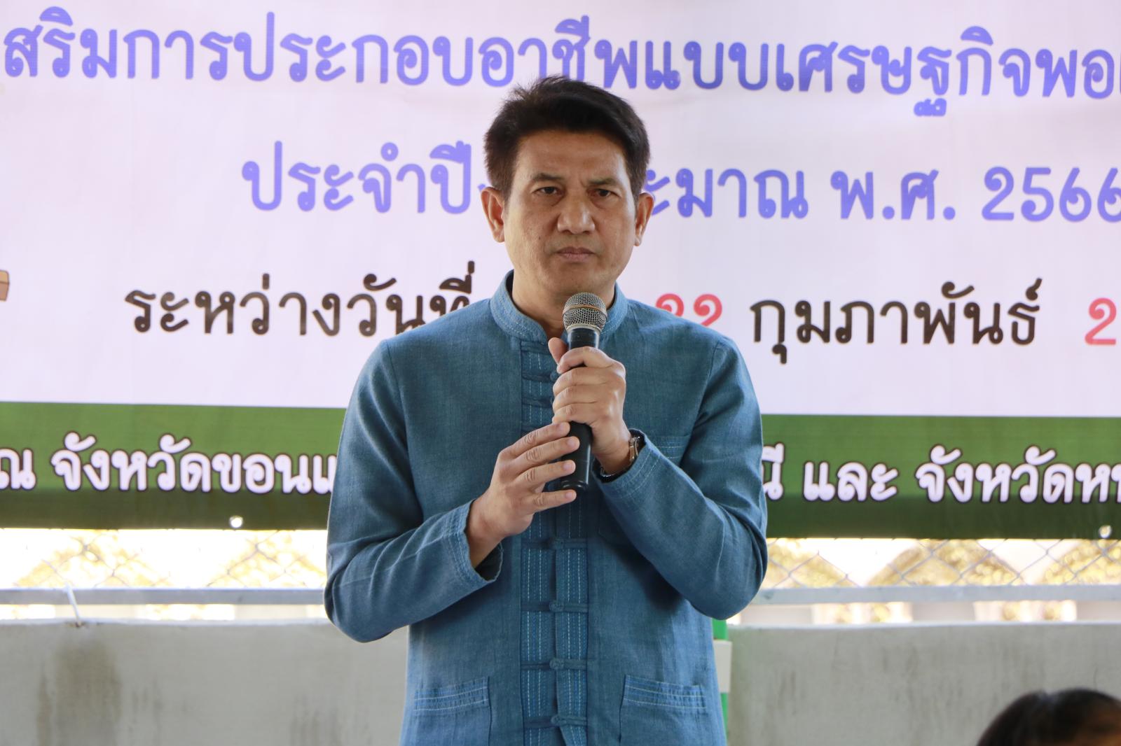 เมื่อวันที่ 21 กุมภาพันธ์ 2566 เวลา 10.00 น. ดร.พงษ์ศักดิ์ ตั้งวานิชกพงษ์ นายกองค์การบริหารส่วนจังหวัดขอนแก่น มอบหมายให้ นายสิทธิกุล ภูคำวงศ์ รองนายกองค์การบริหารส่วนจังหวัดขอนแก่น เป็นประธานพิธีเปิดโครงการ “จัดอบรมและศึกษาดูงานโครงการส่งเสริมการประกอบอาชีพแบบเศรษฐกิจพอเพียงจังหวัดขอนแก่น ”ประจำปีงบประมาณ พ.ศ.2566 เพื่อส่งเสริมให้กลุ่มสตรีและประชาชนทั่วไปในเขตพื้นที่อำเภอโคกโพธิ์ไชย นางศิริพร ประดาพล หัวหน้าฝ่ายอำนวยการ เป็นผู้กล่าวรายงาน นายมีสวัสดิ์ ชมชัยภูมิ ส.อบจ. อำเภอโคกโพธิ์ไชย นายธนณัฐ อาจิณกิจ นายอำเภอโคกโพธิ์ไชย หัวหน้างานองค์การบริหารส่วนจังหวัดขอนแก่นเจ้าหน้าที่ที่เกี่ยวข้อง กำนัน และผู้ใหญ่บ้าน ร่วมงาน ณ ศาลาเอนกประสงค์วัดกองศรี ตำบลโพธิ์ไชย อำเภอโคกโพธิ์ไชย จังหวัดขอนแก่น