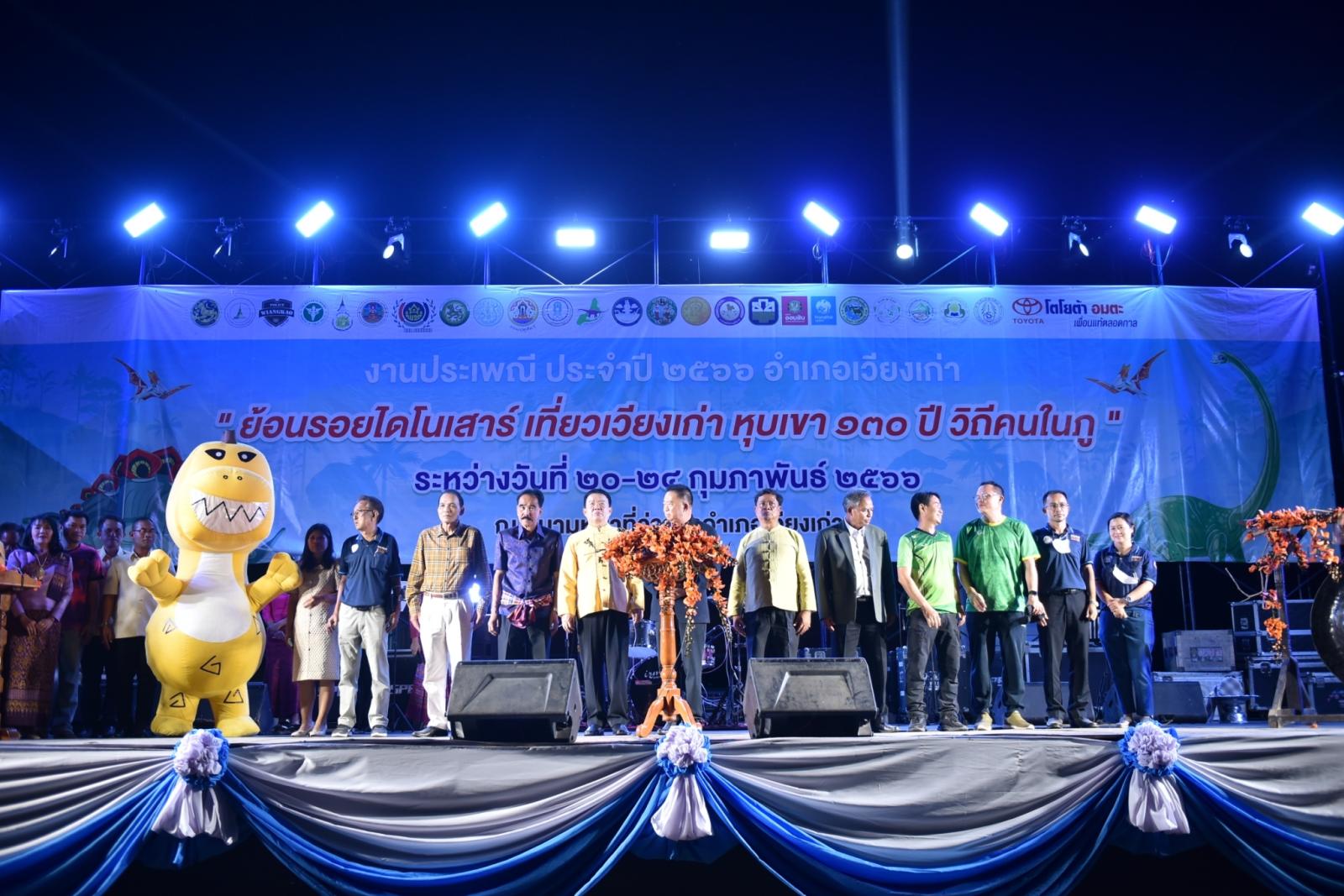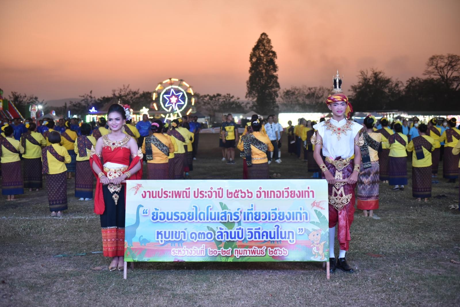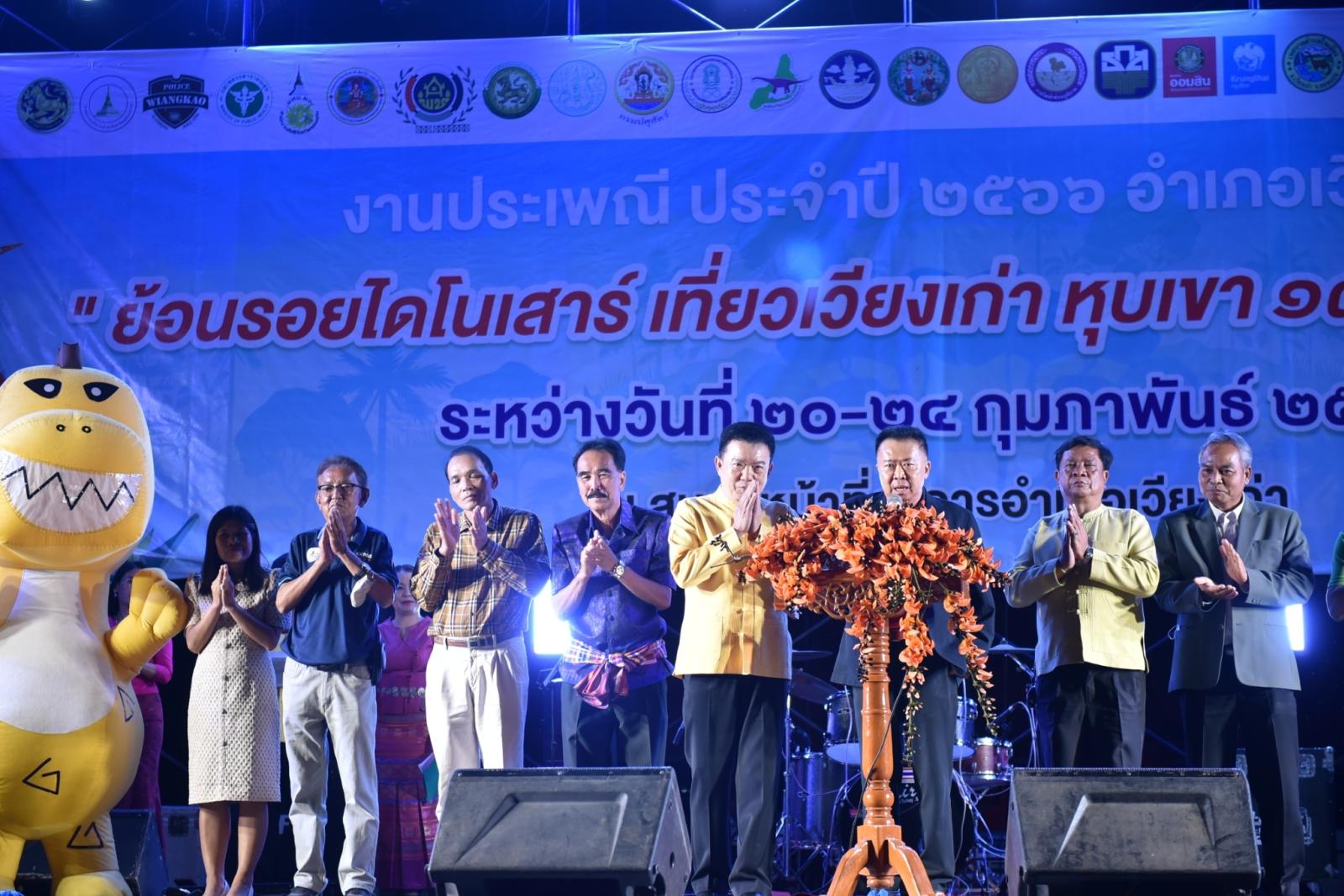 พิธีเปิดงานประเพณีอำเภอเวียงเก่า “ย้อนรอยไดโนเสาร์ เที่ยวเวียงเก่า หุบเขา 130 ล้านปี วิถีคนในภู” ประจำปี 2566