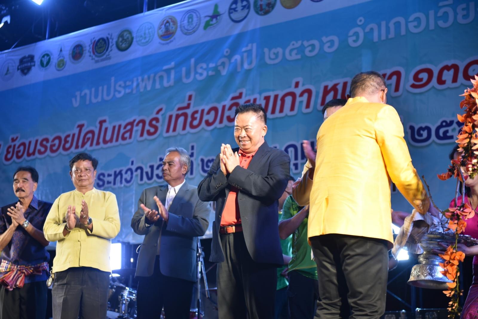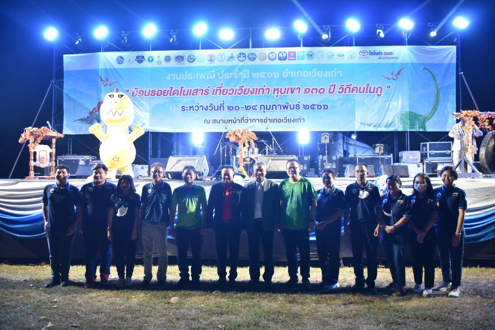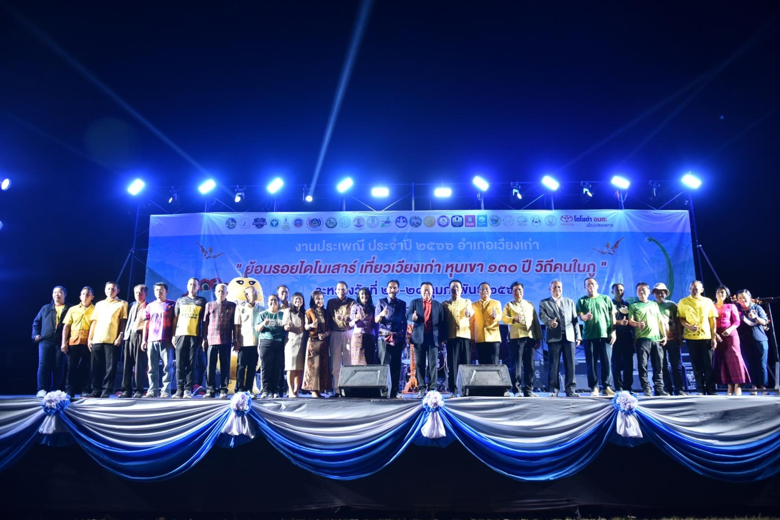 พิธีเปิดงานประเพณีอำเภอเวียงเก่า “ย้อนรอยไดโนเสาร์ เที่ยวเวียงเก่า หุบเขา 130 ล้านปี วิถีคนในภู” ประจำปี 2566