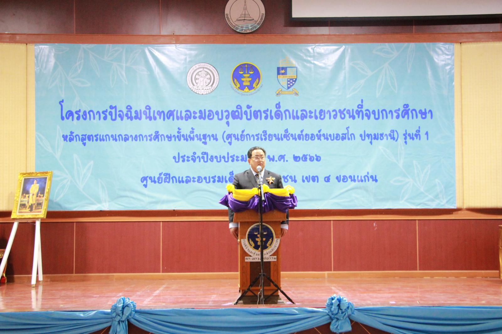เปิดโครงการปัจฉิมนิเทศและมอบวุฒิบัตรเด็กและเยาวชนที่จบการศึกษา หลักสูตรแกนกลางการศึกษาขั้นพื้นฐาน (ศูนย์การเรียนรู้เซ็นต์ยอห์นบอสโก ปทุมธานี) รุ่นที่ 1