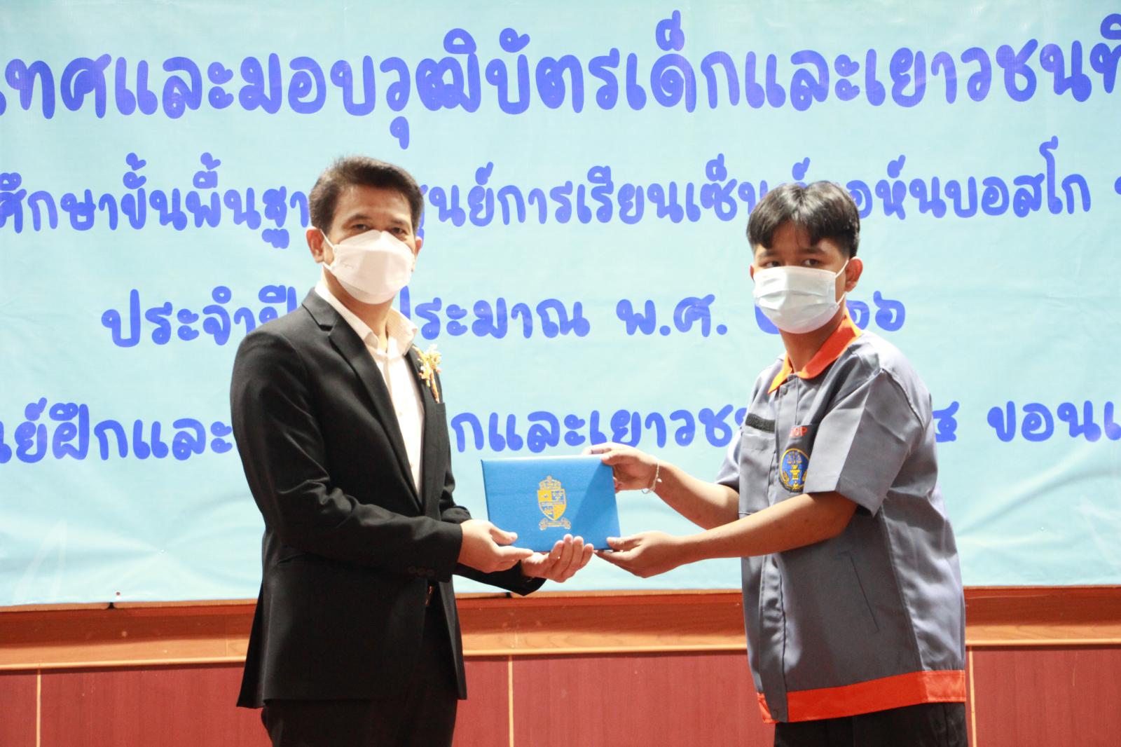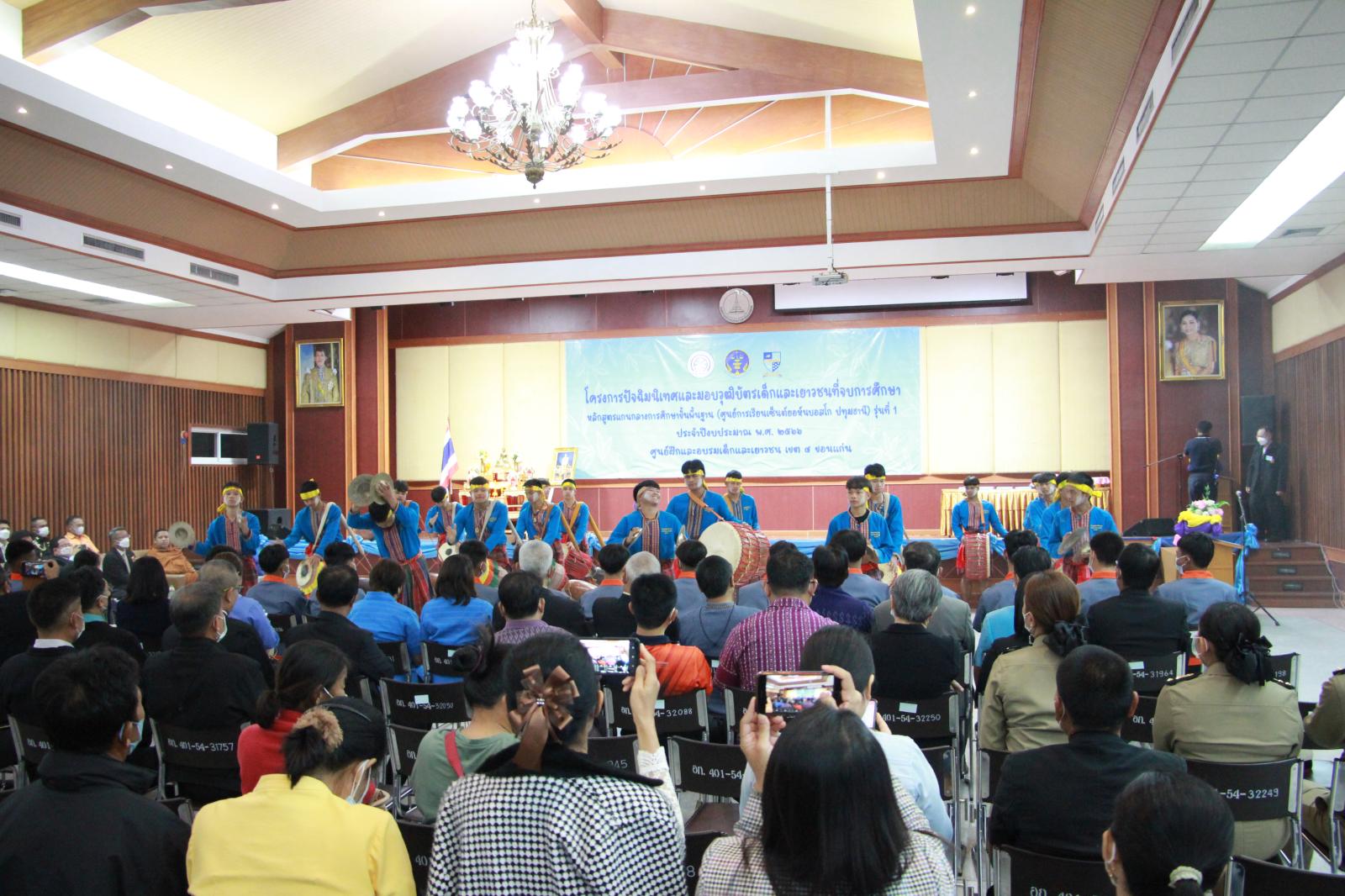 เมื่อวันที่ 24 กุมภาพันธ์ 2566 เวลา 09.30 น. ดร.พงษ์ศักดิ์ ตั้งวานิชกพงษ์ นายก อบจ.ขอนแก่น มอบหมายให้ นายสิทธิกุล ภูคำวงศ์ รองนายก อบจ.ขอนแก่น เข้าร่วมพิธีเปิดโครงการปัจฉิมนิเทศและมอบวุฒิบัตรเด็กและเยาวชนที่จบการศึกษา หลักสูตรแกนกลางการศึกษาขั้นพื้นฐาน (ศูนย์การเรียนรู้เซ็นต์ยอห์นบอสโก ปทุมธานี) รุ่นที่ 1 โดยมี นายอภิชัย วิเศษพานิชกิจ ผู้พิพากษาหัวหน้าศาลเยาวชนและครอบครัวจังหวัดขอนแก่น เป็นประธาน พันจ่าอากาศตรีรพีพงศ์ ประธานธุรารักษ์ ผอ.ศูนย์ฝึกและอบรมเด็กและเยาวชน เขต 4 ขอนแก่น กล่าวรายงาน ณ หอประชุมองค์การบริหารส่วนจังหวัดขอนแก่น อ.เมืองขอนแก่น จ.ขอนแก่น