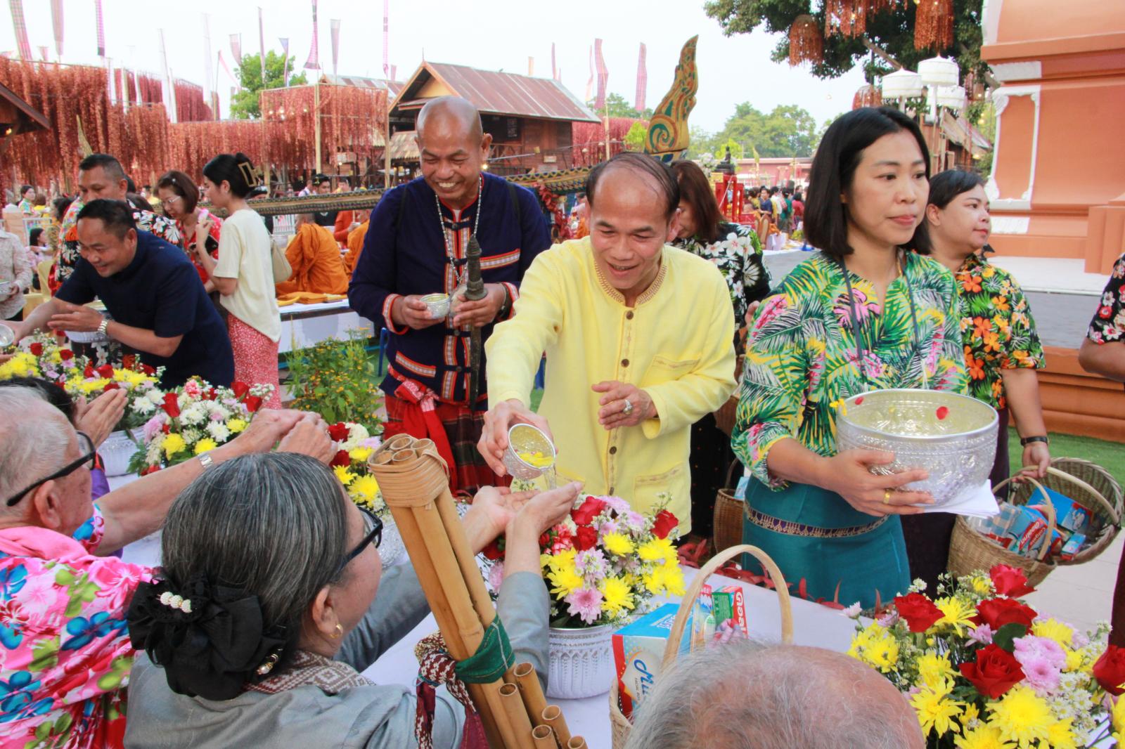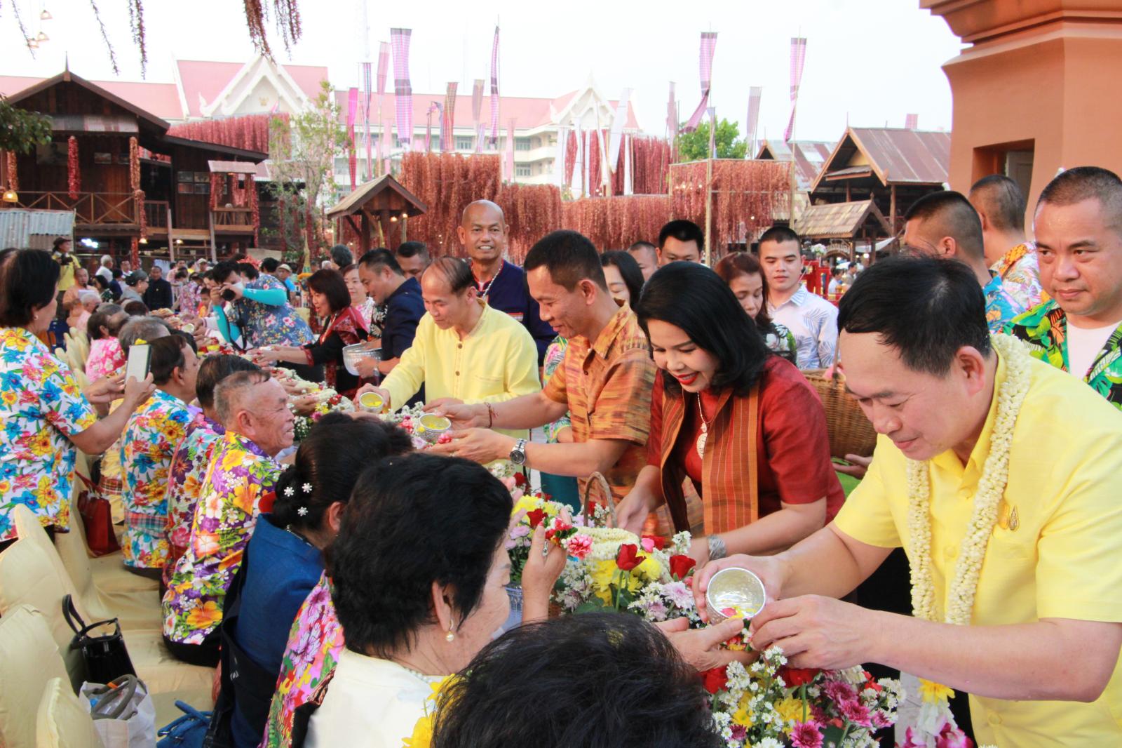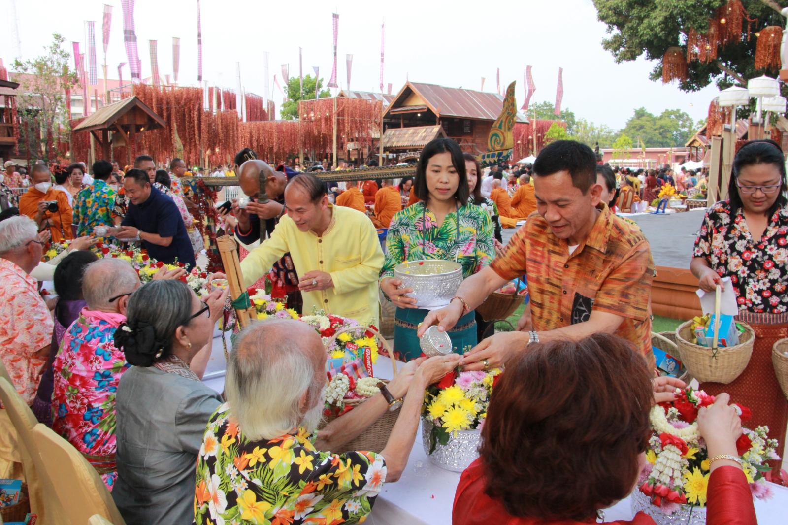 ร่วมพิธีสรงน้ำพระและรดน้ำดำหัวผู้สูงอายุ ในงานสืบสานประเพณีสงกรานต์ วิถีไทบ้านขอนแก่น ประจำปี 2566