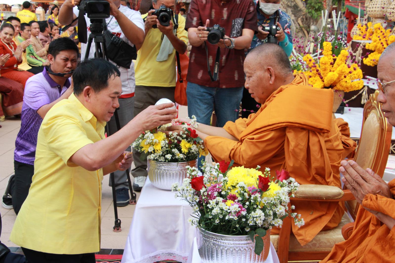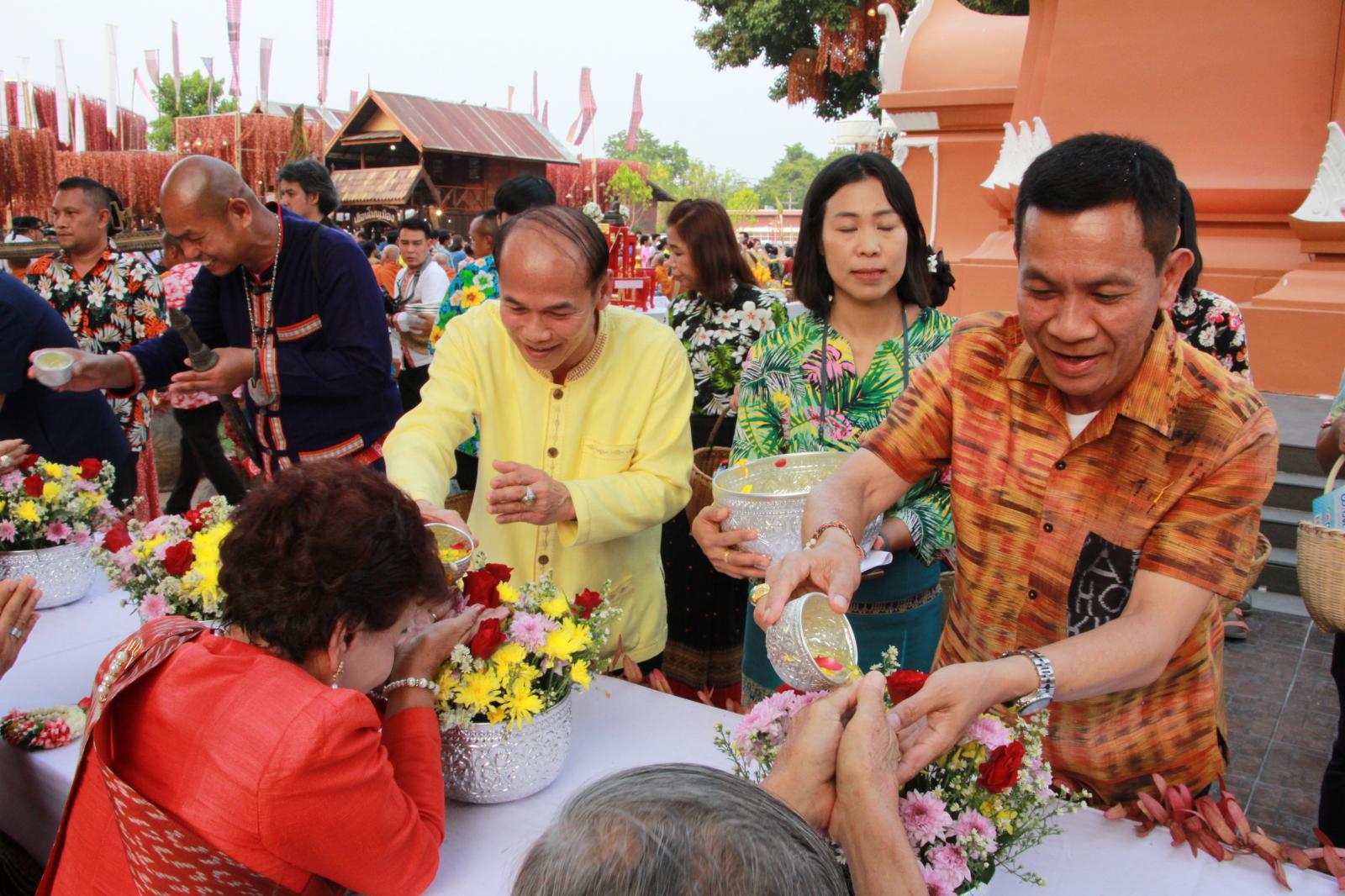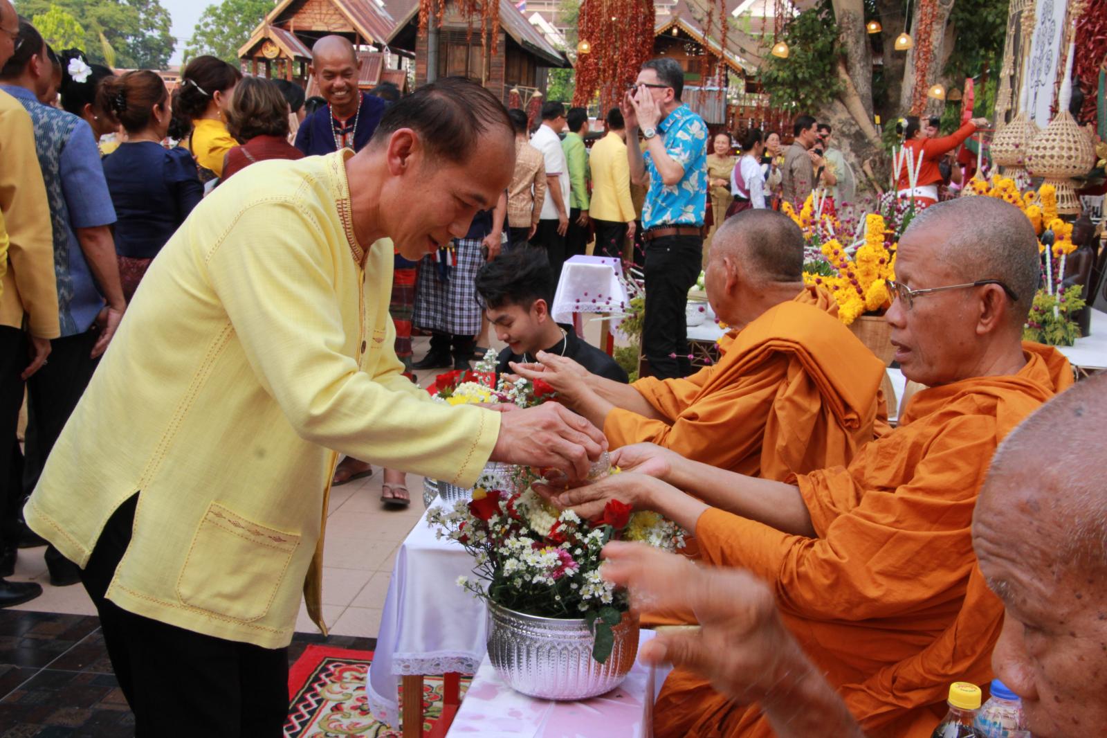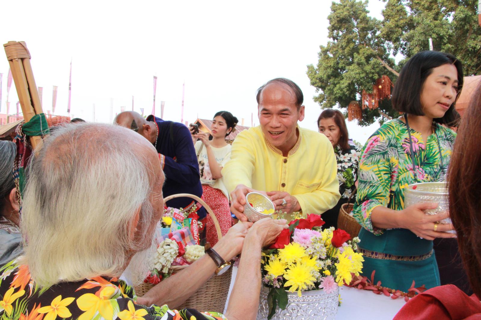 ร่วมพิธีสรงน้ำพระและรดน้ำดำหัวผู้สูงอายุ ในงานสืบสานประเพณีสงกรานต์ วิถีไทบ้านขอนแก่น ประจำปี 2566