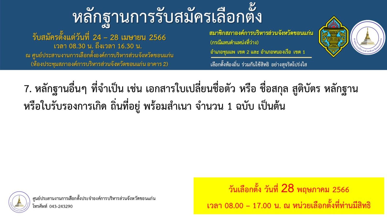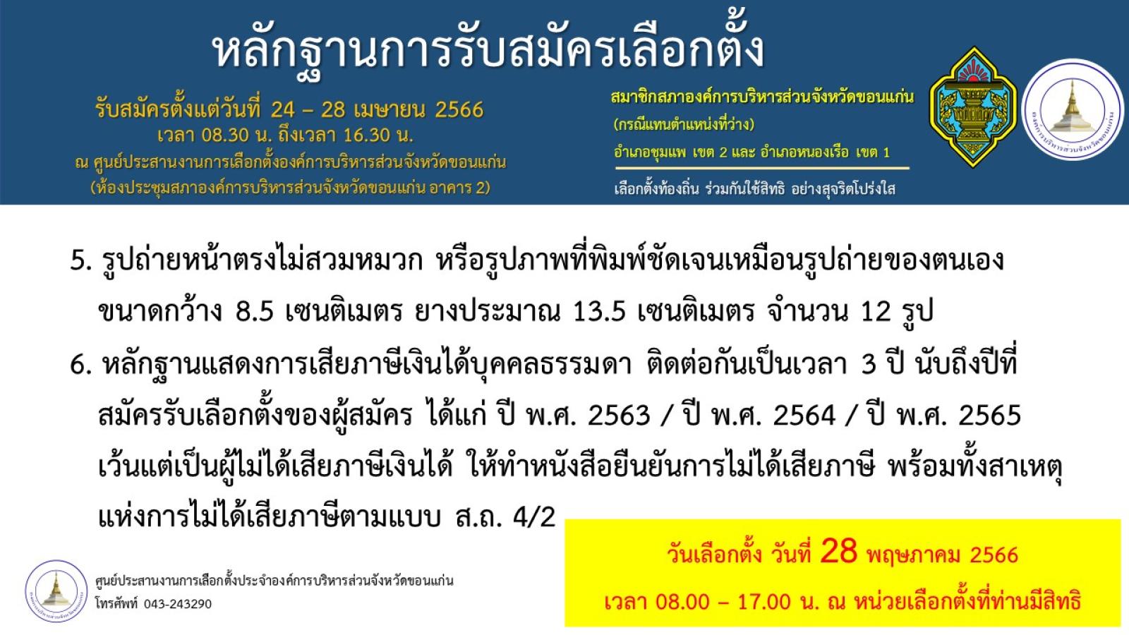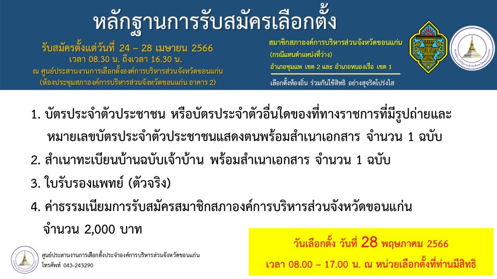 การรับสมัครเลือกตั้งสมาชิกสภาองค์การบริหารส่วนจังหวัดขอนแก่น กรณีแทนตำแหน่งที่ว่าง (อ.ชุมแพ เขต 2 และ อ.หนองเรือ เขต 1) -