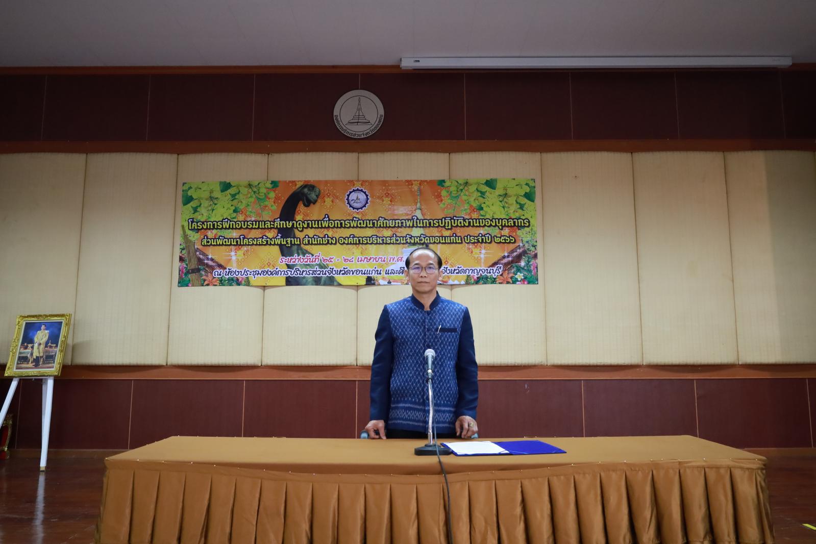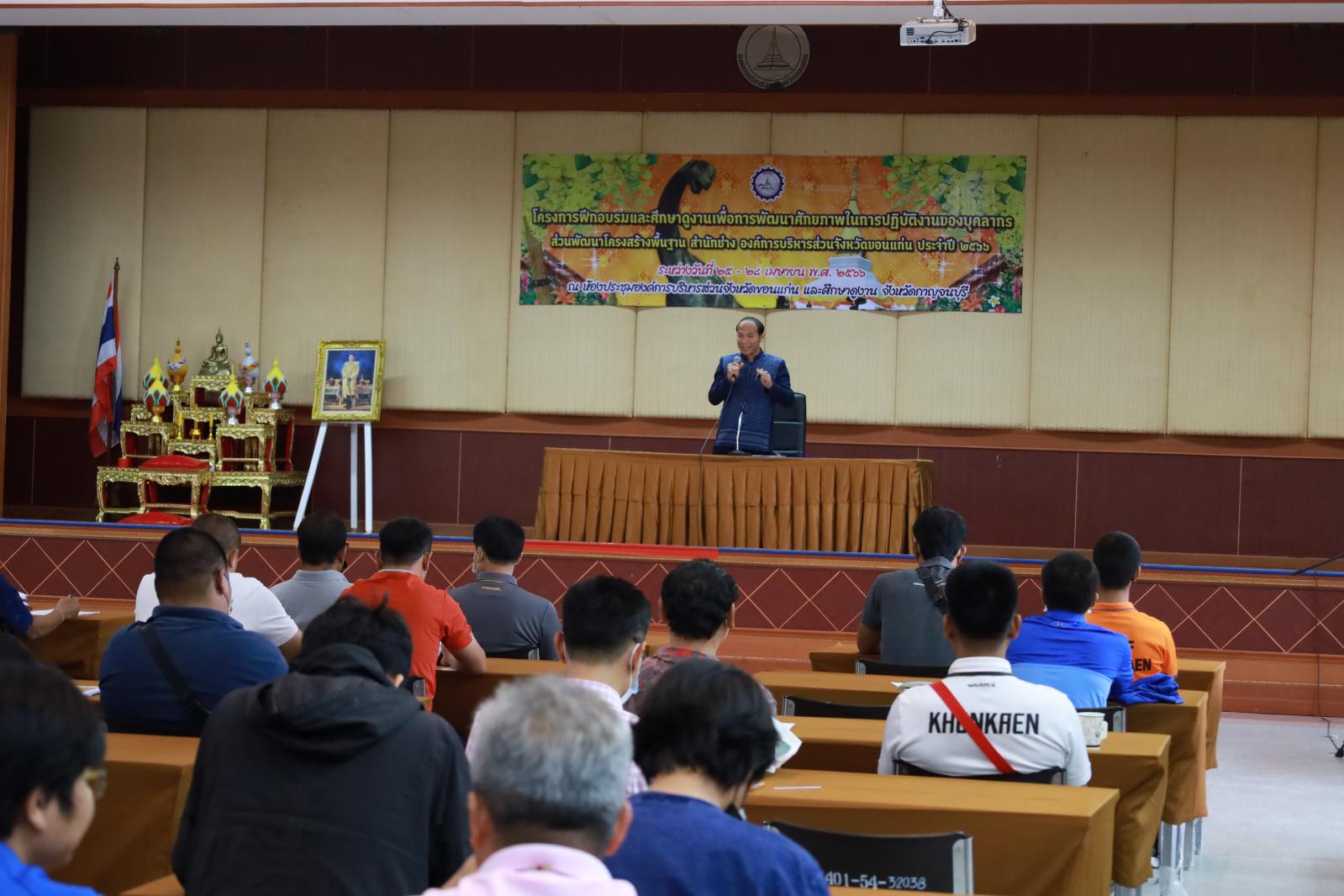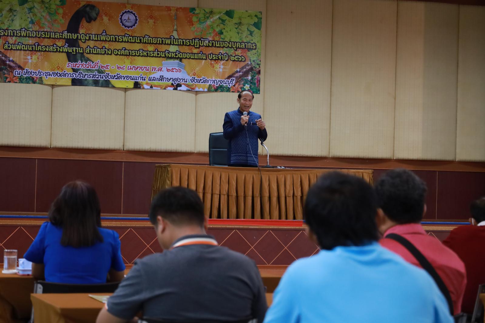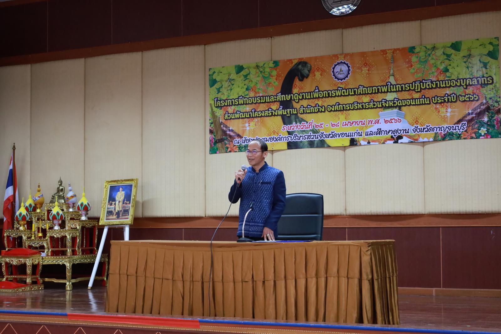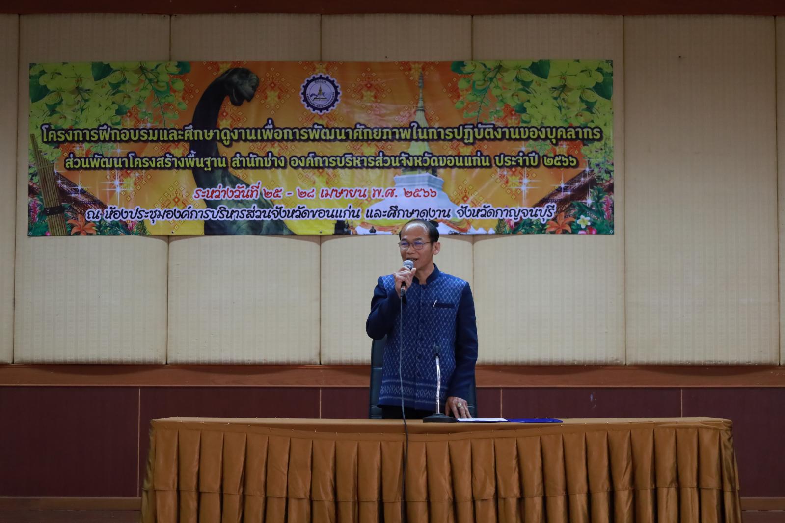 พิธีเปิดโครงการฝึกอบรมและศึกษาดูงานเพื่อการพัฒนาศักยภาพในการปฏิบัติงานของบุคลากรส่วนพัฒนาโครงสร้างพื้นฐาน สำนักช่าง องค์การบริหารส่วนจังหวัดขอนแก่น ประจำปี 2566