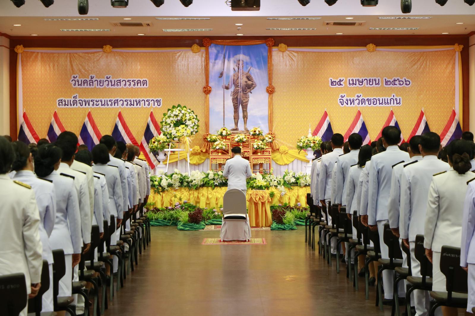 เมื่อวันที่ 20 เมษายน 2566 เวลา 09.00 น. ดร.พงษ์ศักดิ์ ตั้งวานิชกพงษ์ นายกองค์การบริหารส่วนจังหวัดขอนแก่น มอบหมายให้ นายสิทธิกุล ภูคำวงศ์ รองนายกองค์การบริหารส่วนจังหวัดขอนแก่น ร่วมงานพิธี “วันคล้ายวันสวรรคตสมเด็จพระนเรศวรมหาราช ” โดยมีนายไกรสร กองฉลาด ผู้ว่าราชการจังหวัดขอนแก่น เป็นประธาน พร้อมด้วย รองผู้ว่าราชการจังหวัดขอนแก่น หัวหน้าส่วนราชการประจำจังหวัดขอนแก่นทุกส่วนราชการ หัวหน้าหน่วยงานรัฐวิสาหกิจทุกหน่วยงาน นายอำเภอเมืองขอนแก่น นายกเทศมนตรีนครขอนแก่น ประธานหอการค้าจังหวัดขอนแก่น และประธานสภาอุตสาหกรรมจังหวัดขอนแก่น ร่วมงานพิธี ณ ห้องแก่นเมือง ศาลากลางจังหวัดขอนแก่น (หลังใหม่) ชั้น 1 อำเภอเมืองขอนแก่น จ.ขอนแก่น