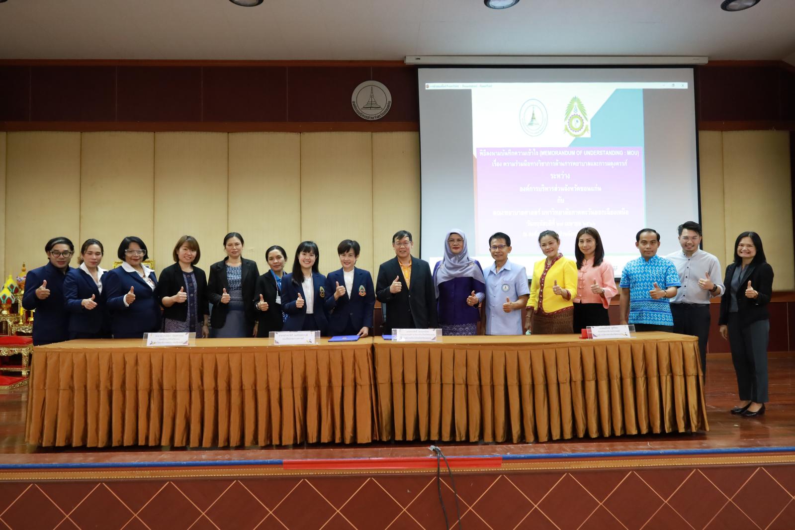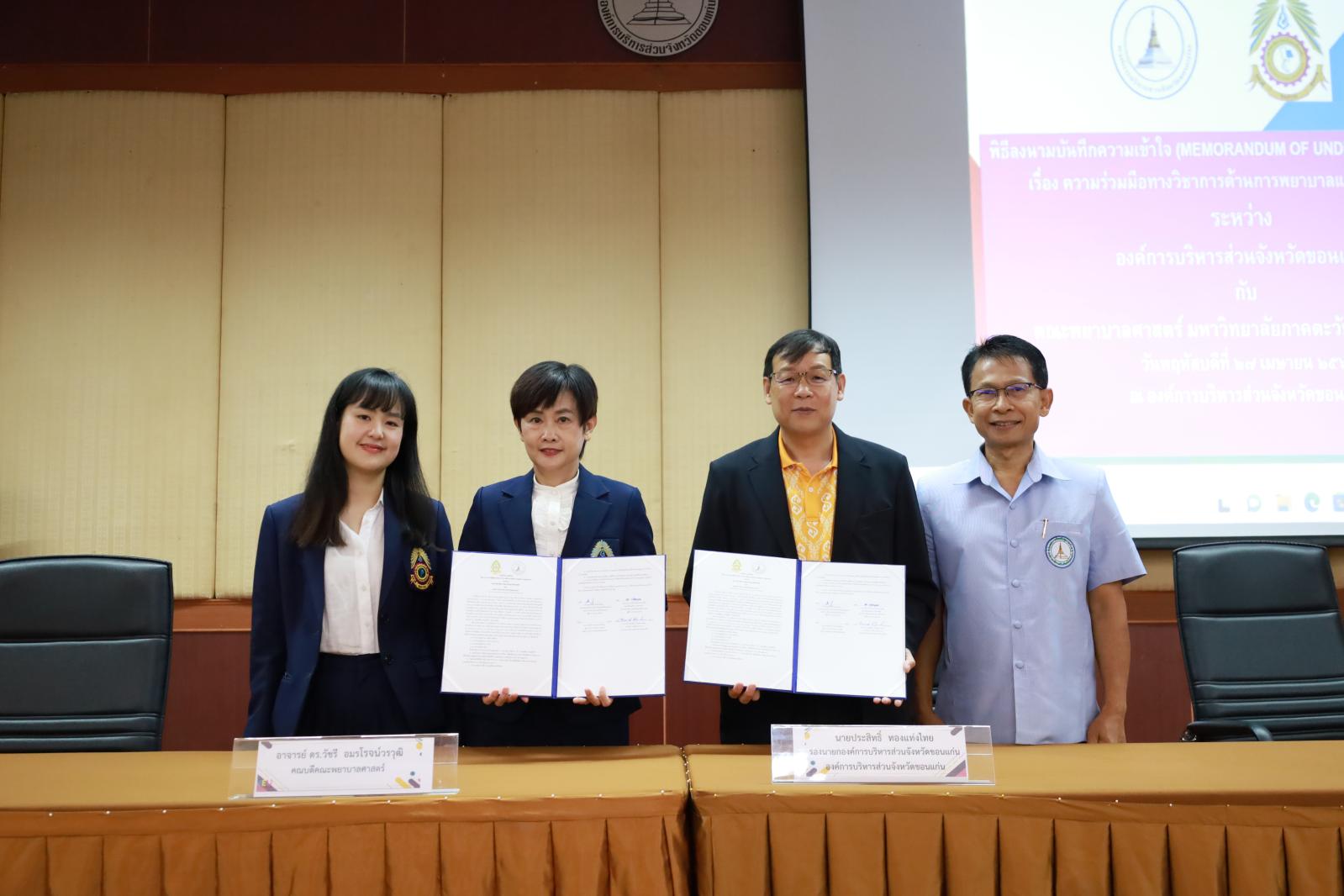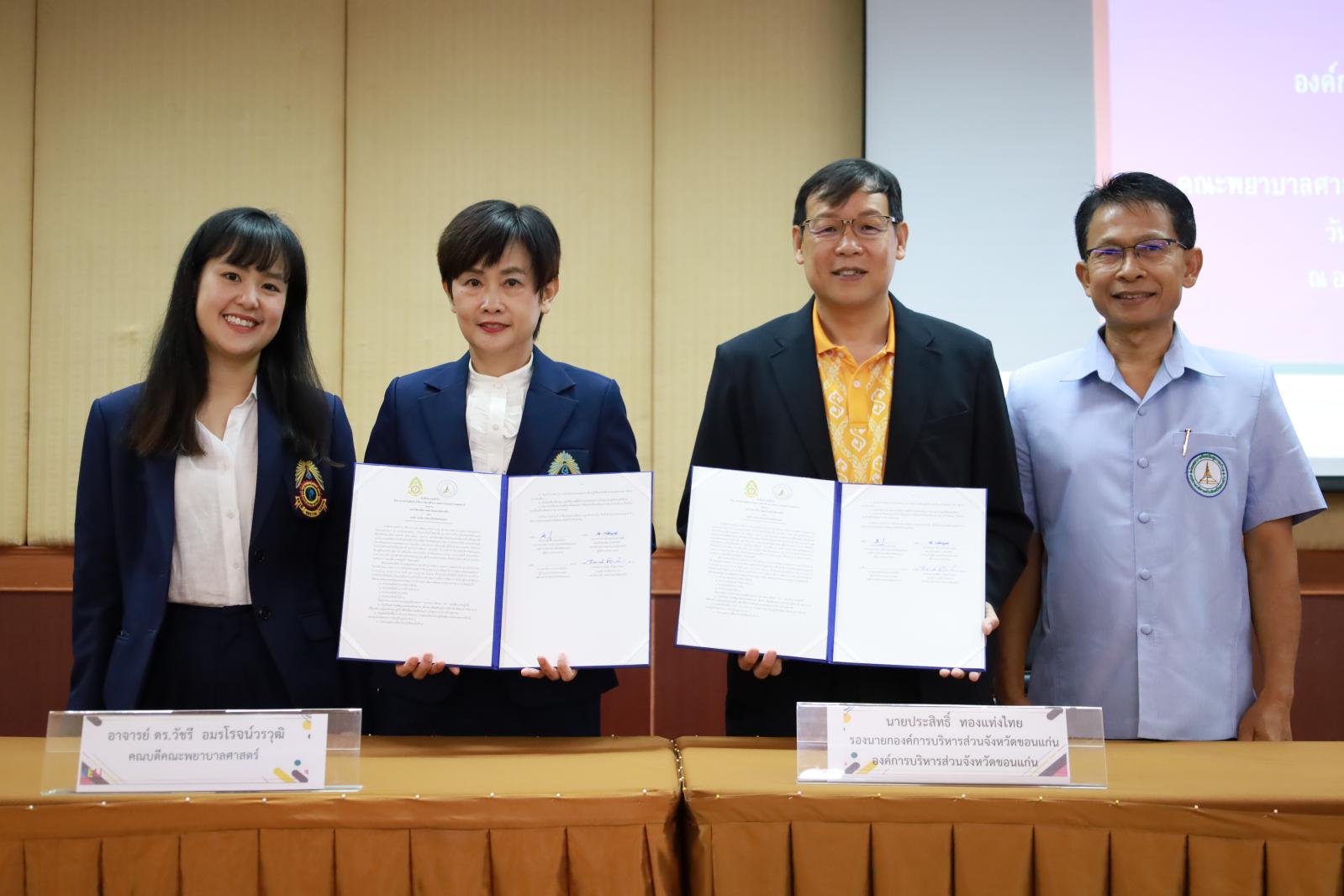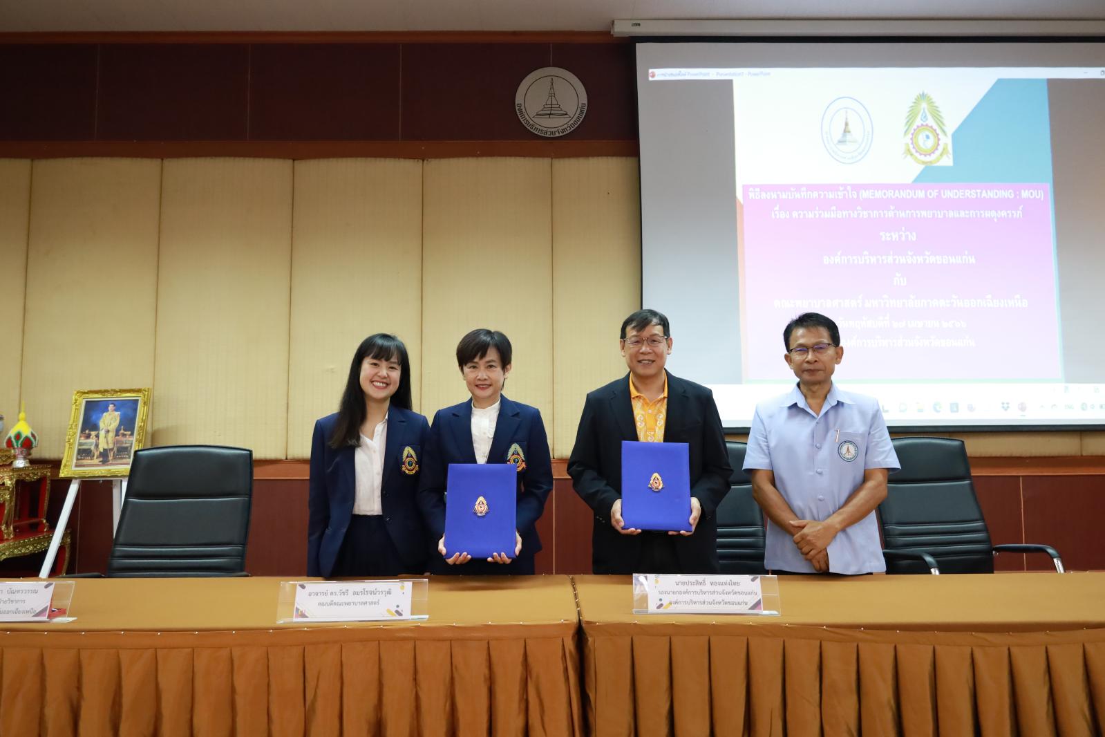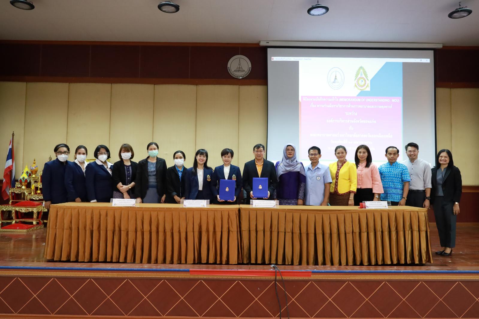 เมื่อวันที่ 27 เมษายน 2566 เวลา 10.30 น. องค์การบริหารส่วนจังหวัดขอนแก่น นำโดย ดร.พงษ์ศักดิ์ ตั้งวานิชกพงษ์ นายก อบจ.ขอนแก่น มอบหมายให้ นายประสิทธิ์ ทองแท่งไทย รองนายก อบจ.ขอนแก่น ร่วมลงนามบันทึกความเข้าใจ (MOU) เรื่องความร่วมมือด้านการพยาบาลและผดุงครรภ์ ร่วมกับ มหาวิทยาลัยภาคตะวันออกเฉียงเหนือ เพื่อเป็นแหล่งฝึกปฏิบัติงานนักศึกษาสาขาวิชาพยาบาลศาสตร์ โดยมี อาจารย์ ดร.ธีนิดา บัณฑวรรณ รองอธิการบดีฝ่ายวิชาการ มหาวิทยาลัยภาคตะวันออกเฉียงเหนือ, อาจารย์ ดร.วัชรี อมรโรจน์วรวุฒิ คณบดีคณะพยาบาลศาสตร์ และนายสมเกียรติ ชูศรีทอง หัวหน้าฝ่ายบริการสาธานณสุข อบจ.ขอนแก่น ร่วมลงนาม MOU ในโอกาสนี้มี นางอาซีซะห์ ว่องไว รองปลัด อบจ.ขอนแก่น พร้อมด้วย หัวหน้าส่วนราชการ ข้าราชการ กองสาธารณสุข อบจ.ขอนแก่น เข้าร่วมเป็นเกียรติในพิธี ณ หอประชุมองค์การบริหารส่วนจังหวัดขอนแก่น อ.เมืองขอนแก่น จ.ขอนแก่น