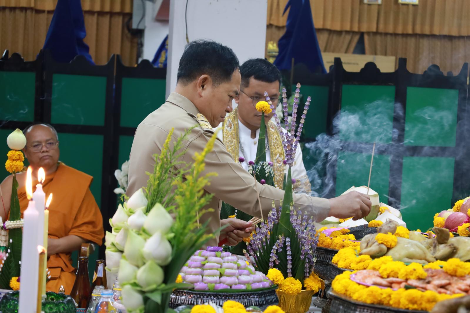ร่วมพิธีบวงสรวงสิ่งศักดิ์ในพิธีการศพที่ได้รับพระราชทาน สำหรับเจ้าหน้าที่ปฏิบัติงานพิธี ประจำปีงบประมาณ พ.ศ. 2566