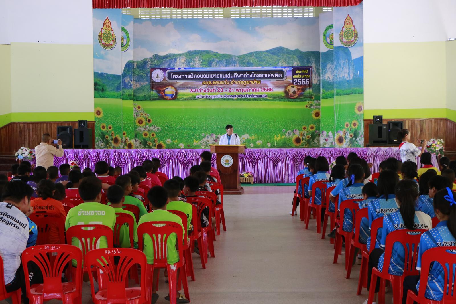 เมื่อวันที่ 20 พฤษภาคม 2566 เวลา 10.00 น. ดร.พงษ์ศักดิ์ ตั้งวานิชกพงษ์ นายก อบจ.ขอนแก่น มอบหมายให้ นายประสิทธิ์ ทองแท่งไทย รองนายกองค์การบริหารส่วนจังหวัดขอนแก่น เป็นประธานพิธีเปิดและปิดโครงการฝึกอบรมเยาวชนเล่นกีฬาห่างไกลยาเสพติด ประจำปีงบประมาณ 2566 โดยมา นายปรัชญา ทองแท่งไทย ส.อบจ.อำเภอภูผ่ามาน เป็นผู้กล่าวรายงาน นายสามารถ เพชรปิ่นเมือง นายอำเภอภูผาม่าน นายประชิต อึ้งประเสริฐ ผอ.กองการท่องเที่ยวและกีฬา องค์การบริการส่วนจังหวัดขอนแก่น พร้อมด้วย หัวหน้าส่วนราชการ ผู้บริหารสถานศึกษา ผู้บริหารองค์กรปกครองส่วนท้องถิ่น กำนัน และผู้ใหญ่บ้าน ฯลฯ เข้าร่วมพิธีเปิด ณ หอประชุมโรงเรียนภูผาม่าน อ.ภูผาม่าน จ.ขอนแก่น