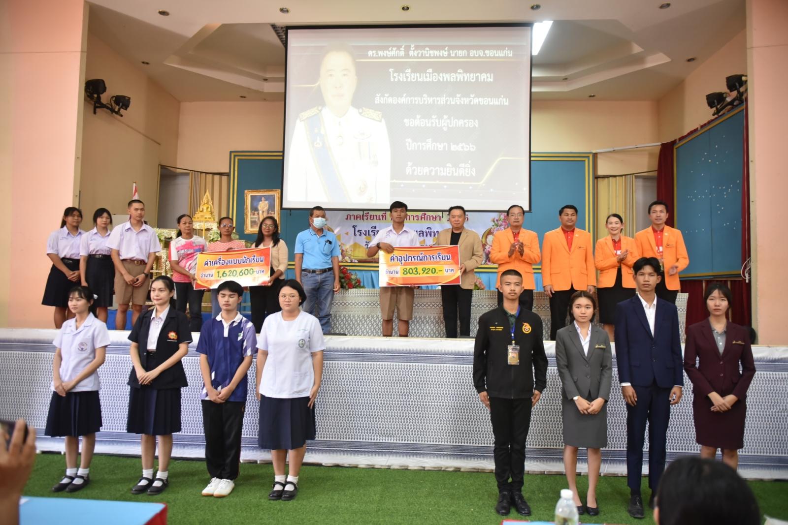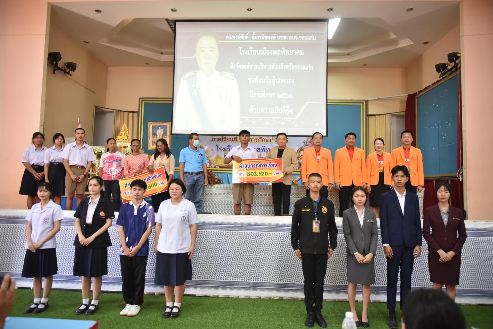 วันที่ 20 พฤษภาคม 2566 เวลา 09.00 น. องค์การบริหารส่วนจังหวัดขอนแก่น นำโดย ดร.พงษ์ศักดิ์ ตั้งวานิชกพงษ์ นายกองค์การบริหารส่วนจังหวัดขอนแก่น เป็นประธานเปิดการประชุมผู้ปกครองนักเรียน ภาคเรียนที่1 ประจำปีการศึกษา 2566 และมอบทุนการศึกษา โดยมี นายประสาน กองทอง ผู้อำนวยการโรงเรียนเมืองพลพิทยาคม กล่าวรายงาน ในโอกาสนี้มีนาย นายอุทัย ขุนแก้ว ส.อบจ.ขอนแก่น อ.พล เขต 2, นายณัฐภูมิ หอมทอง ส.อบจ.ขอนแก่น อ.พล เขต 1 พร้อมด้วย คณะกรรมการสถานศึกษาขั้นพื้นฐาน คณะครู ผู้ปกครองนักเรียน ร่วมเป็นเกียรติในพิธี ณ หอประชุมโรงเรียนเมืองพลพิยาคม อำเภอพล จังหวัดขอนแก่น