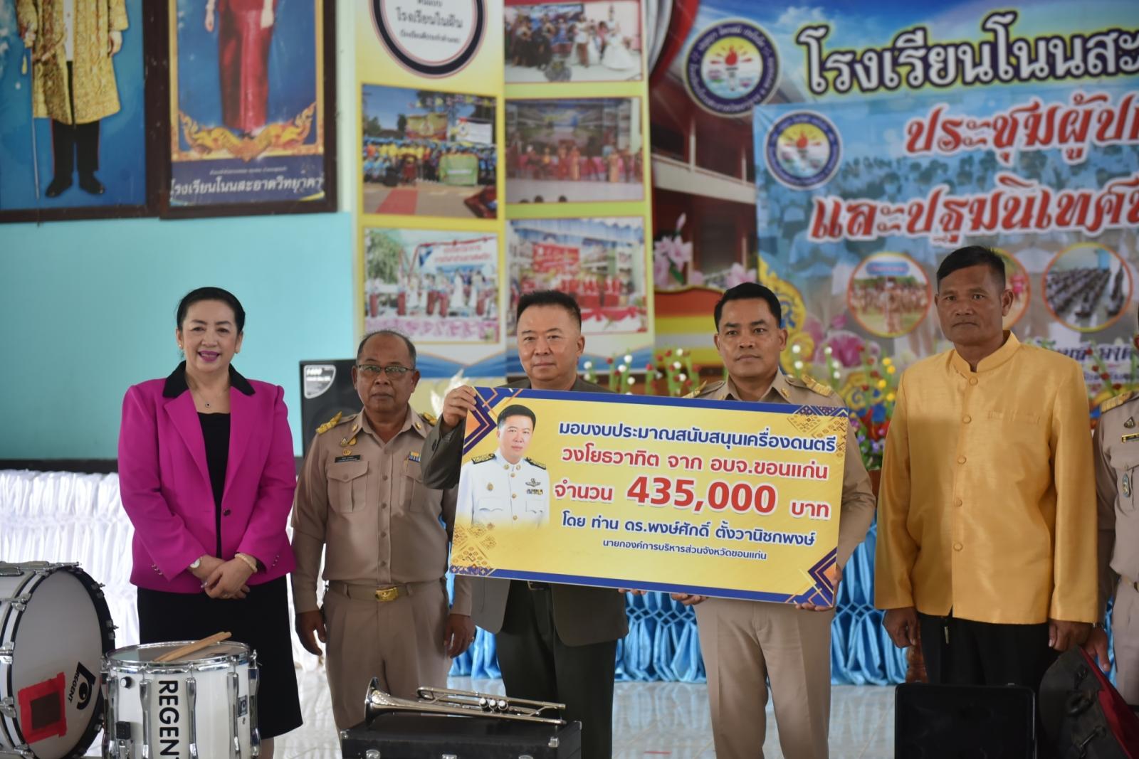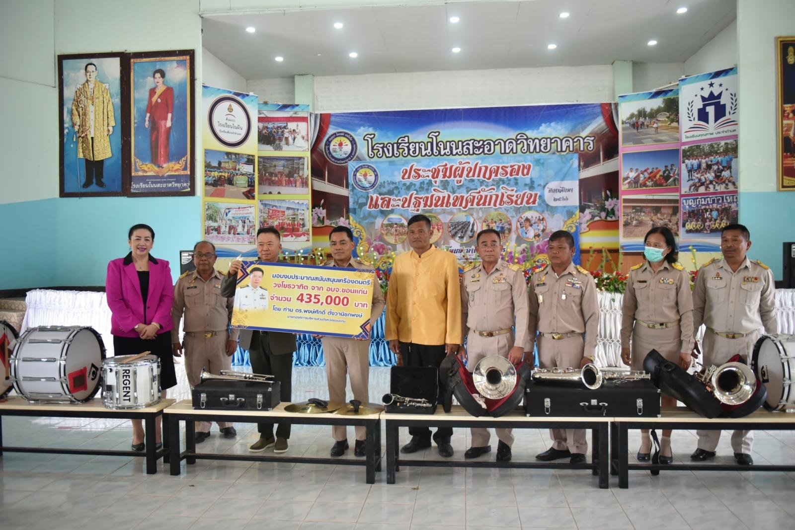 วันที่ 29 พฤษภาคม 2566 องค์การบริหารส่วนจังหวัดขอนแก่น นำโดย ดร.พงษ์ศักดิ์ ตั้งวานิชกพงษ์ นายกองค์การบริหารส่วนจังหวัดขอนแก่น เป็นประธานเปิดการประชุมผู้ปกครองนักเรียน และปฐมนิเทศนักเรียน ประจำปีการศึกษา 2566 พร้อมส่งมอบเครื่องดนตรี วงโยธวาทิต โรงเรียนโนนสะอาดวิทยาคาร โดยมี นางศุภลักษณ์ จันปาน ส.อบจ.ขอนแก่น เขต อ.แวงใหญ่ พร้อมด้วย คณะกรรมการสถานศึกษาขั้นพื้นฐาน คณะครู ผู้ปกครองนักเรียน ร่วมเป็นเกียรติในพิธี ณ หอประชุมโรงเรียนโนนสะอาดวิทยาคาร อำเภอแวงใหญ่ จังหวัดขอนแก่น
