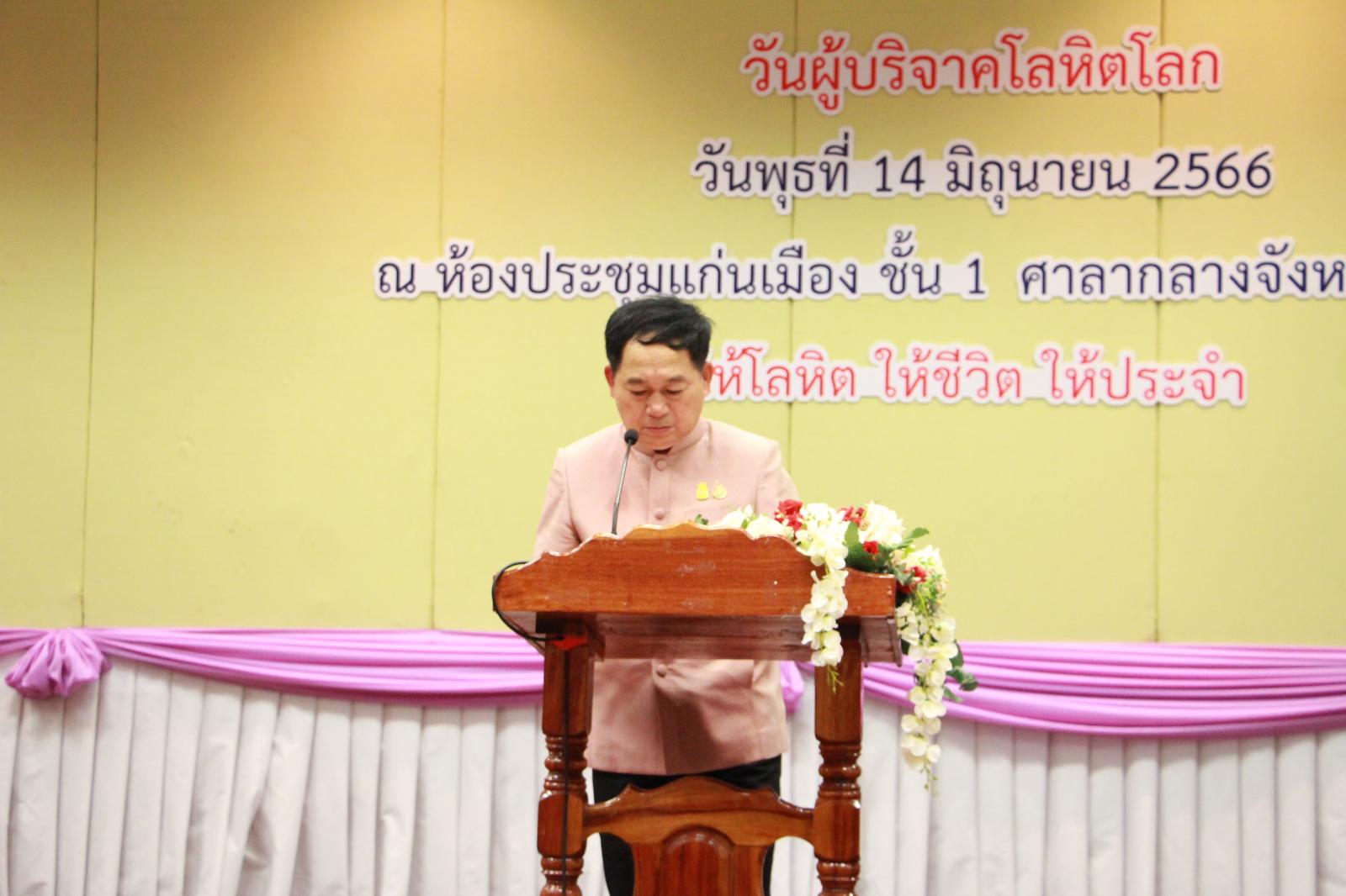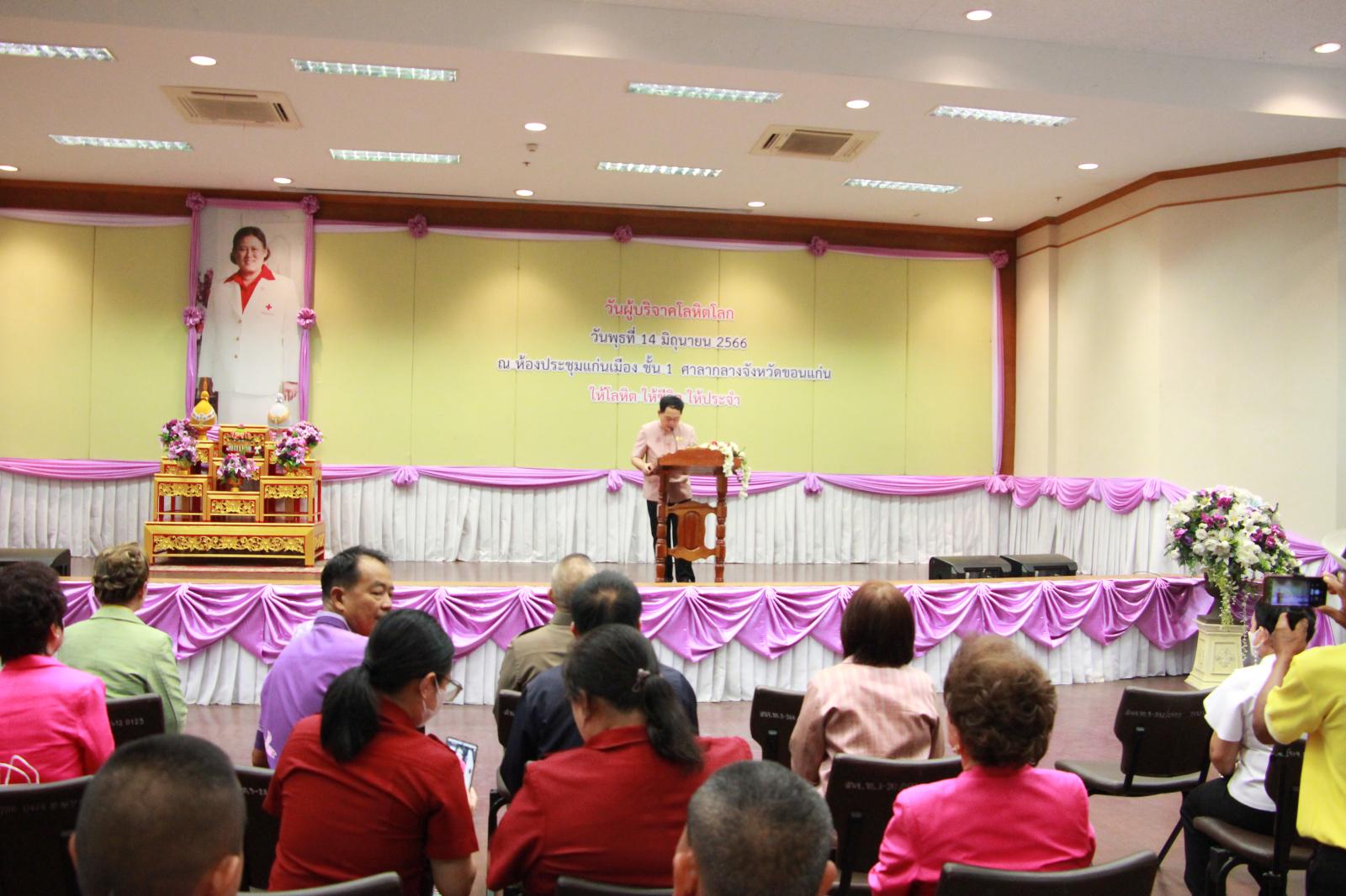 เมื่อวันที่ 14 มิถุนายน 2566 เวลา 09.30 น. ดร.พงษ์ศักดิ์ ตั้งวานิชกพงษ์ นายก อบจ.ขอนแก่น มอบหมายให้ ว่าที่ร้อยเอกพงเจตน์ พรกุณา ปลัด อบจ.ขอนแก่น เข้าร่วมพิธีเปิดกิจกรรมวันผู้บริจาคเลือดโลก ประจำปี 2566 ภายใต้แนวคิดหลัก “Give blood, give plasma, share life, share often. ให้โลหิต ให้ชีวิต ให้ประจำ” โดยมี นายไกรสร กองฉลาด ผู้ว่าราชการจังหวัดขอนแก่น เป็นประธาน นางกรรณิกา กองฉลาด นายกเหล่ากาชาดจังหวัดขอนแก่น กล่าวรายงาน ทั้งนี้มีผู้แทนจากหน่วยงานภาครัฐและเอกชน เข้าร่วมเป็นเกียรติในพิธี ณ ห้องประชุมแก่นเมือง ศาลากลางจังหวัดขอนแก่น อ.เมืองขอนแก่น จ.ขอนแก่น