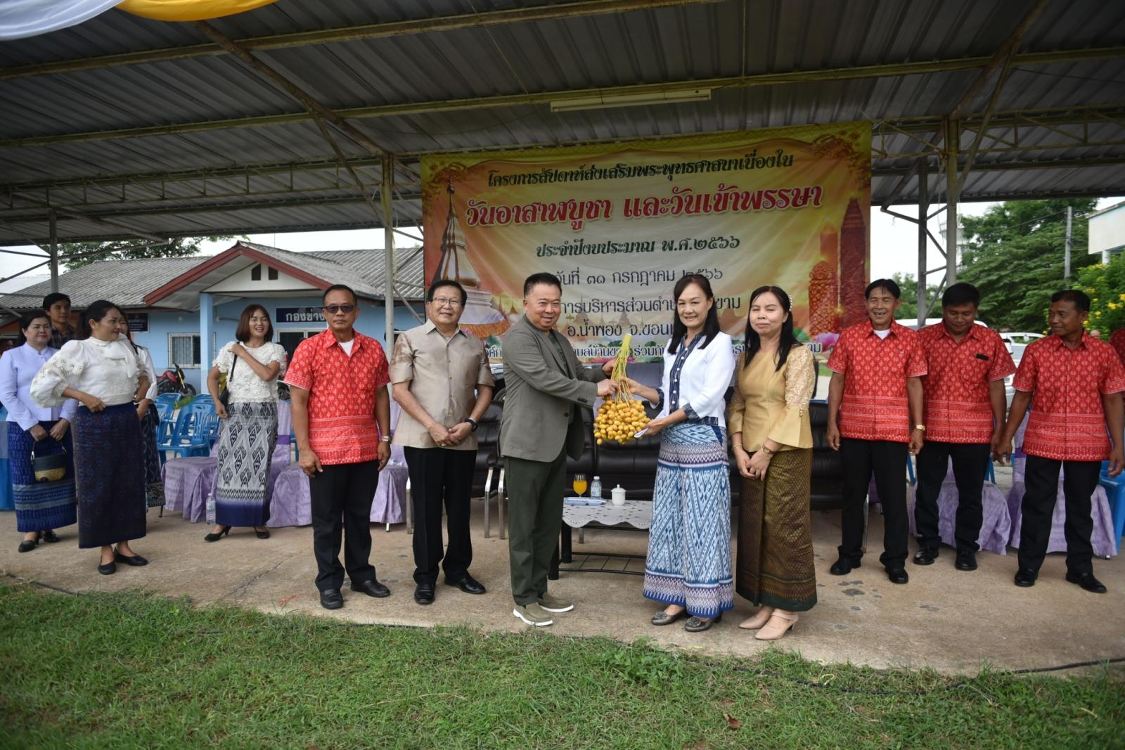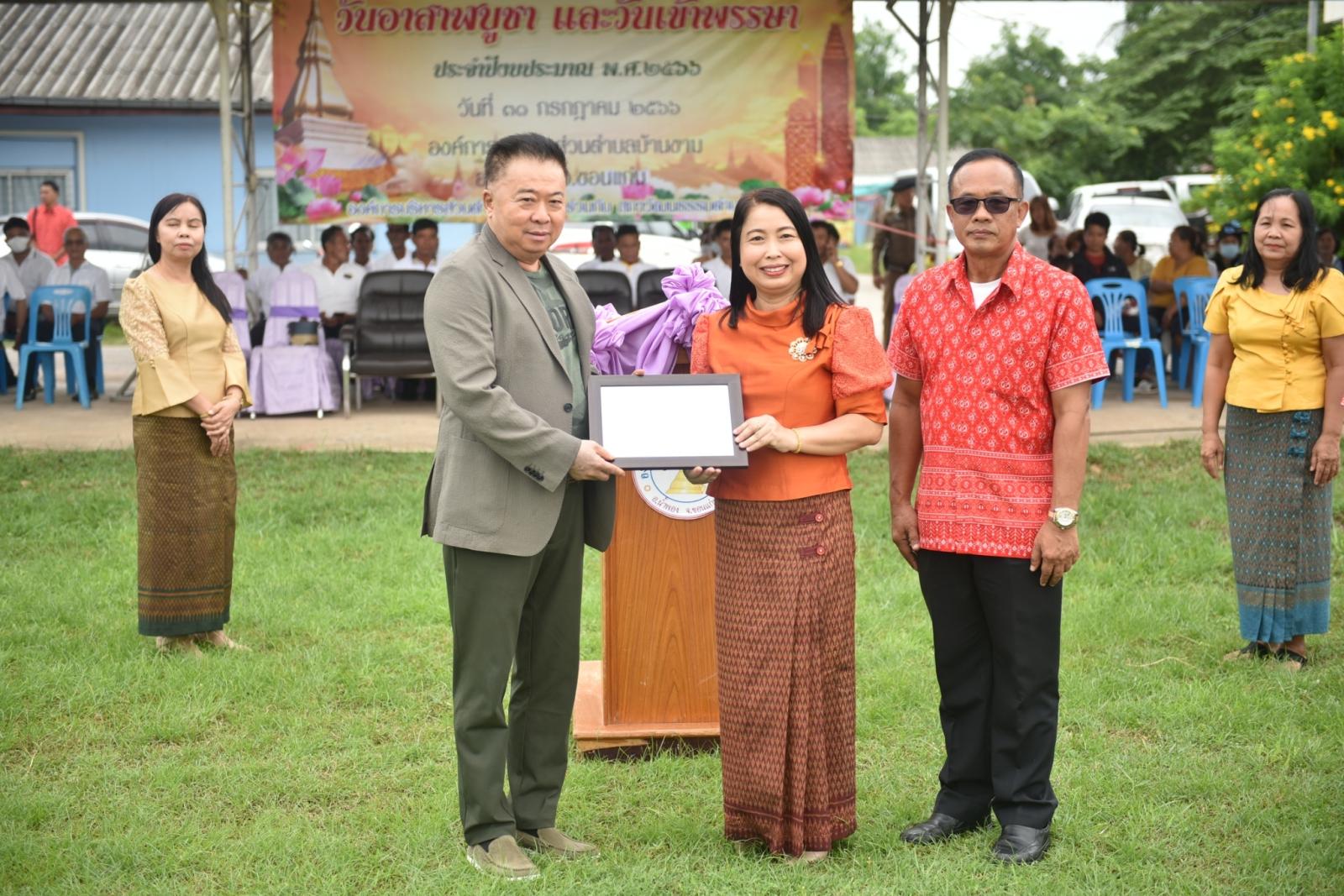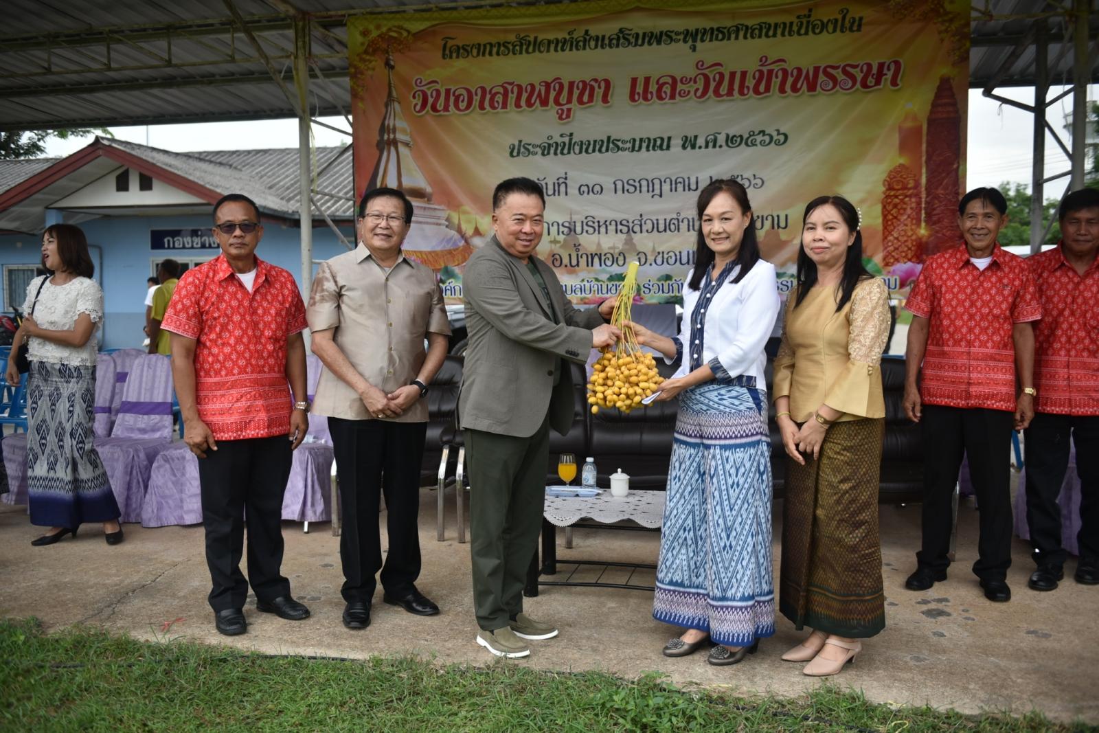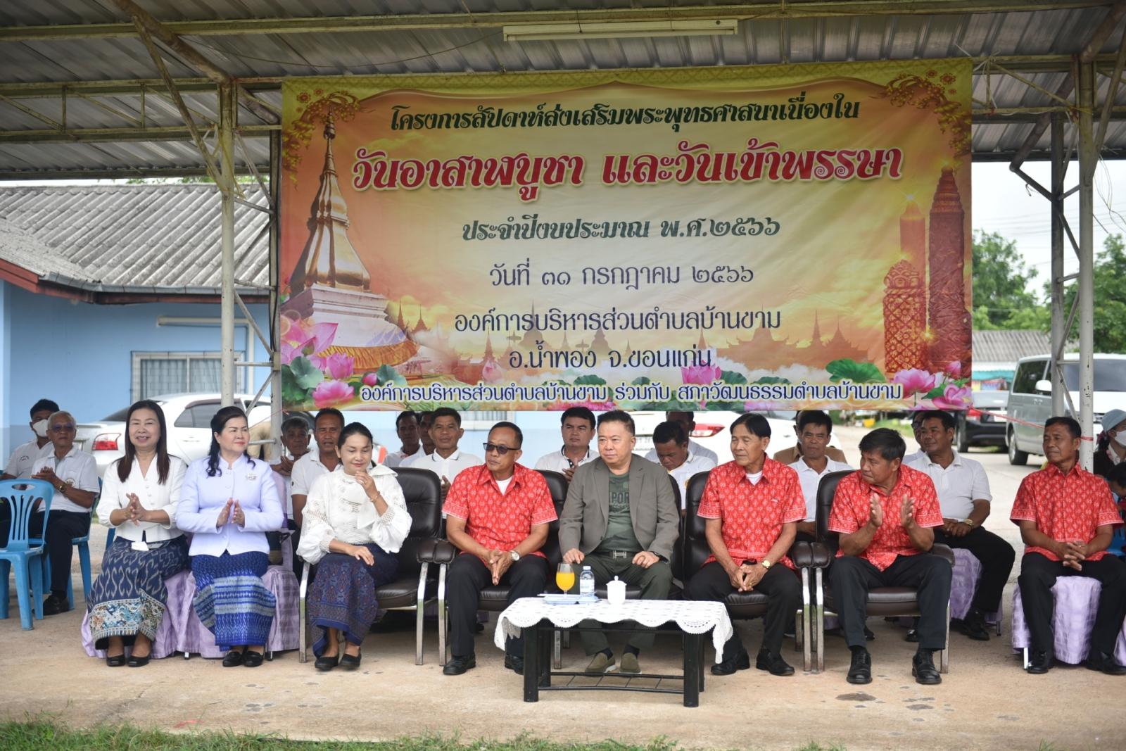 วันที่ 31 กรกฎาคม 2566 เวลา 9.00 น. ดร.พงษ์ศักดิ์ ตั้งวานิชกพงษ์ นายกองค์การบริหารส่วนจังหวัดขอนแก่น เป็นประธานในพิธีเปิดโครงการสัปดาห์ส่งเสริมพระพุทธศาสนาเนื่องในวันอาสาฬหบูชาและวันเข้าพรรษา โดยมีนายหมวดโทนิติวัทธน์ นิธินันท์ธาร นายกองค์การบริหารส่วนตำบลบ้านขาม กล่าวรายงาน ในโอกาสนี้มี นายนพพร ปิติสุวรรณรัตน์ ส.อบจ.ขอนแก่น อ.น้ำพอง เขต 2 ร่วมในพิธี ณ สนามองค์การบริหารส่วนตำบลบ้านขาม อำเภอน้ำพอง จังหวัดขอนแก่น