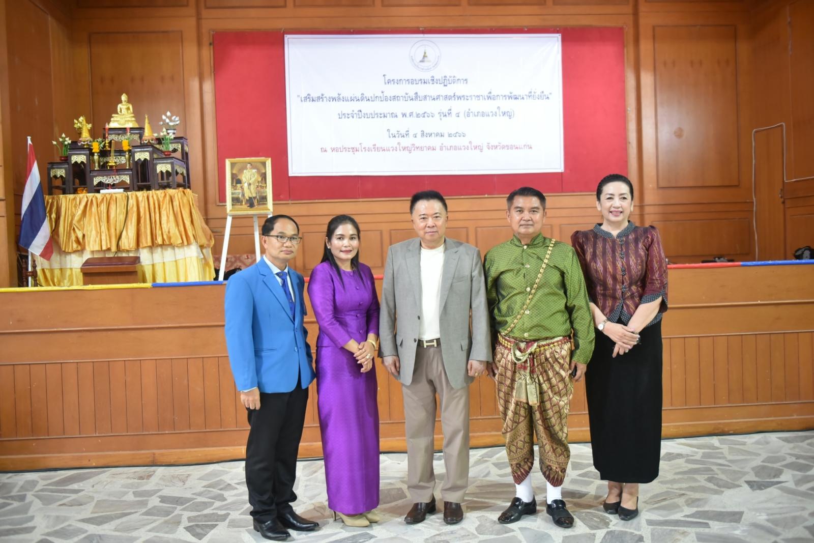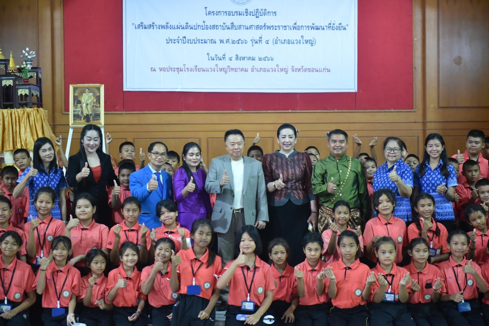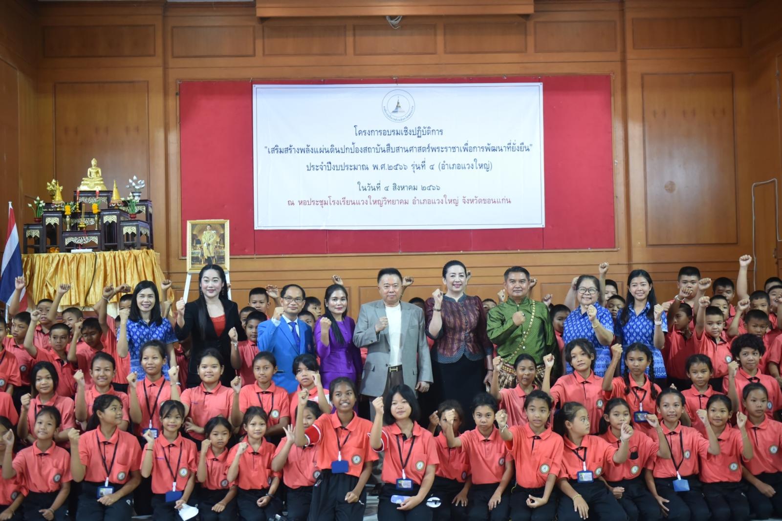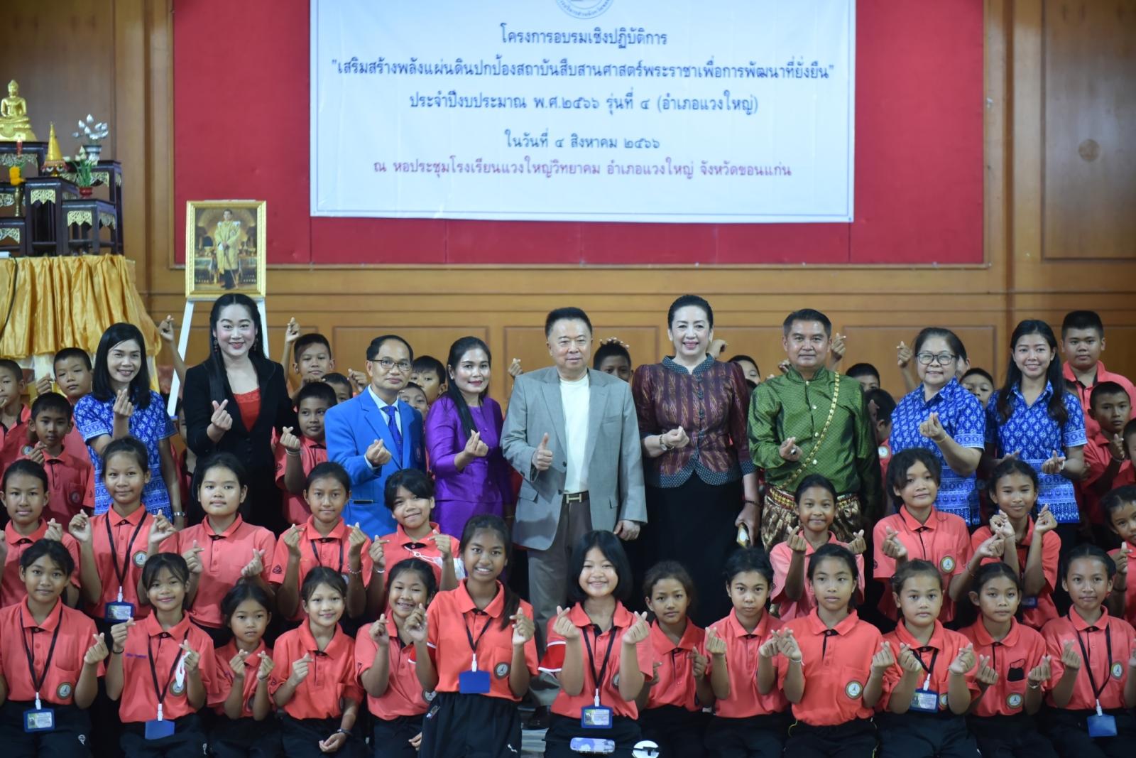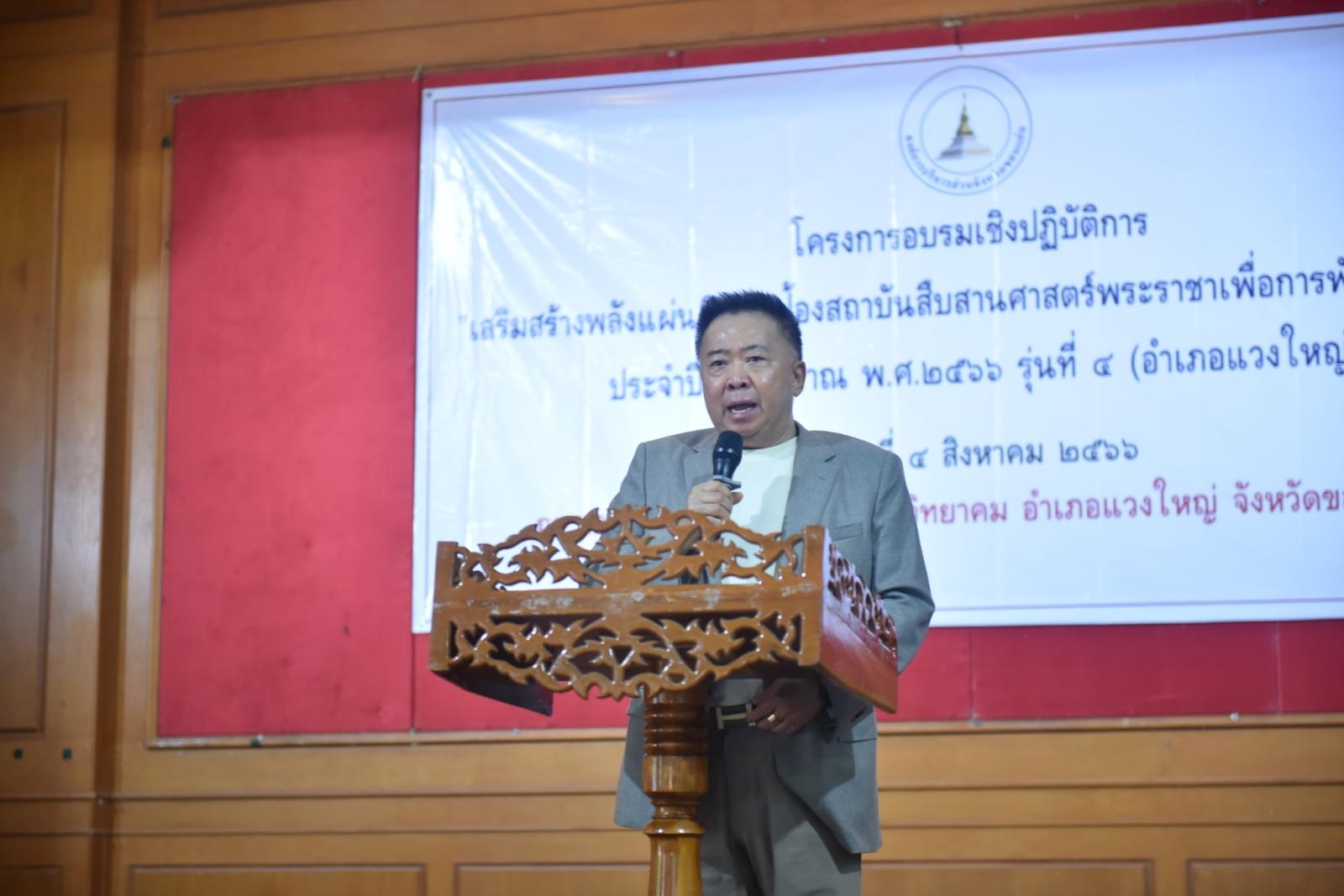 วันที่ 4 สิงหาคม 2566 เวลา 09.30 น. ดร.พงษ์ศักดิ์ ตั้งวานิชกพงษ์ นายกองค์การบริหารส่วนจังหวัดขอนแก่น เป็นประธานเปิดโครงการอบรมเชิงปฏิบัติการ"เสริมสร้างพลังแผ่นดินปกป้องสถาบัน สืบสานศาสตร์พระราชาเพื่อการพัฒนาที่ยั่งยืน " ประจำปีงบประมาณ พ.ศ.2566 รุ่นที่4 (อำเภอแวงใหญ่) โดยมี นางสาวนพวรรณ กิมประเทศ หัวหน้าฝ่ายบริหารงานทั่วไป กล่าวรายงาน ในโอกาสนี้มี นางศุภลักษณ์ จันปาน ส.อบจ.ขอนแก่น เขต อ.แวงใหญ่ พร้อมด้วย คณะผู้นำท้องถิ่น ผู้นำท้องที่ ร่วมเป็นเกียรติในพิธี ณ หอประชุมโรงเรียนแวงใหญ่วิทยาคม อำเภอแวงใหญ่ จังหวัดขอนแก่น