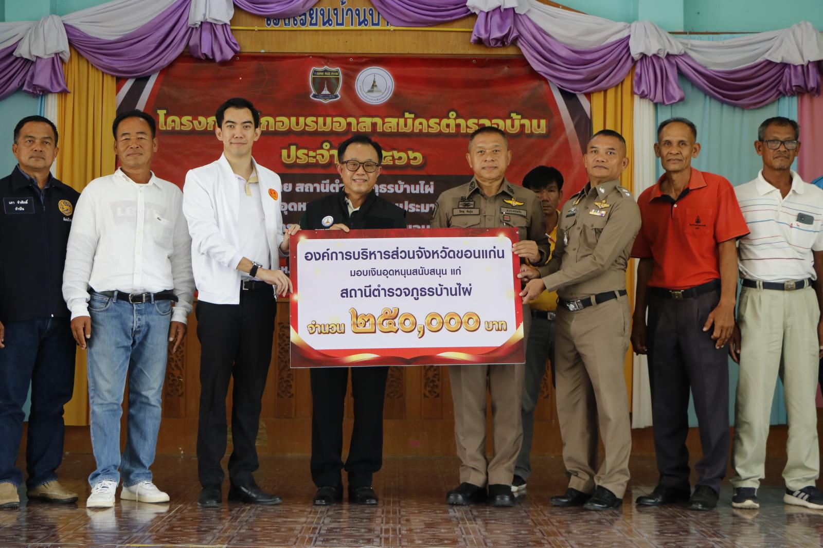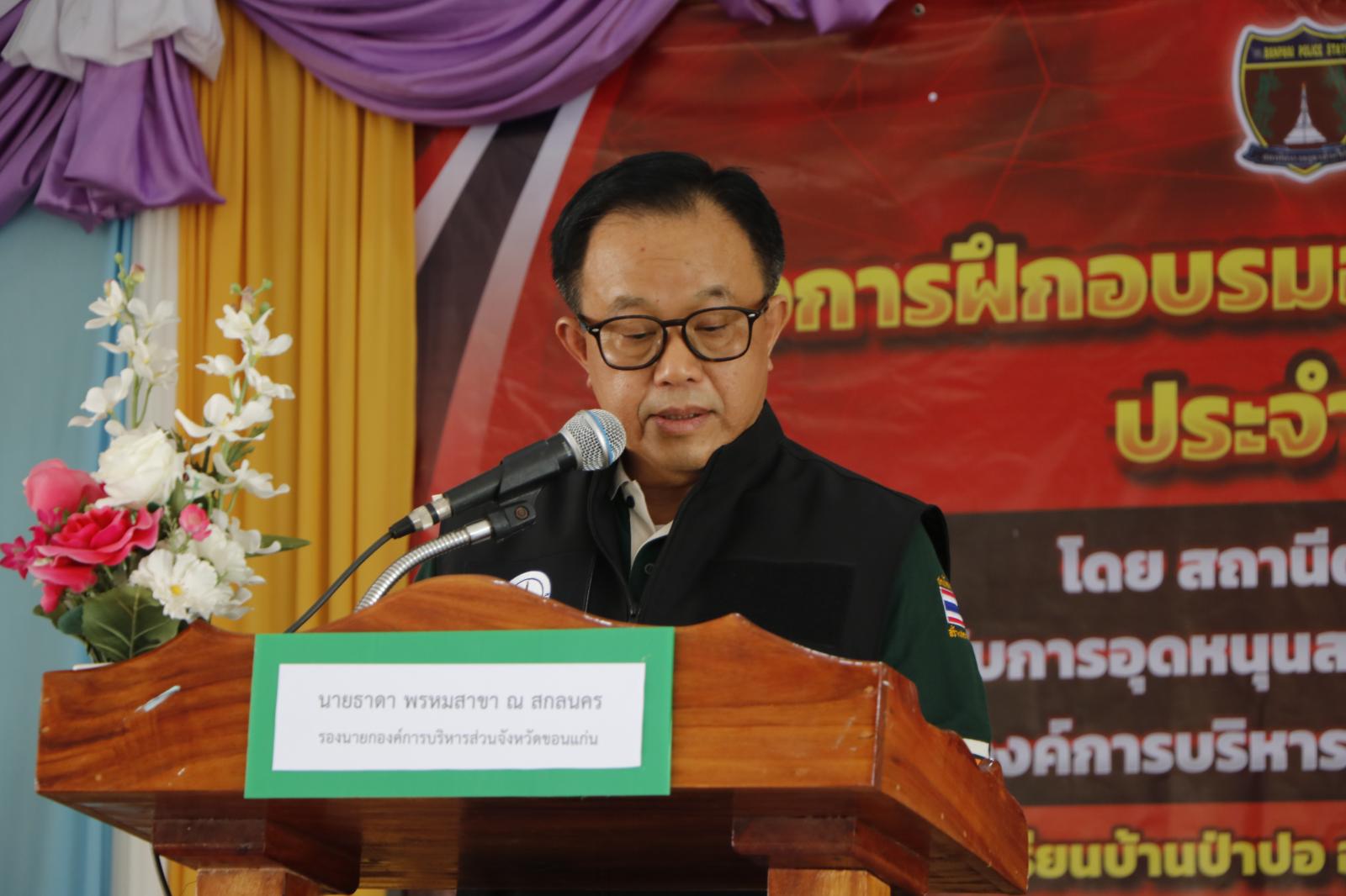 เมื่อวันที่ 8 สิงหาคม เวลา 10.00 น. ดร.พงษ์ศักดิ์ ตั้งวานิชกพงษ์ นายกองค์การบริหารส่วนจังหวัดขอนแก่น มอบหมายให้ นายธาดา พรมสาขา ณ สกลนคร รองนายกองค์การบริหารส่วนจังหวัดขอนแก่น เป็นประธานในพิธีเปิดการฝึกอบรมอาสาสมัครตำรวจบ้าน ประจำปี 2566 โดยมี พ.ต.ท.สรายุทธ ก้านคำ รองผกก.ป.สภ.บ้านไผ่ กล่าวรายงาน นายจิตรายุทธ ฉัตรชัยพลรัตส์ ส.อบจ.อำเภอบ้านไผ่ เขต 2 พ.ต.อ.วิษณุ จันปุ่ม