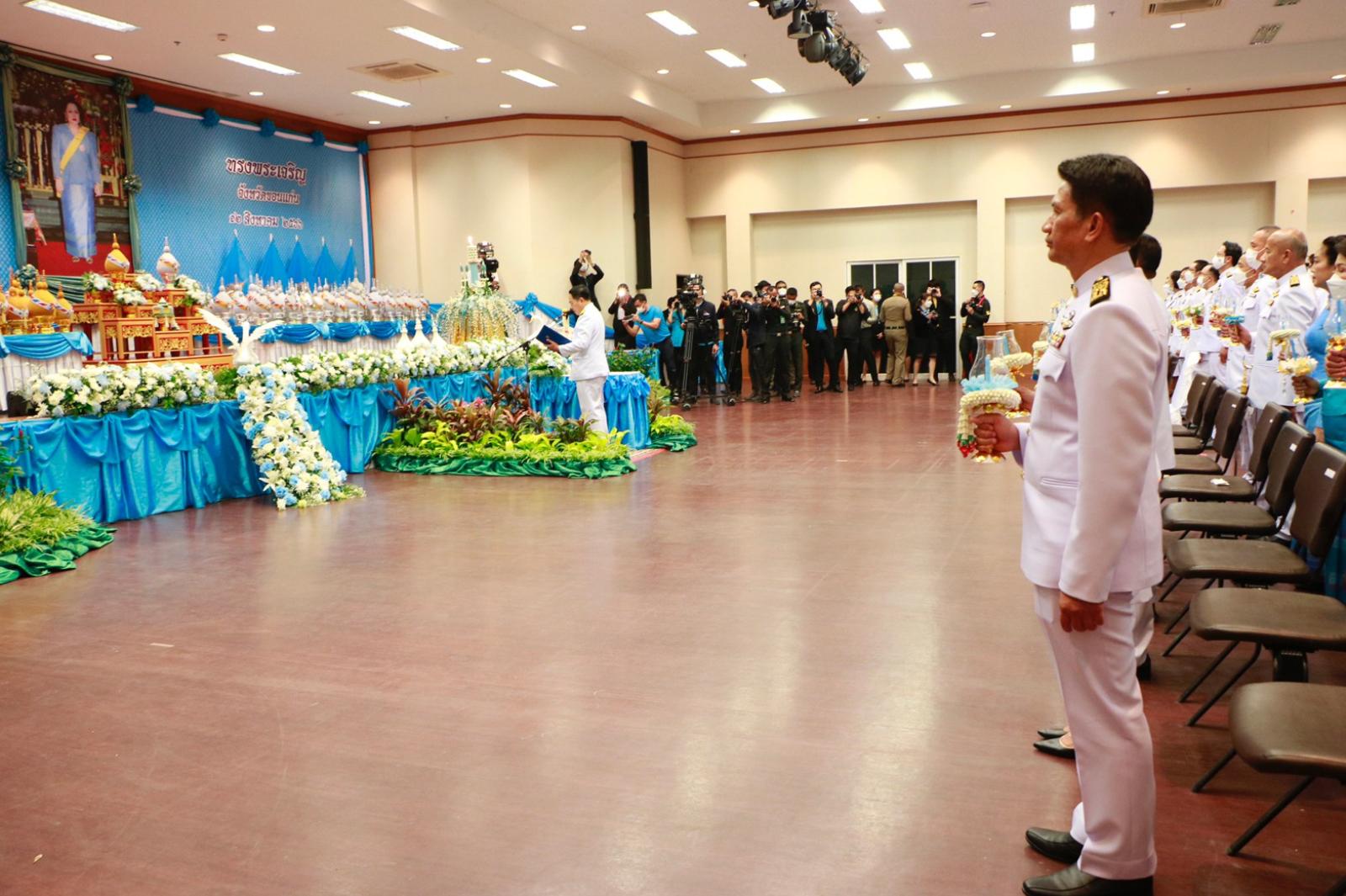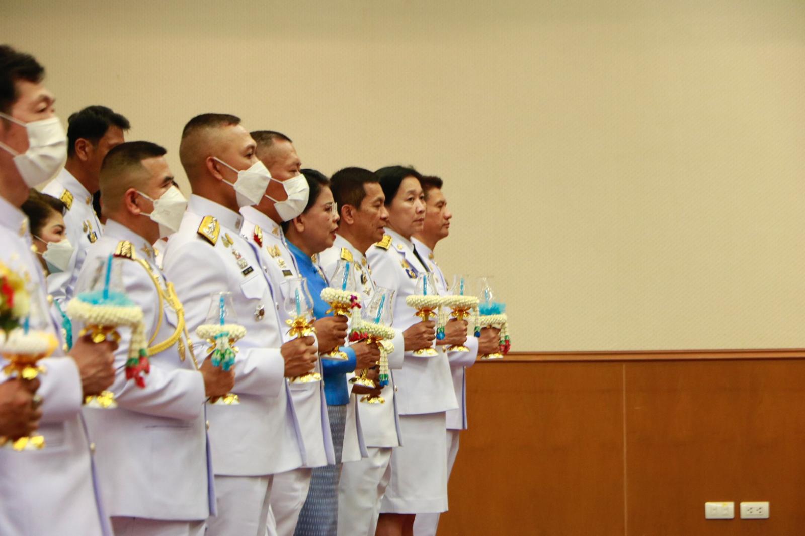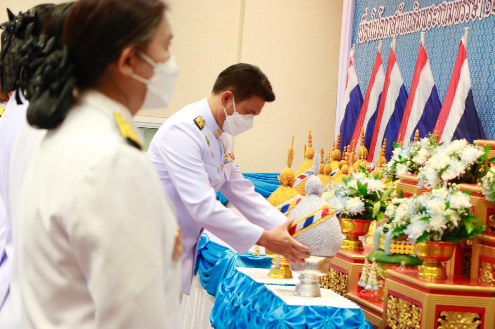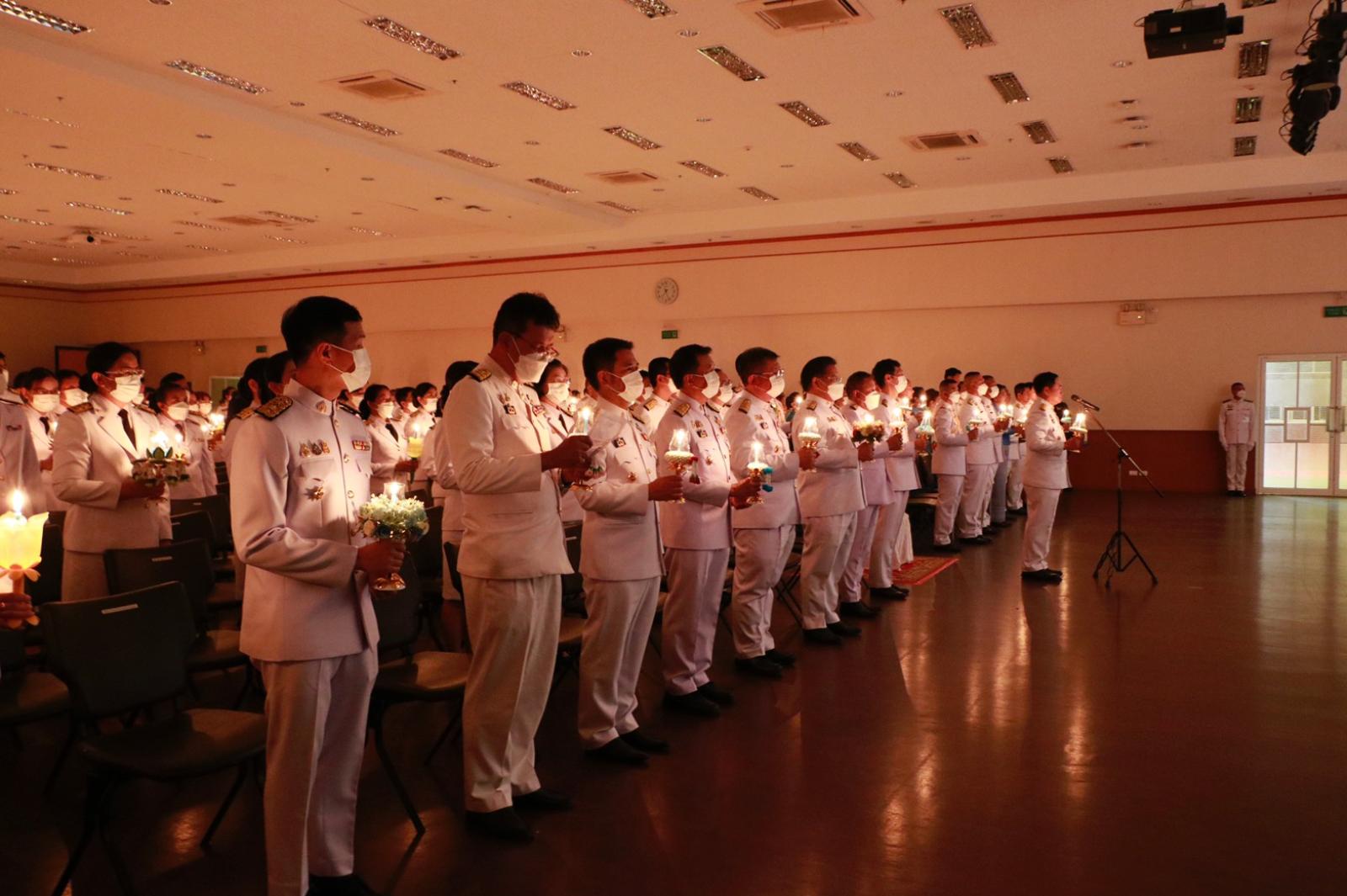 ร่วมพิธีถวายเครื่องราชสักการะ วางพานพุ่ม (พานพุ่มเงิน-พุ่มทอง) และพิธีจุดเทียนถวายพระพรชัยมงคล