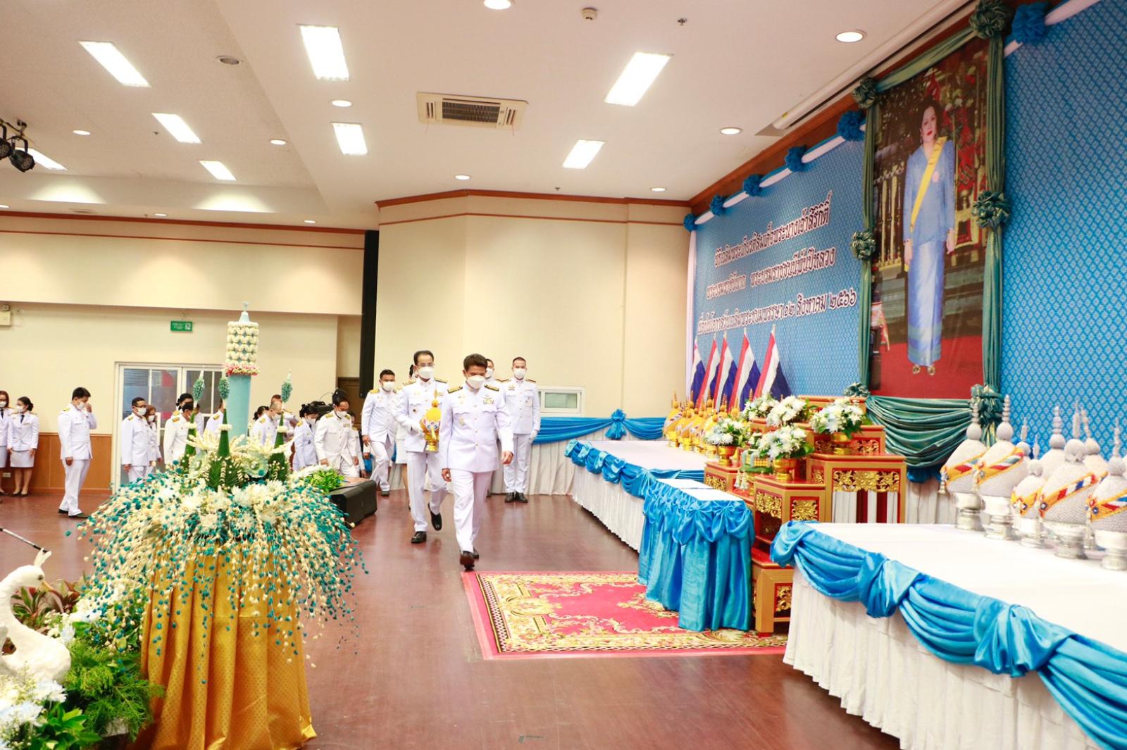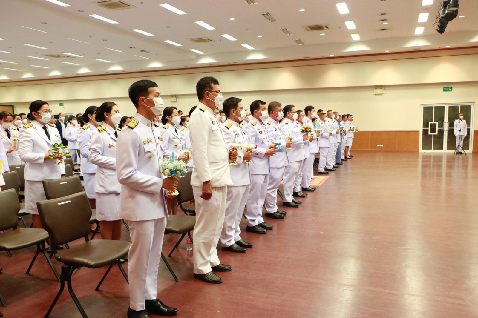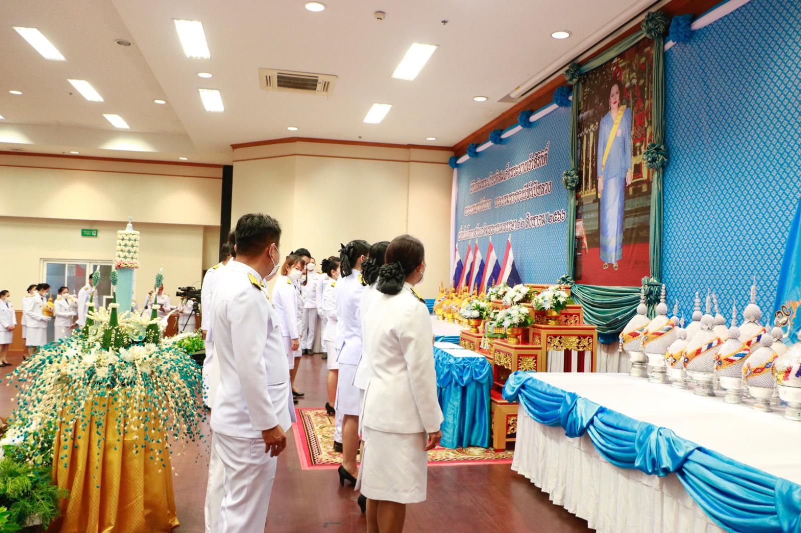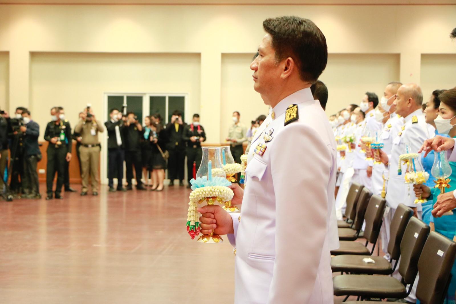 ร่วมพิธีถวายเครื่องราชสักการะ วางพานพุ่ม (พานพุ่มเงิน-พุ่มทอง) และพิธีจุดเทียนถวายพระพรชัยมงคล